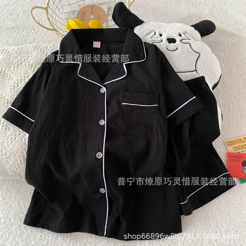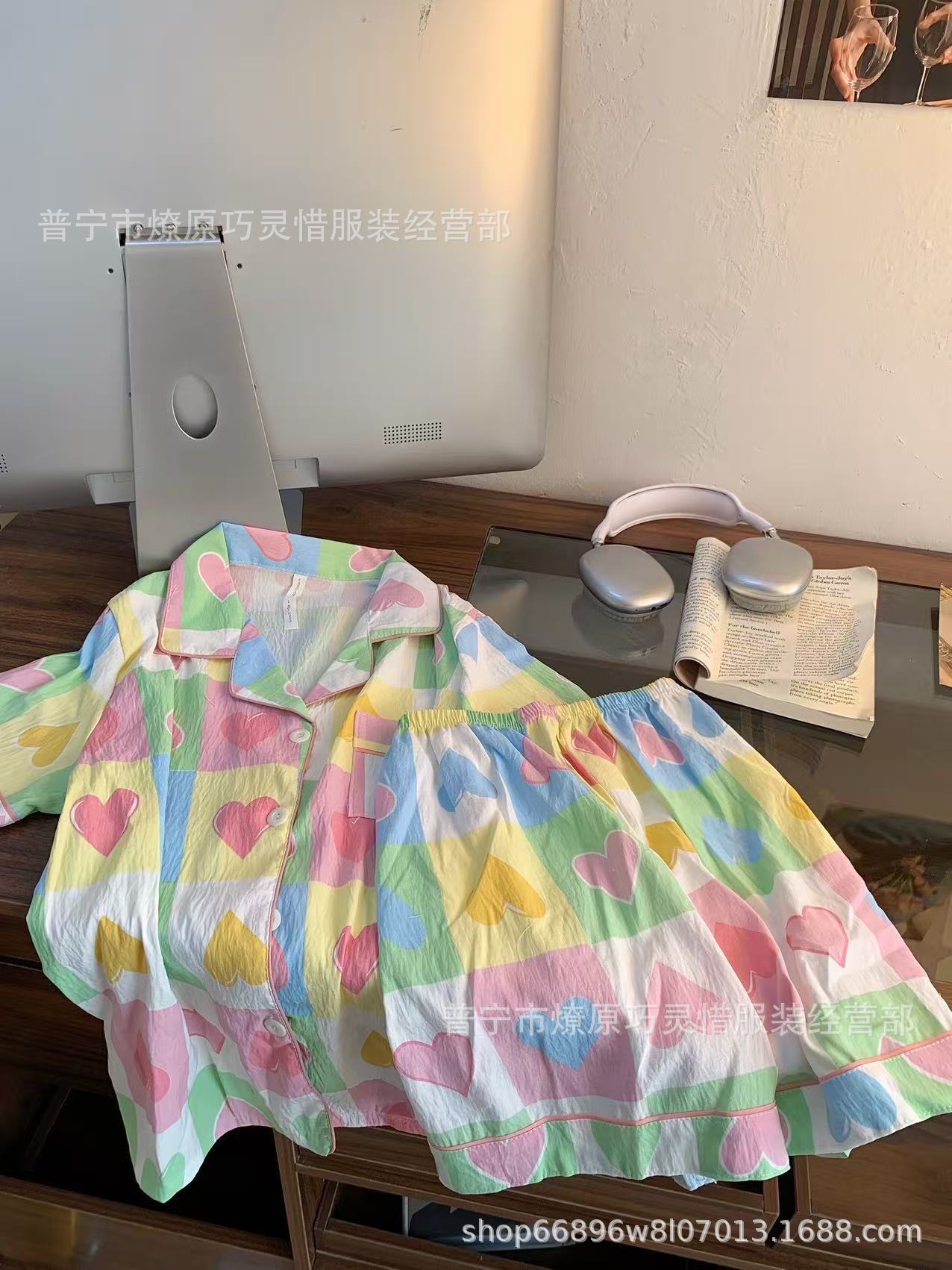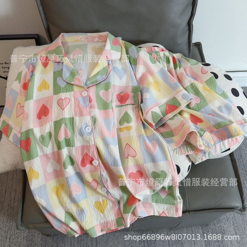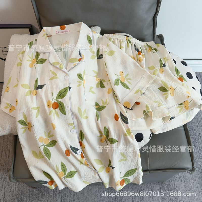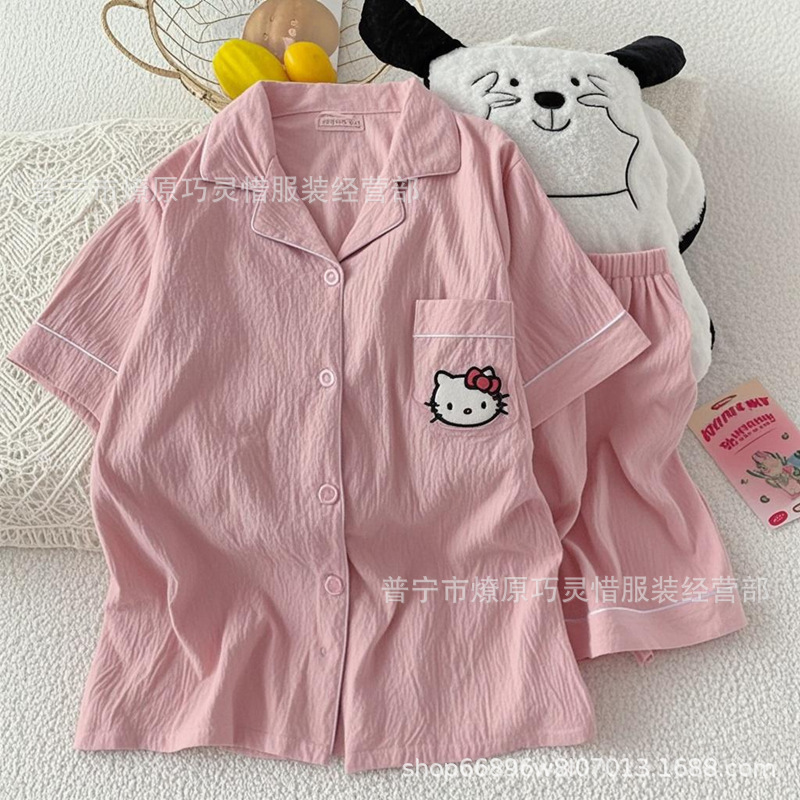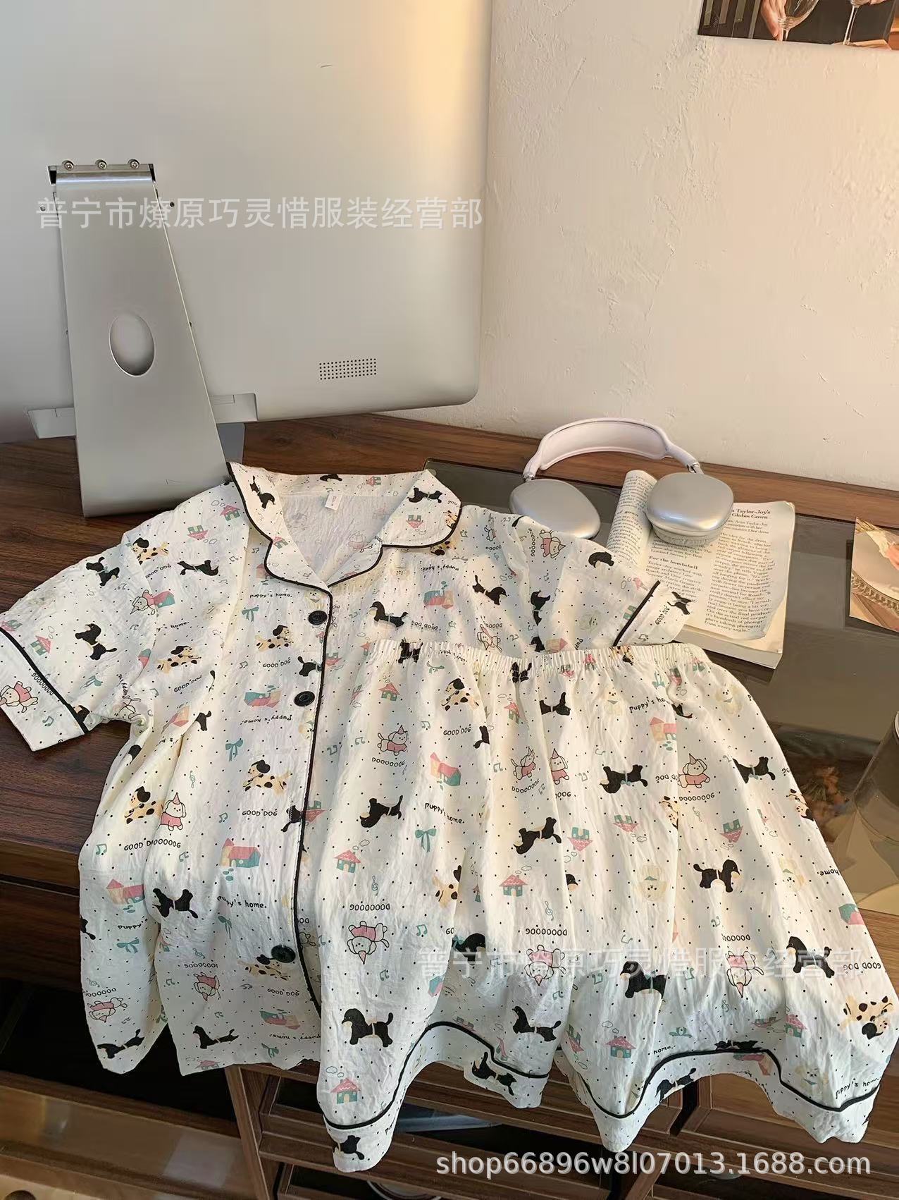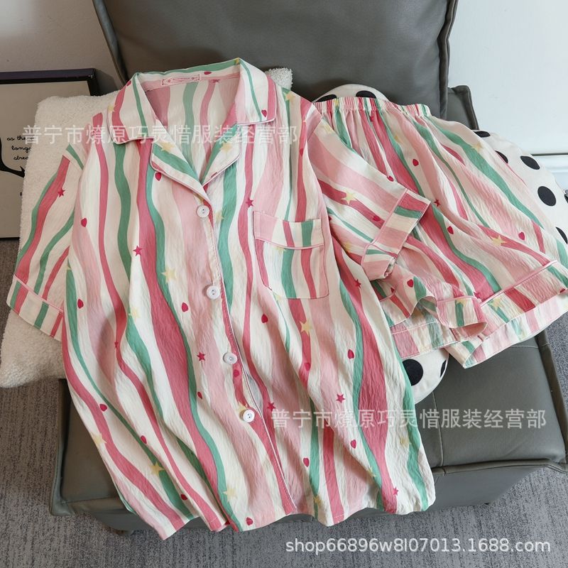 2025 새로운 스타일 잠옷 여성 여름 반팔 구름면 간단한 단색 만화 귀여운 소녀의 집 옷 세트스토어 가기