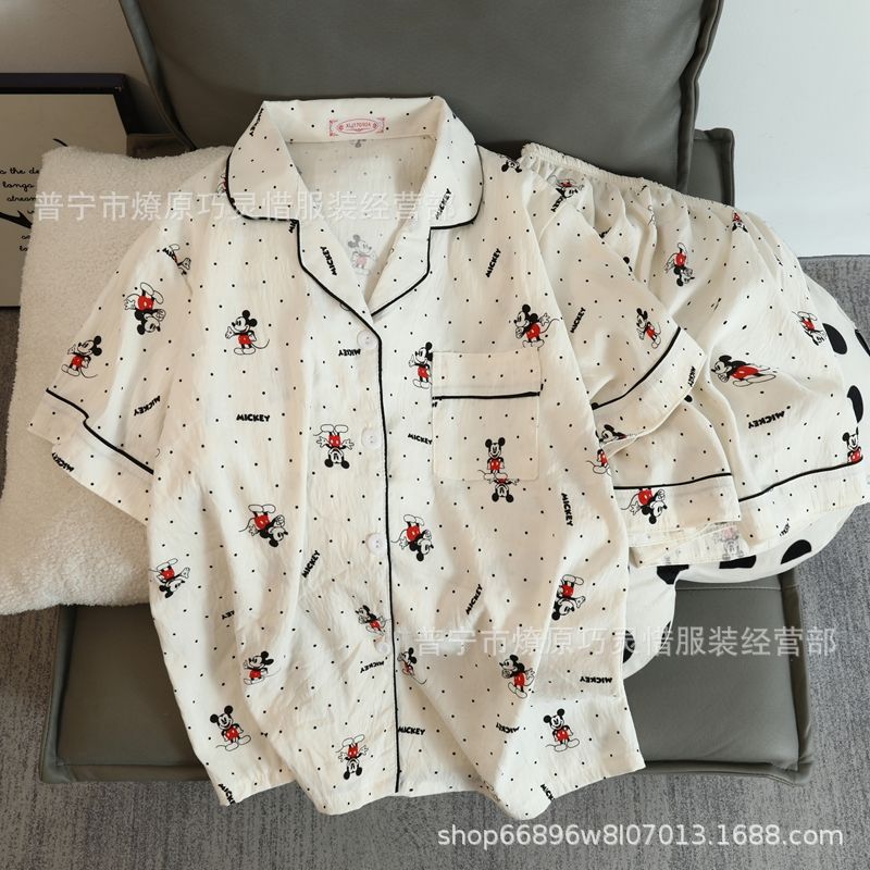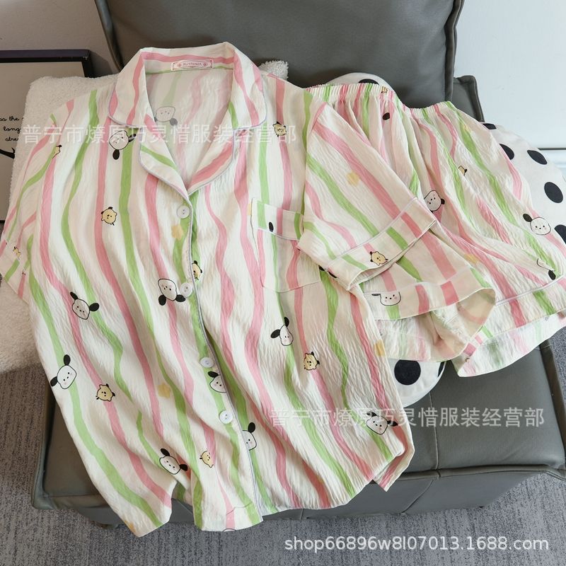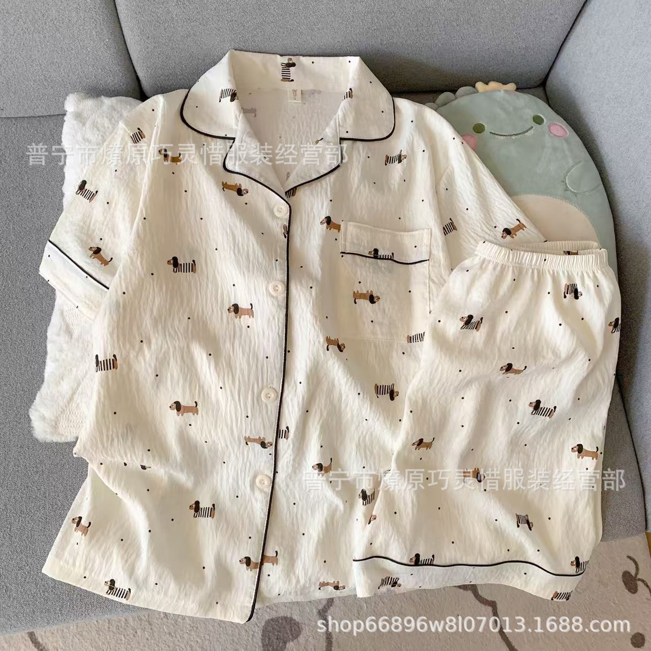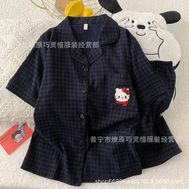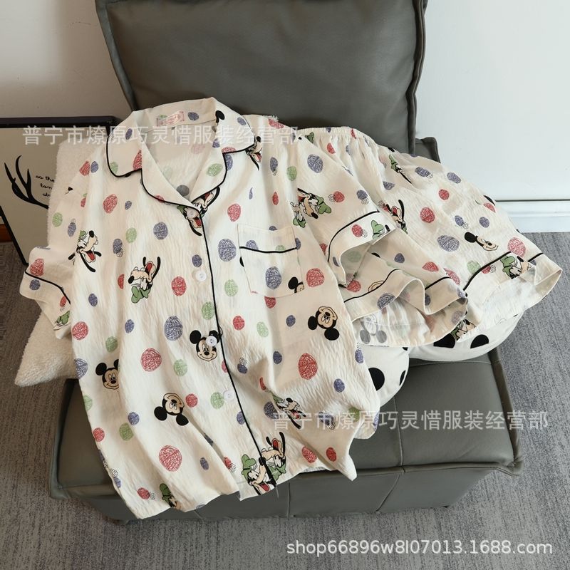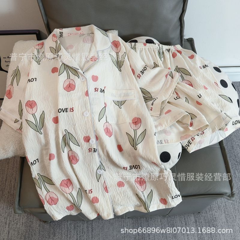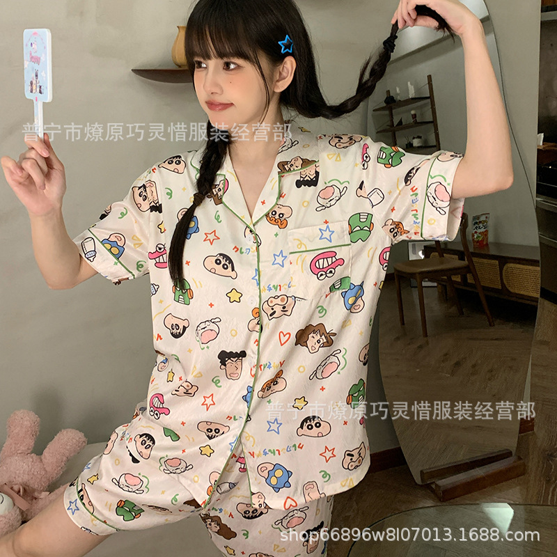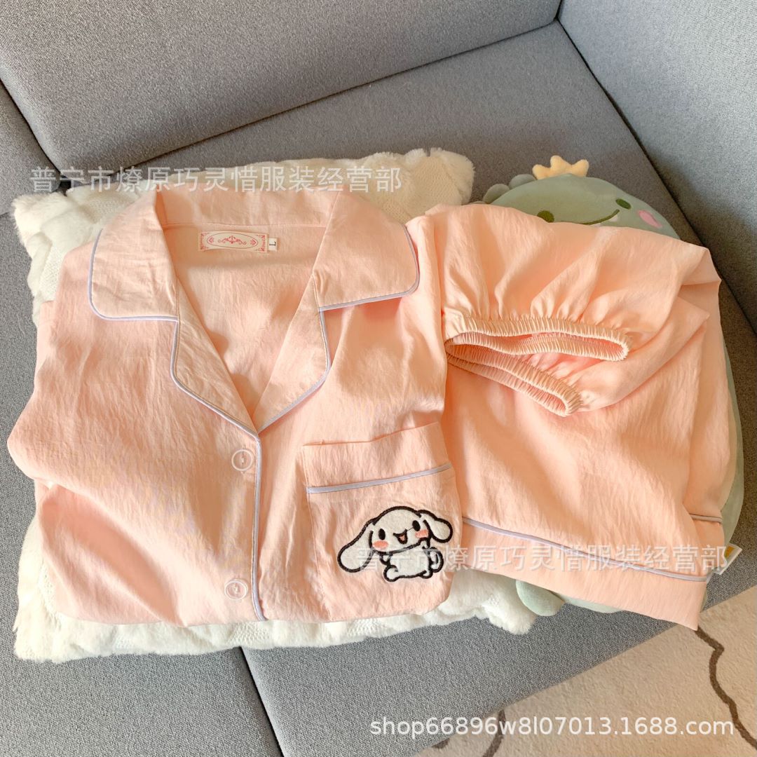 2025 새로운 스타일 잠옷 여성 여름 반팔 구름면 간단한 단색 만화 귀여운 소녀의 집 옷 세트스토어 가기