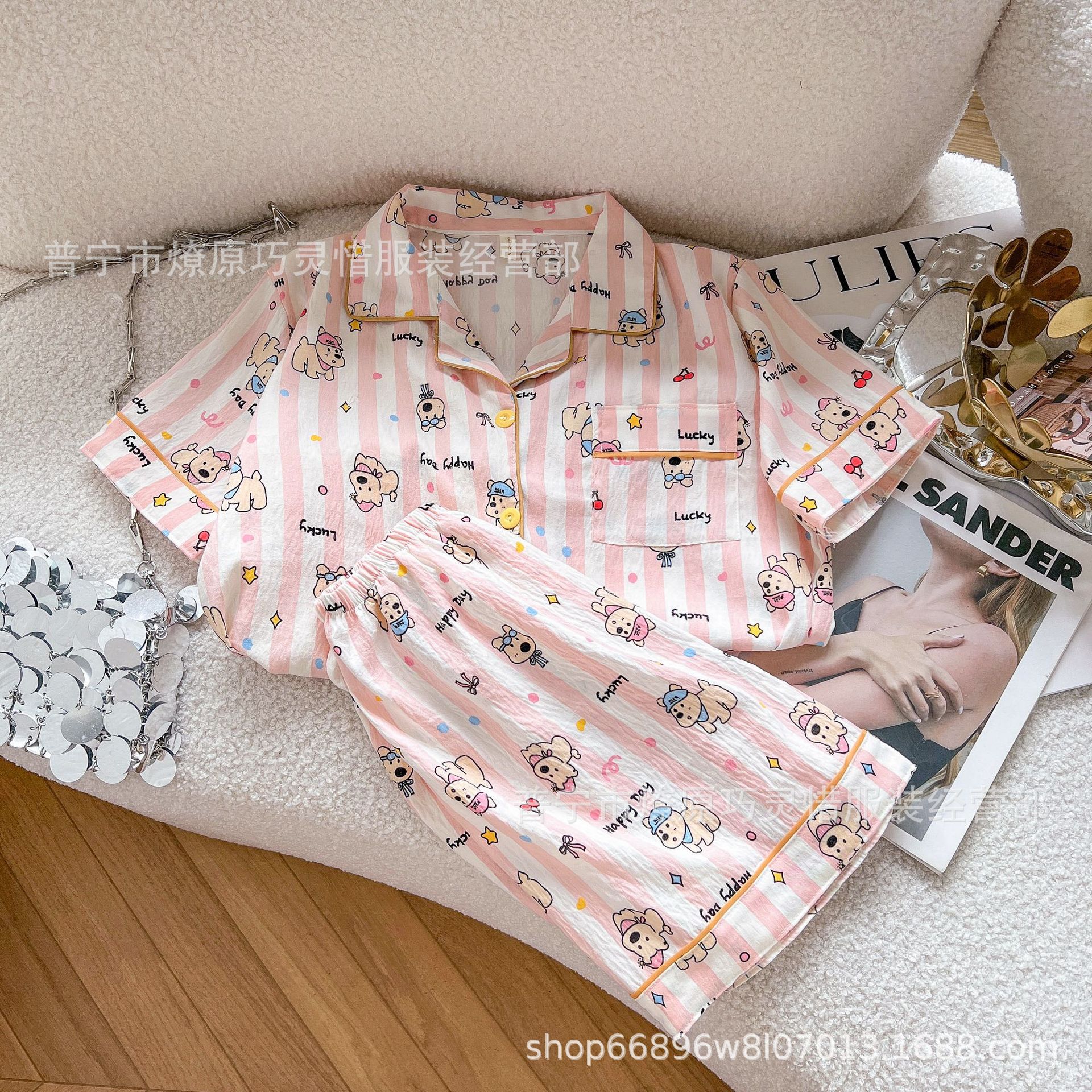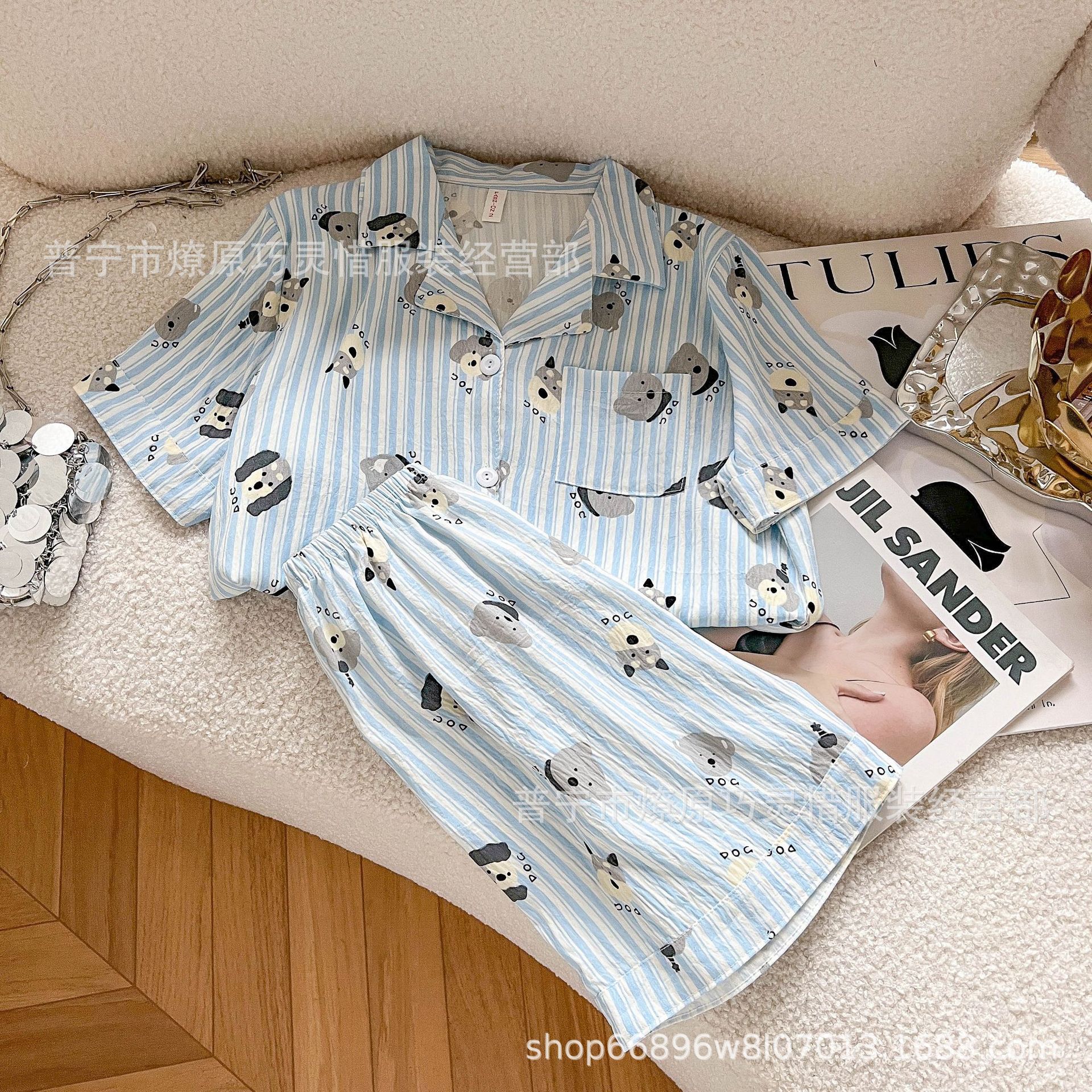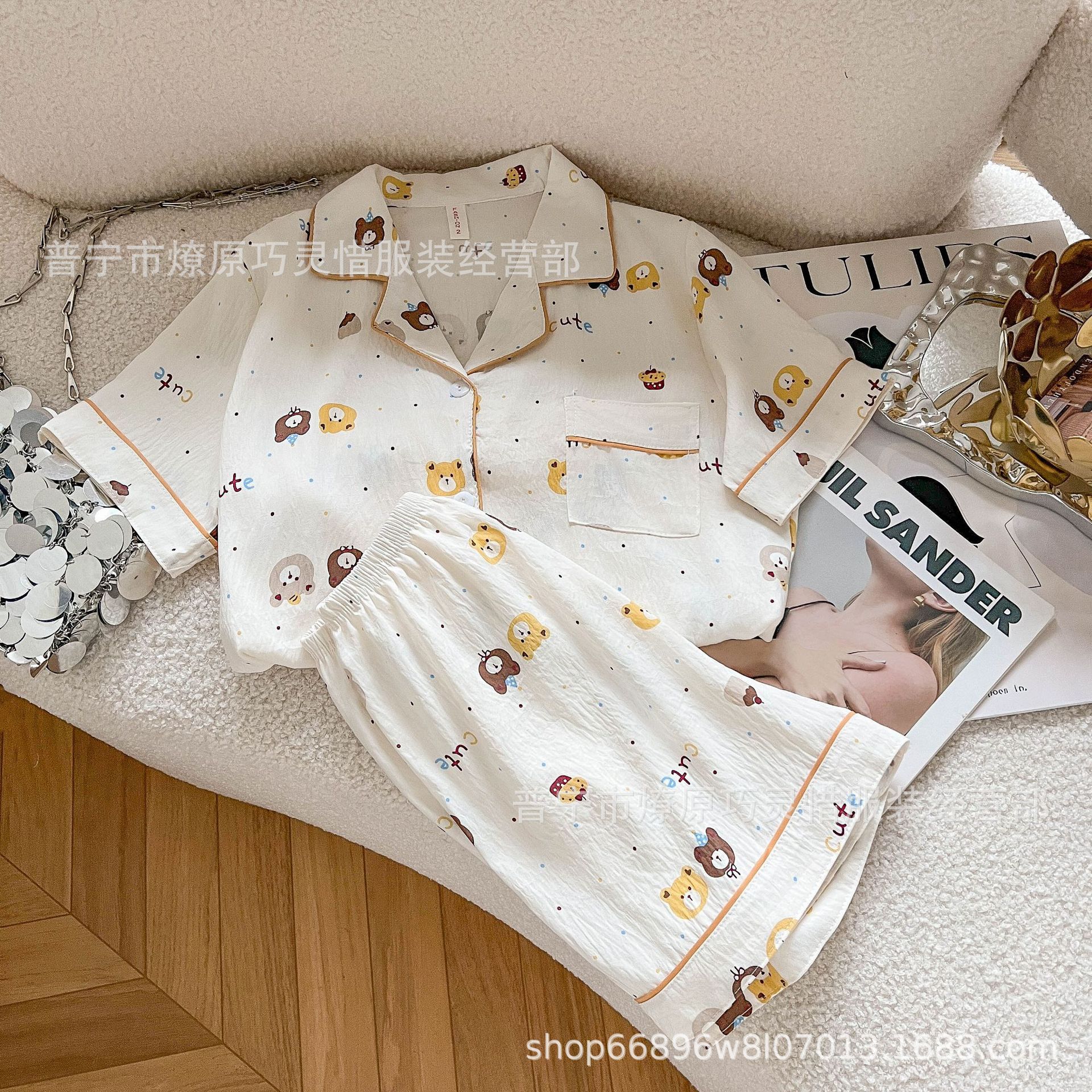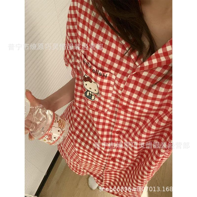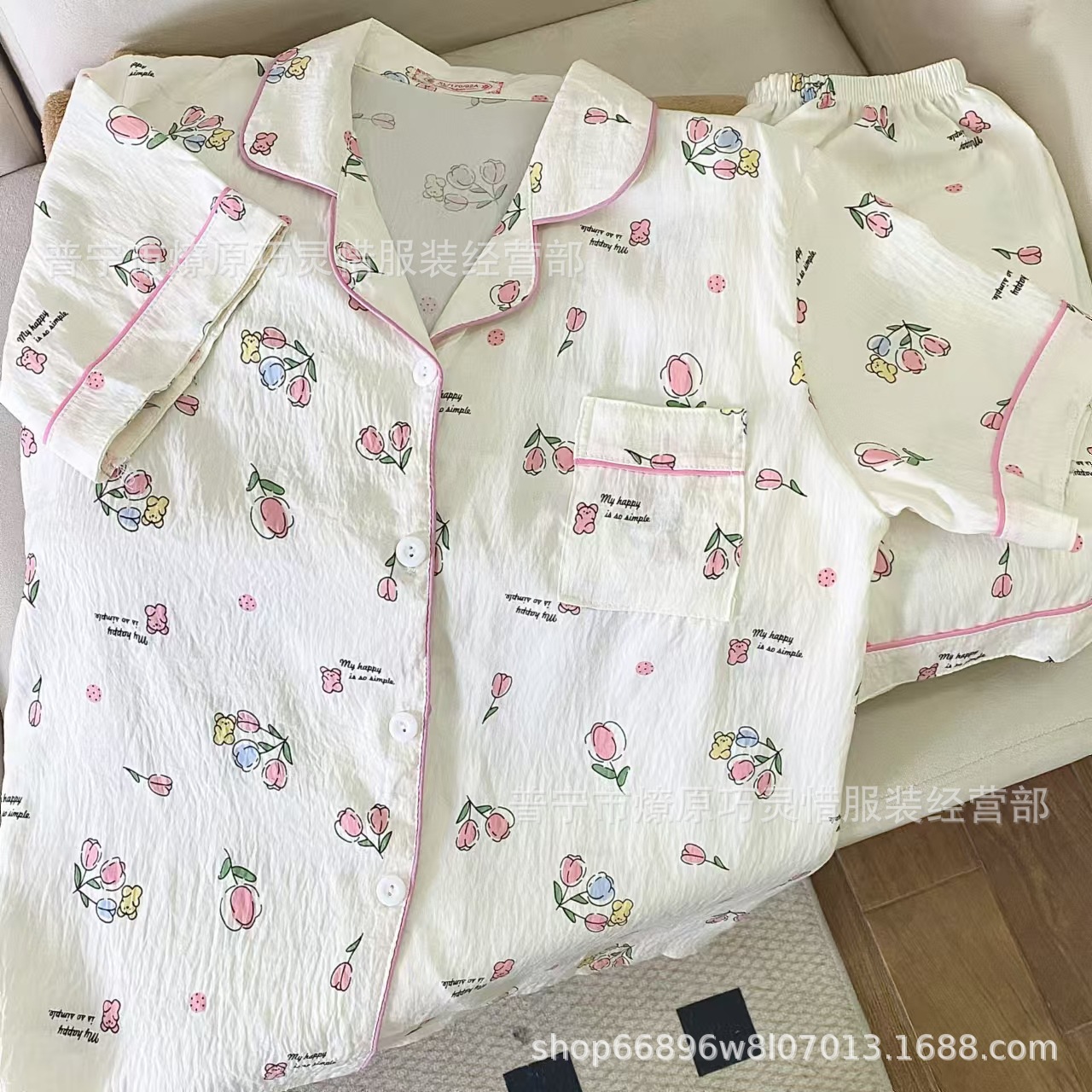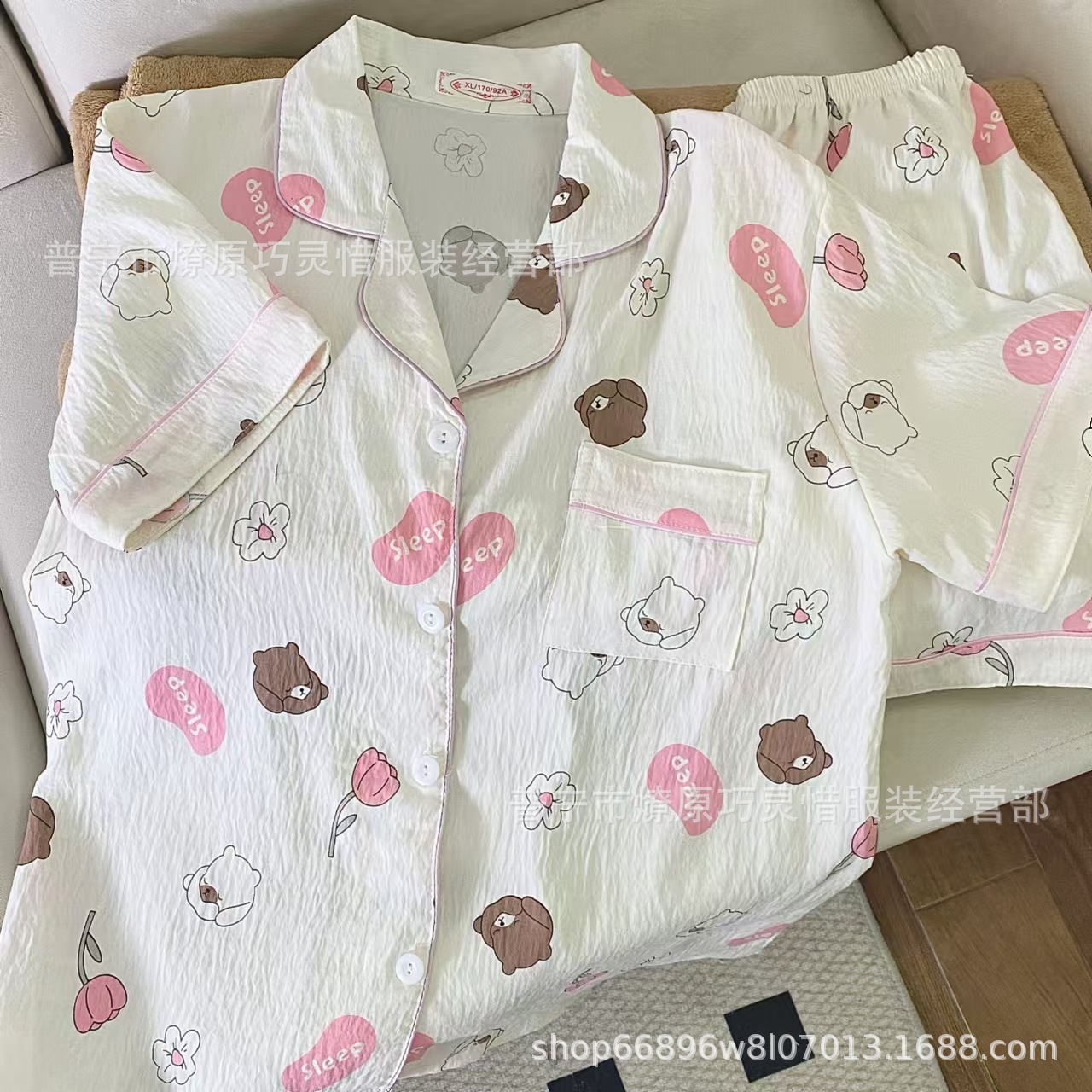 2025 새로운 스타일 잠옷 여성 여름 반팔 구름면 간단한 단색 만화 귀여운 소녀의 집 옷 세트스토어 가기
