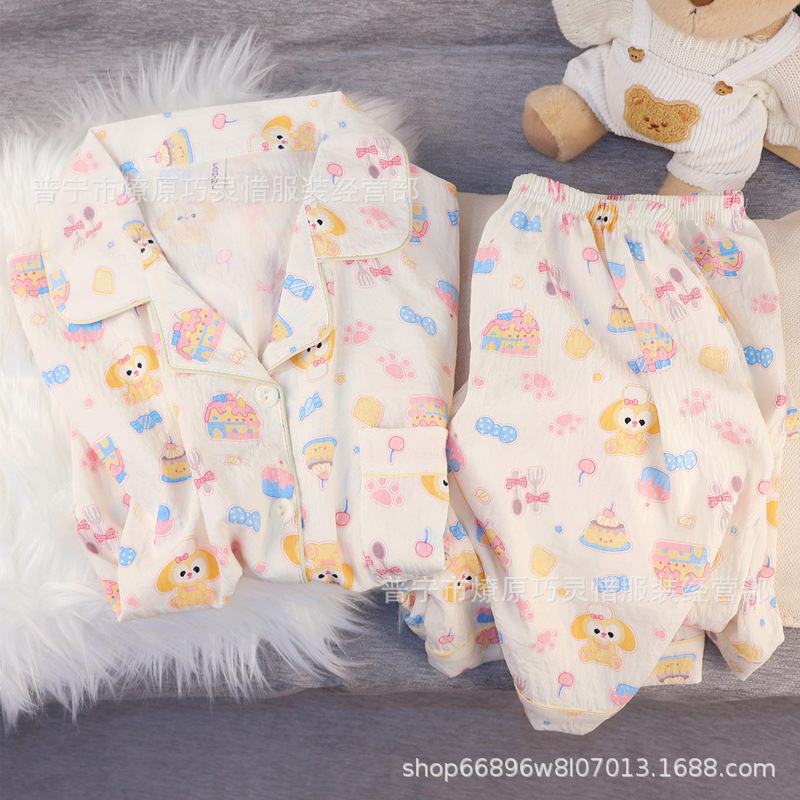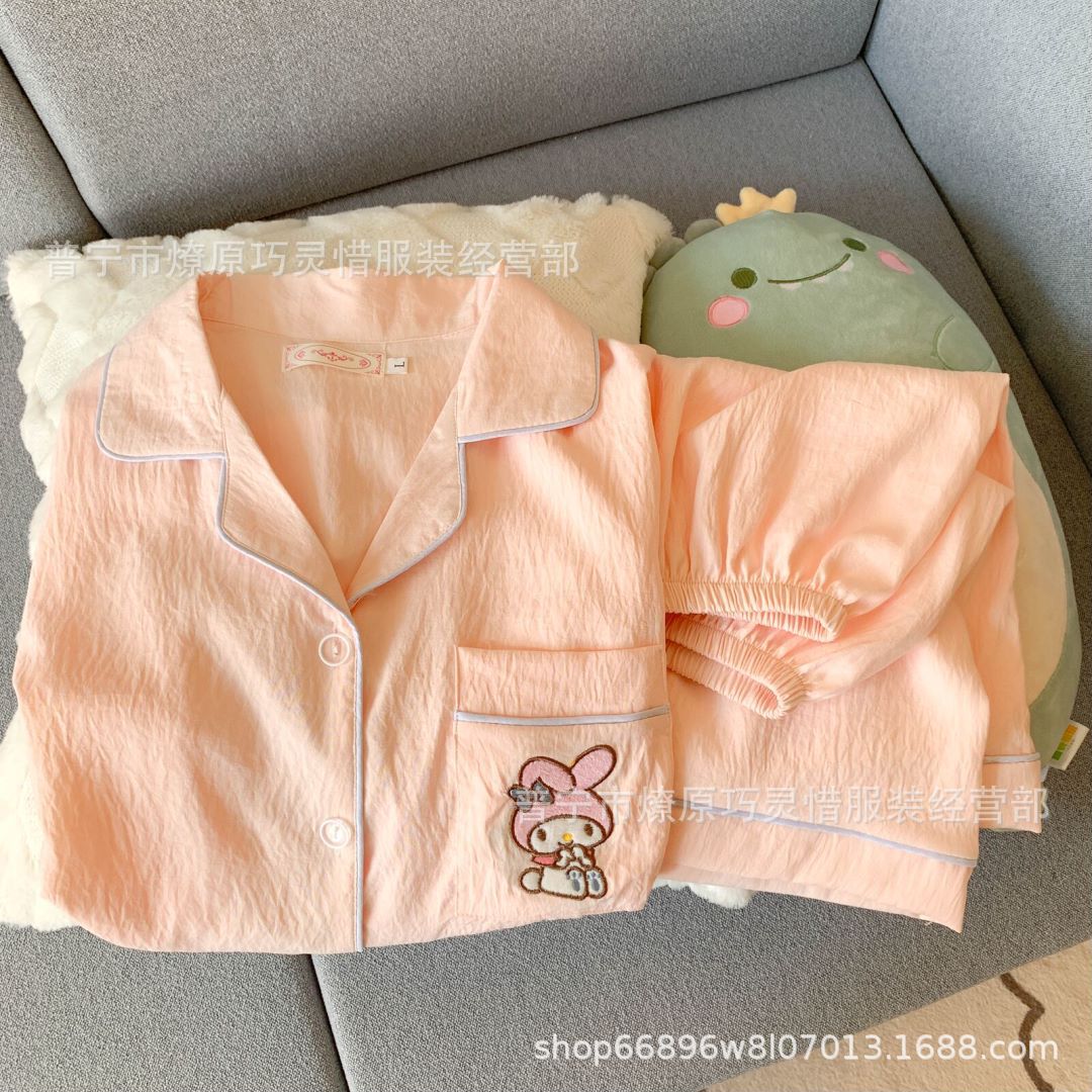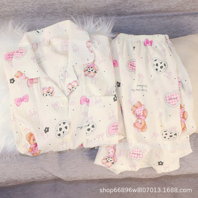 2025 새로운 스타일 잠옷 여성 여름 반팔 구름면 간단한 단색 만화 귀여운 소녀의 집 옷 세트