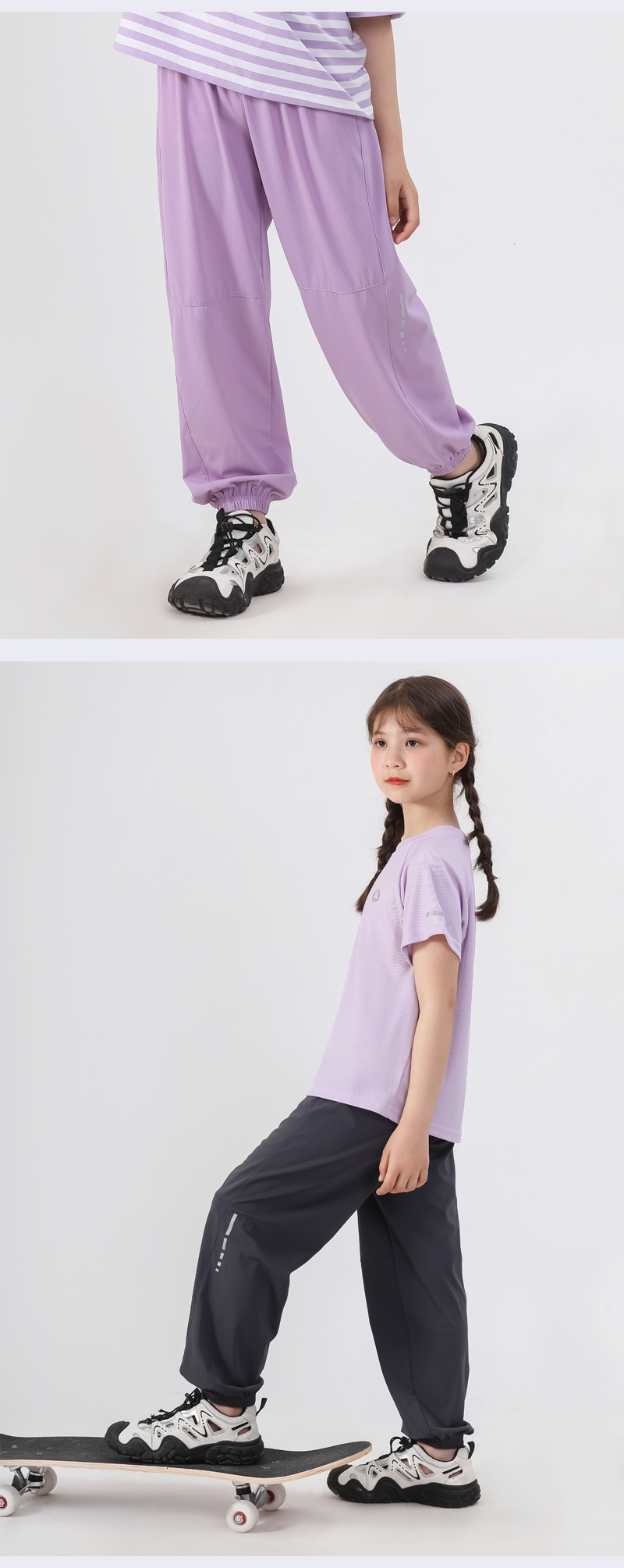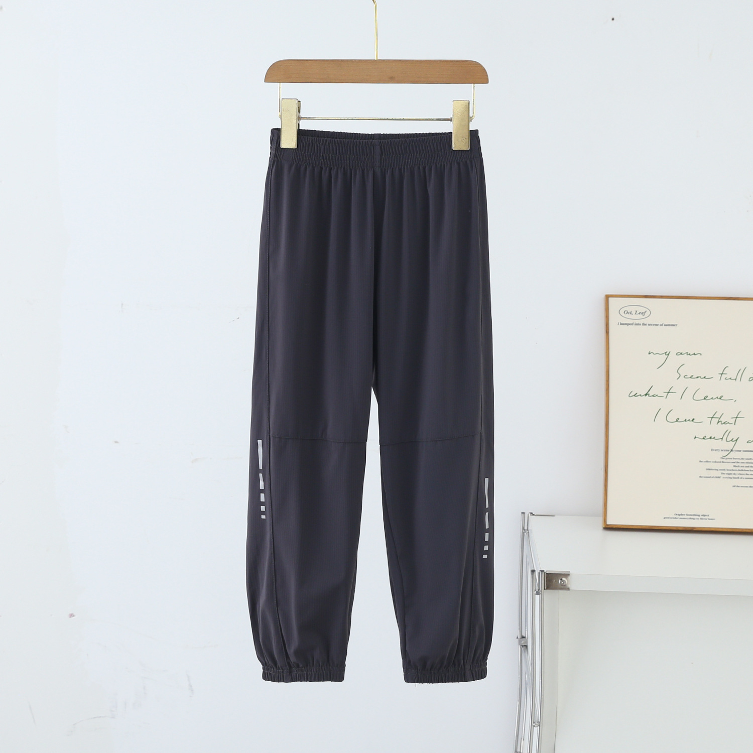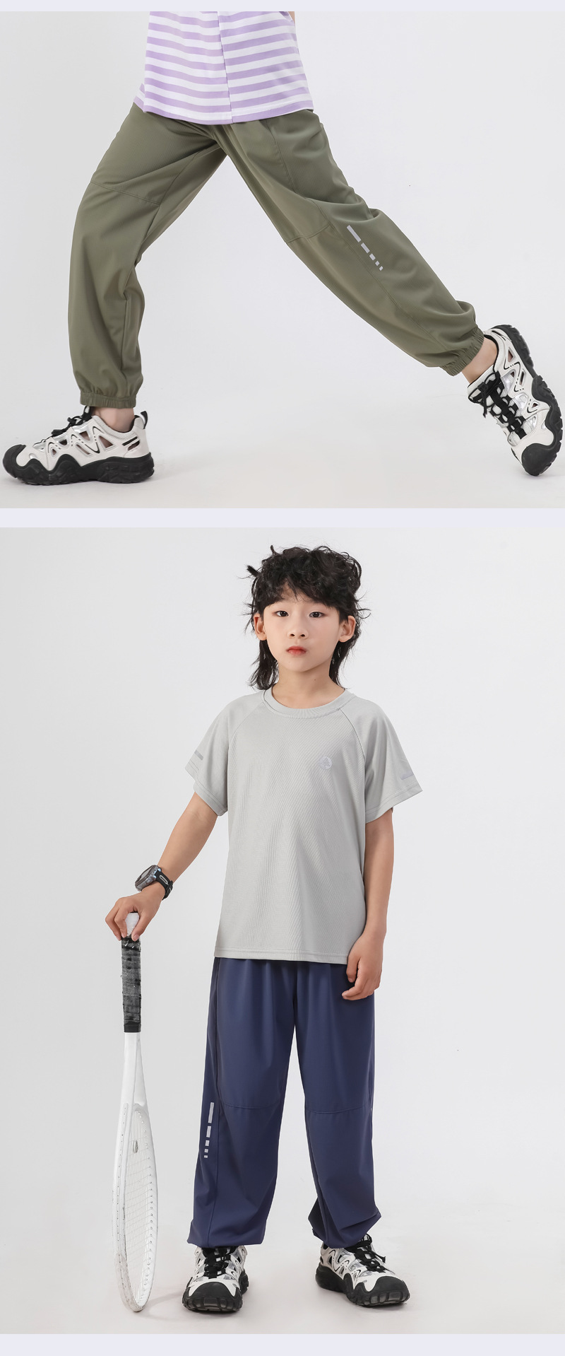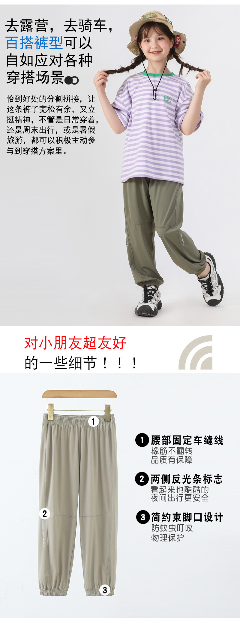 봄과 여름 어린이 반사 스트립 스포츠 캐주얼 바지 소년 소녀 아이스 실크 빠른 건조 바지 시원한 느낌 얇은 모기 방지 바지