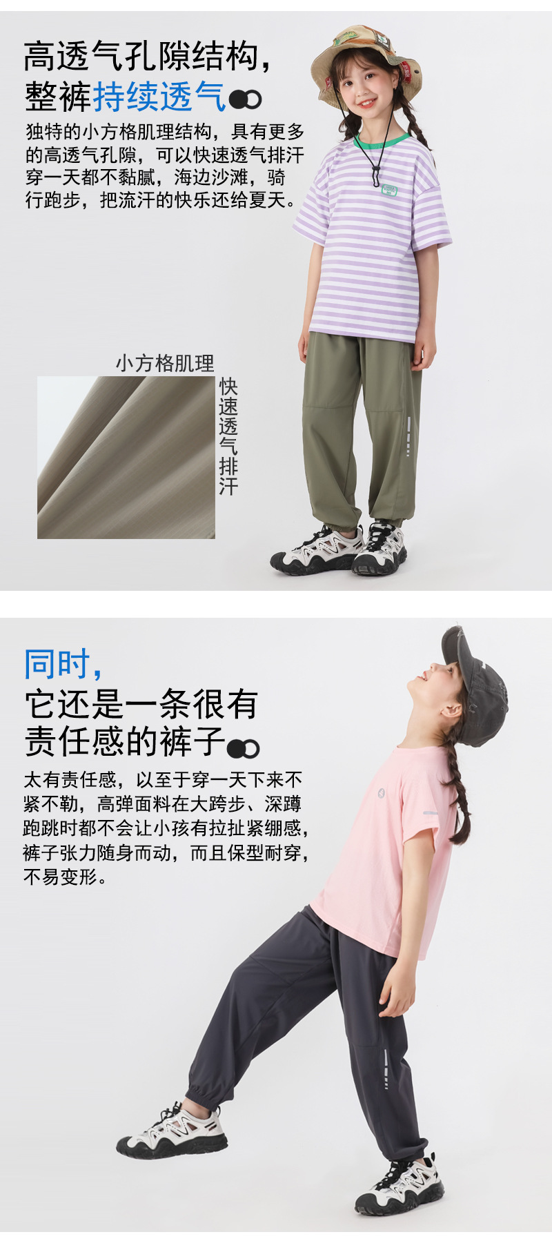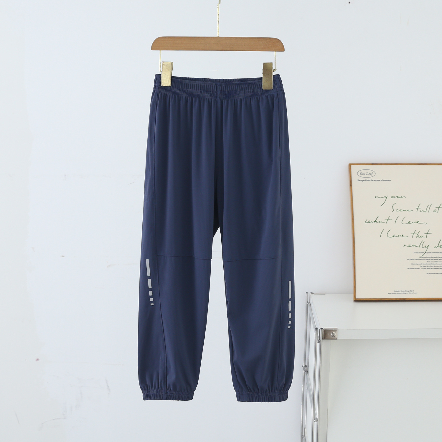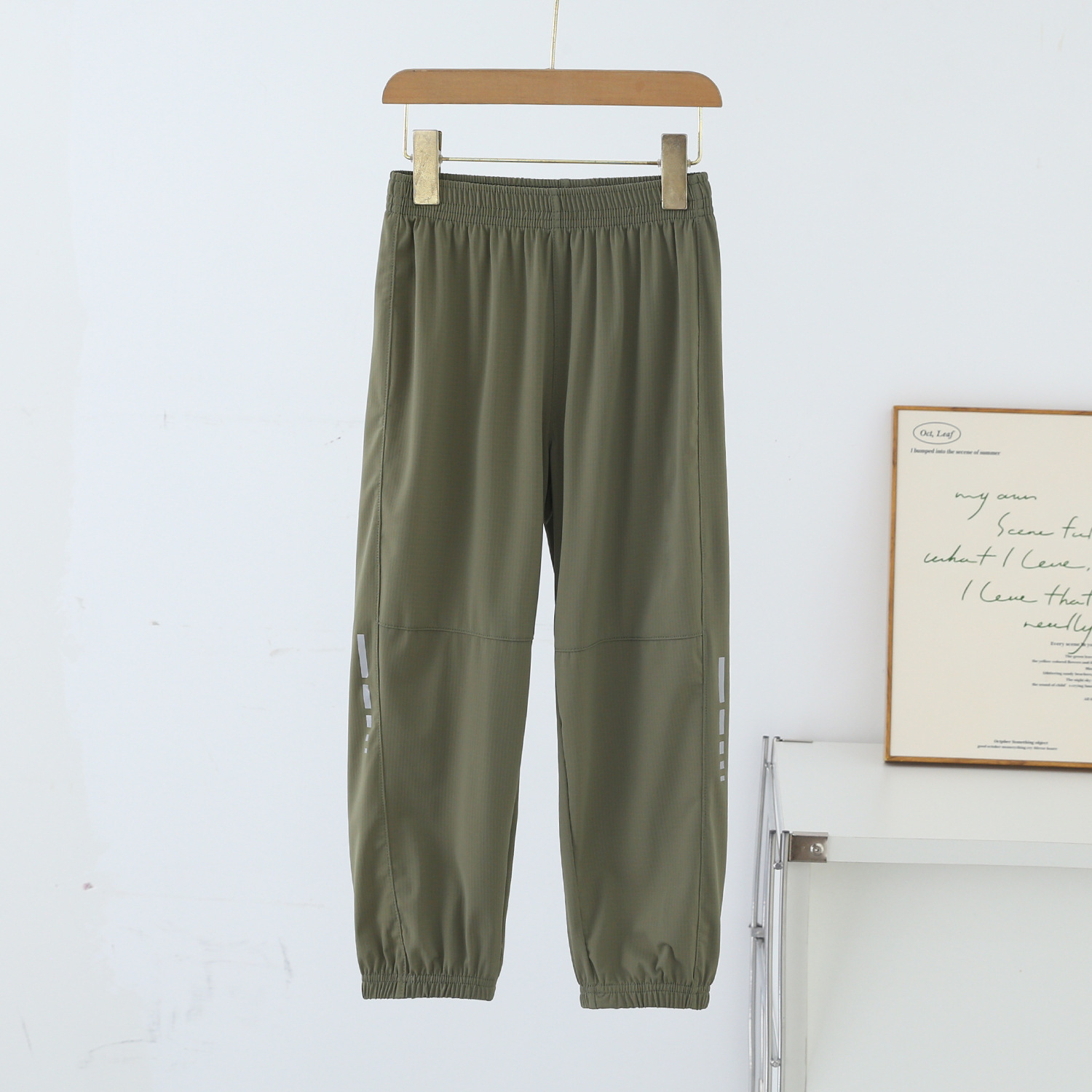 봄과 여름 어린이 반사 스트립 스포츠 캐주얼 바지 소년 소녀 아이스 실크 빠른 건조 바지 시원한 느낌 얇은 모기 방지 바지