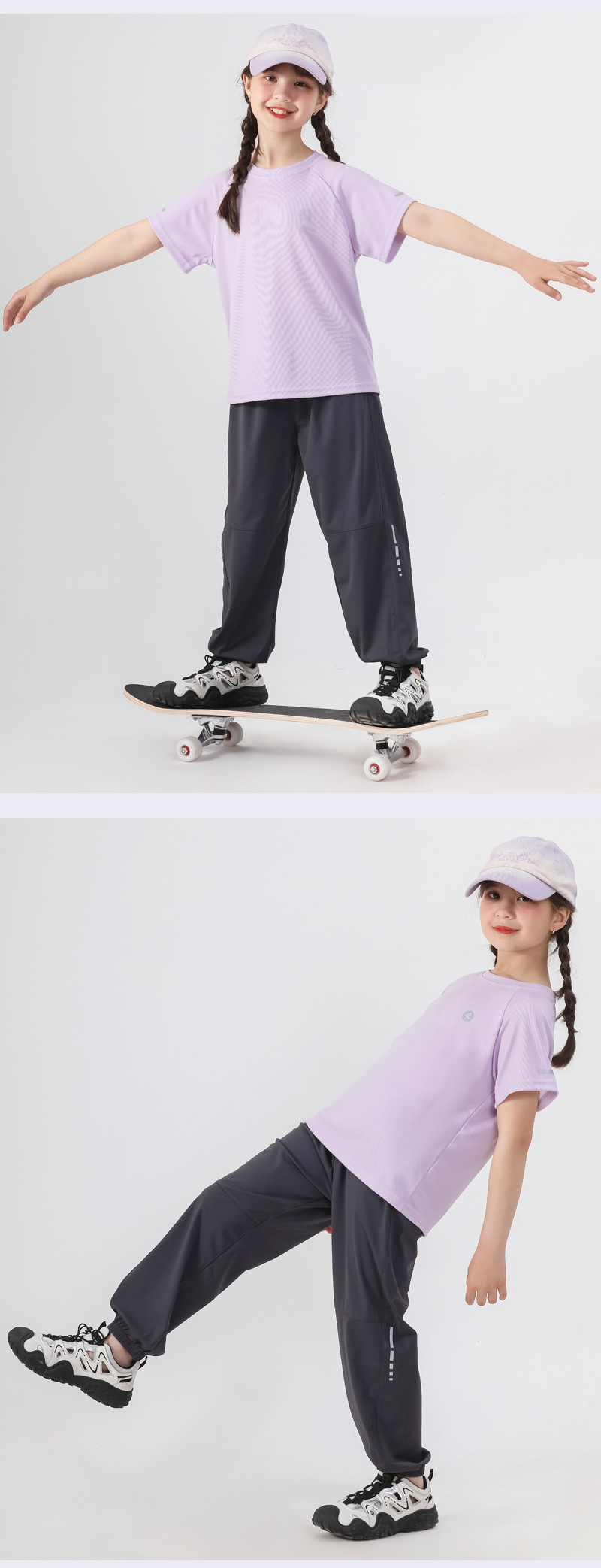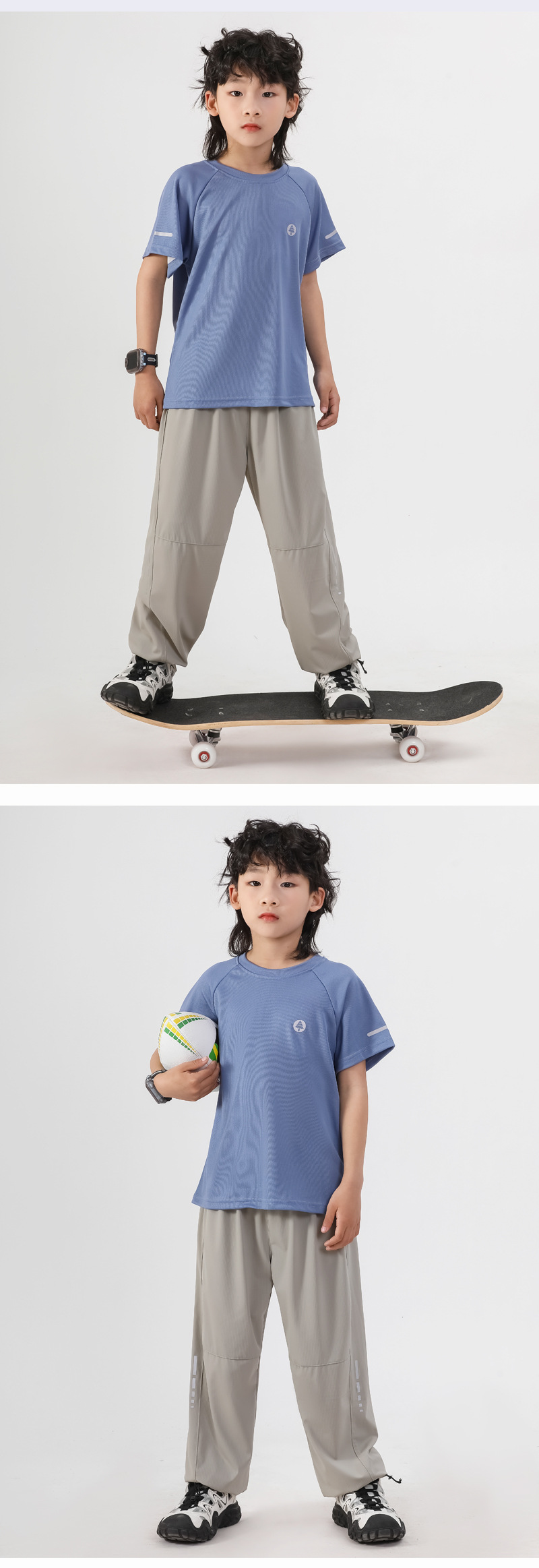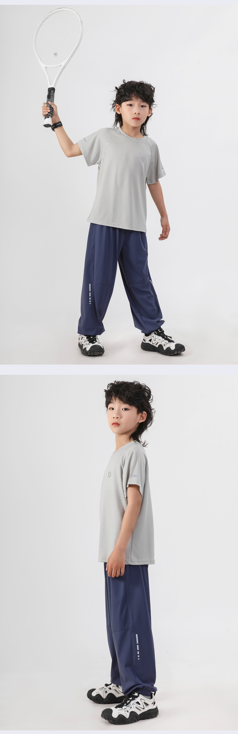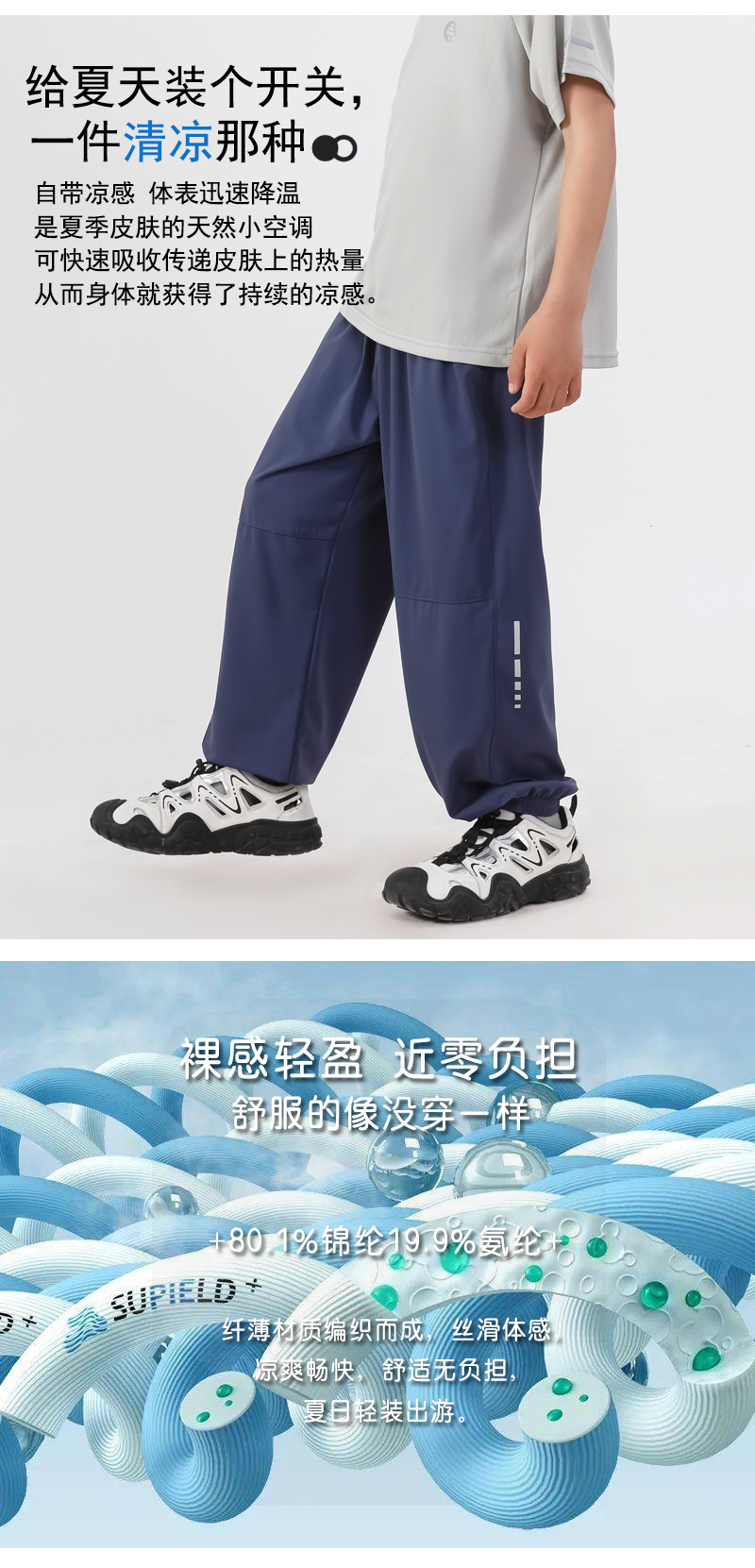 봄과 여름 어린이 반사 스트립 스포츠 캐주얼 바지 소년 소녀 아이스 실크 빠른 건조 바지 시원한 느낌 얇은 모기 방지 바지