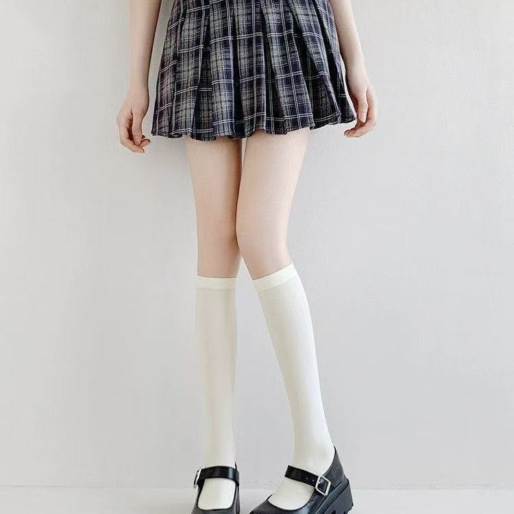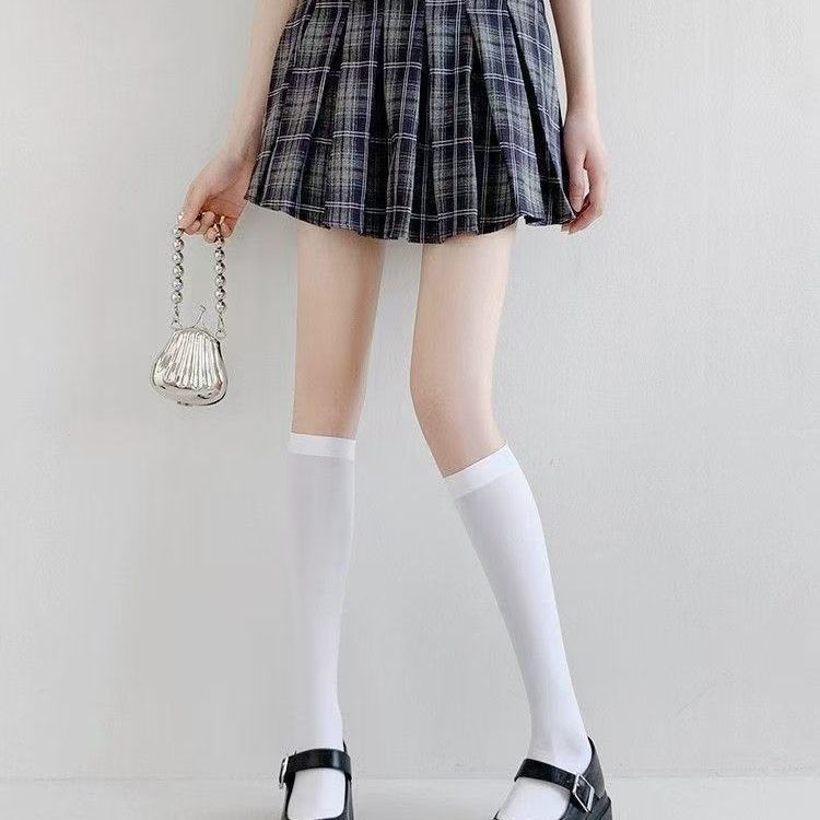 화이트 라인 스타킹 오버 더 무릎 스타킹 허벅지 스타킹 실리콘 미끄럼 방지 화이트 스타킹 Jk 양말 Leg 양말 하프 스타킹스토어 가기
