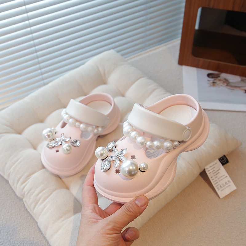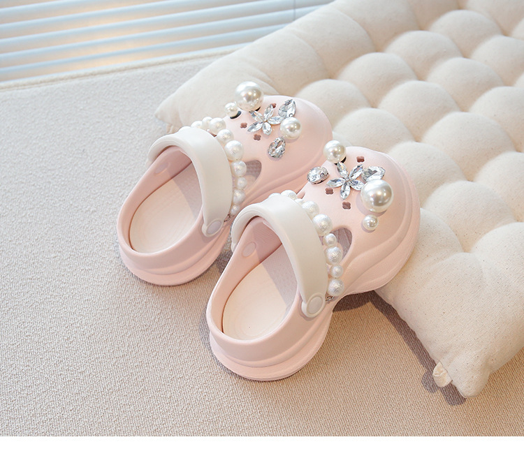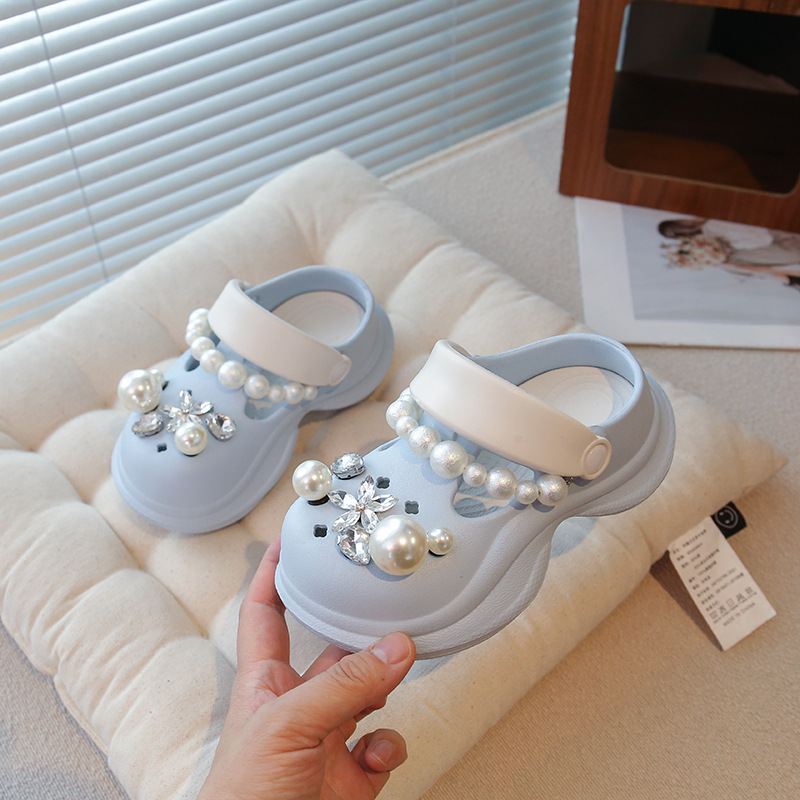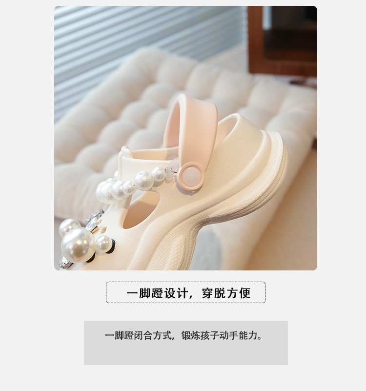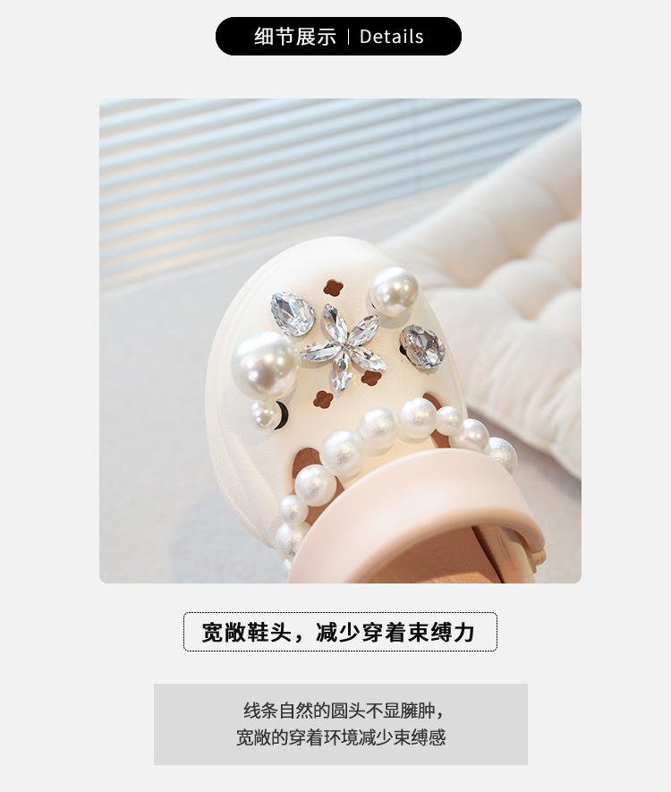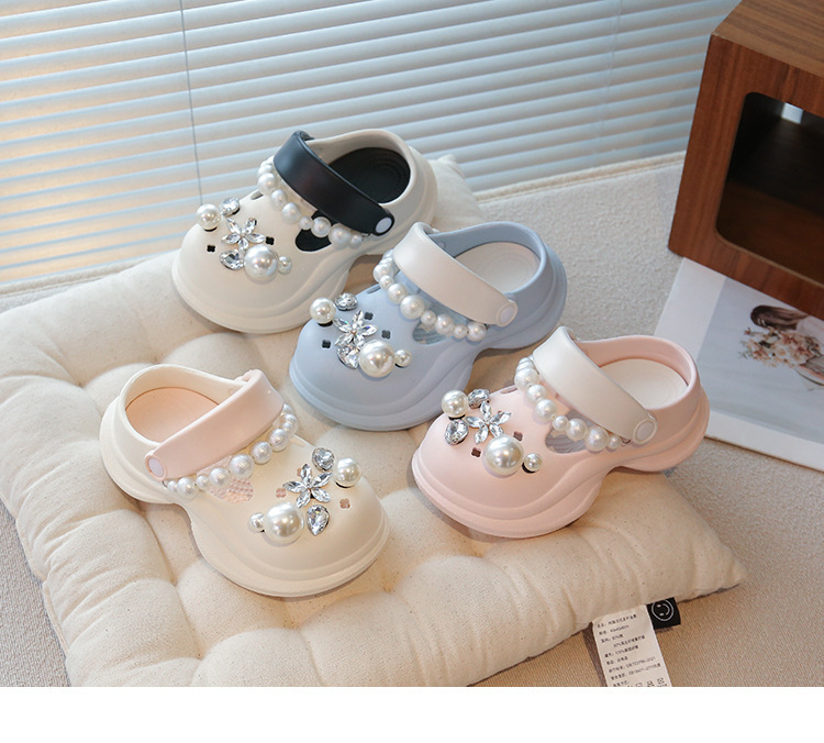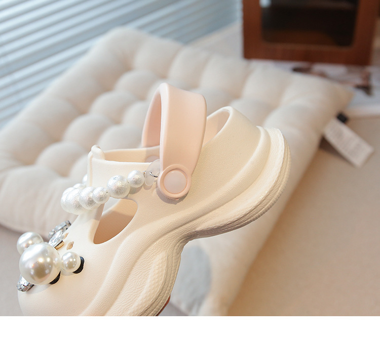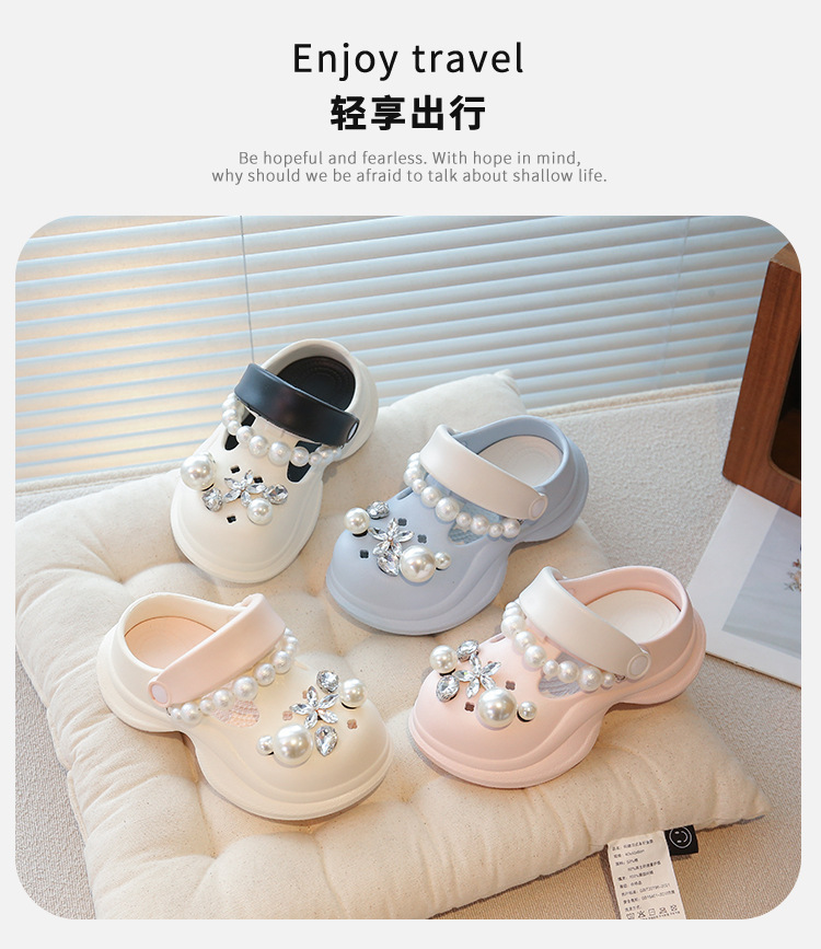 플랫폼 홀 슈즈 걸스 아우터 웨어 2025 새로운 미끄럼 방지 라인 스톤 펄 비치 슈즈 여름 여성을위한 높이 증가 샌들