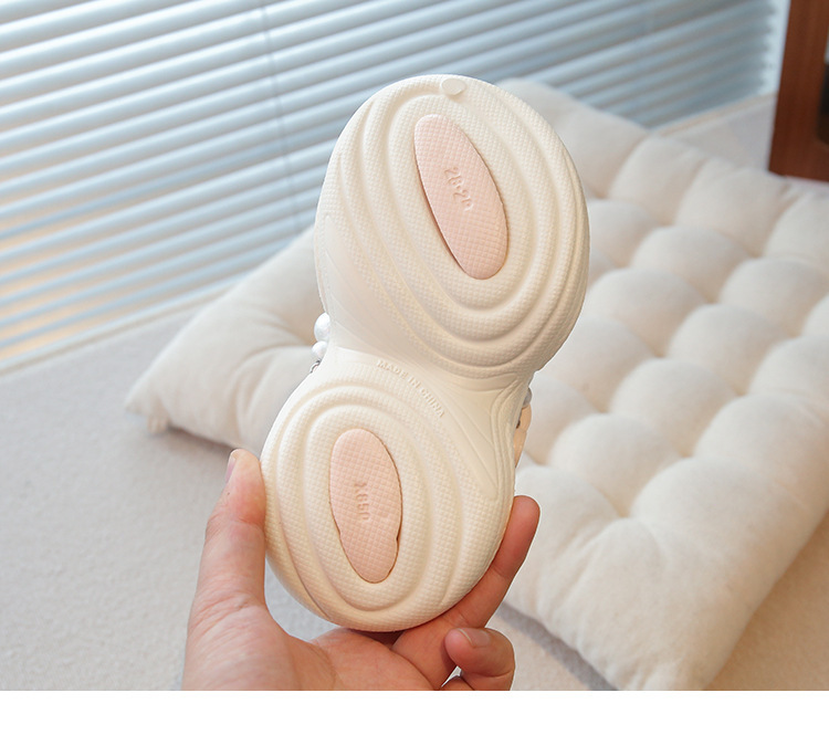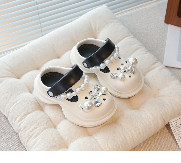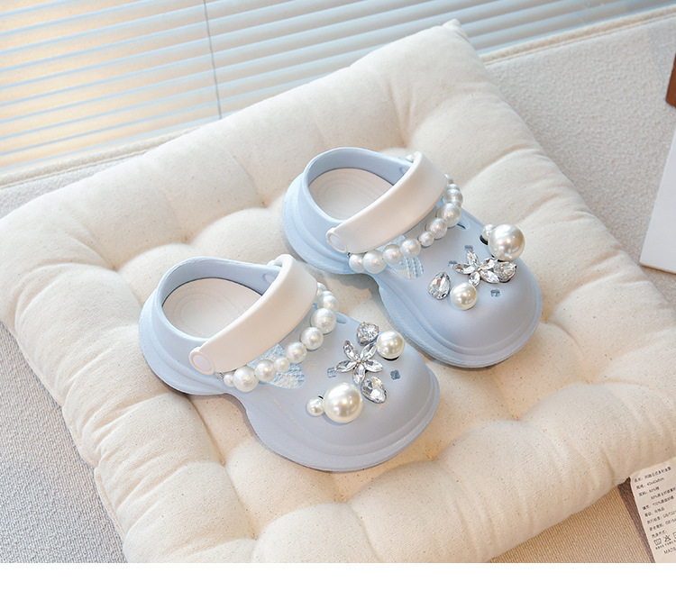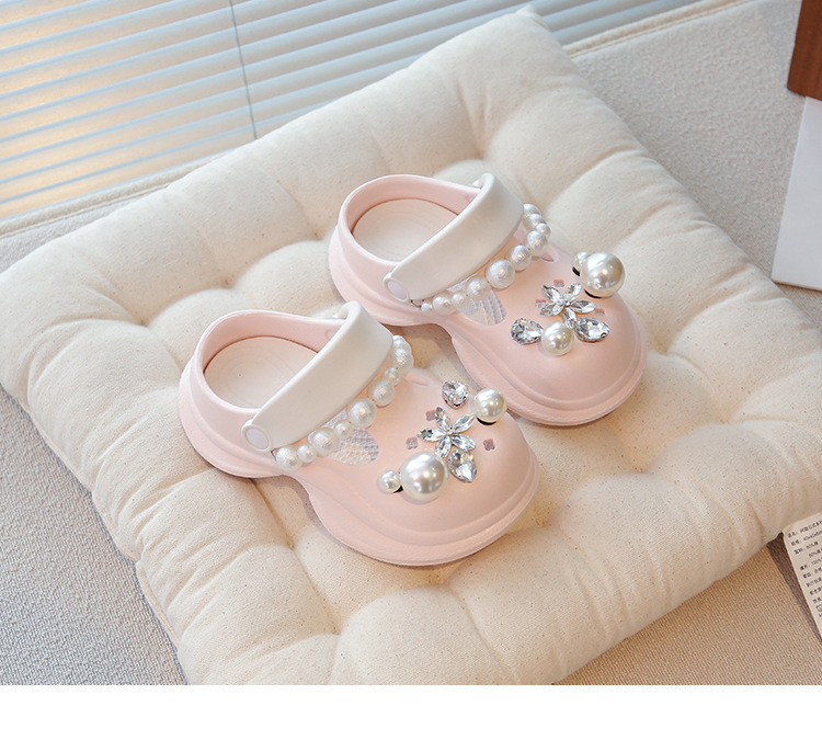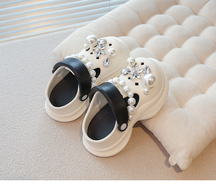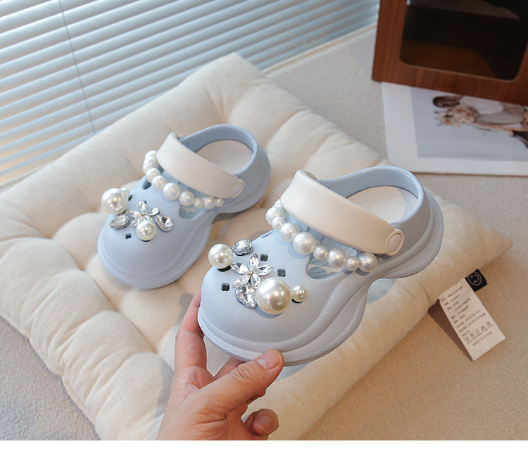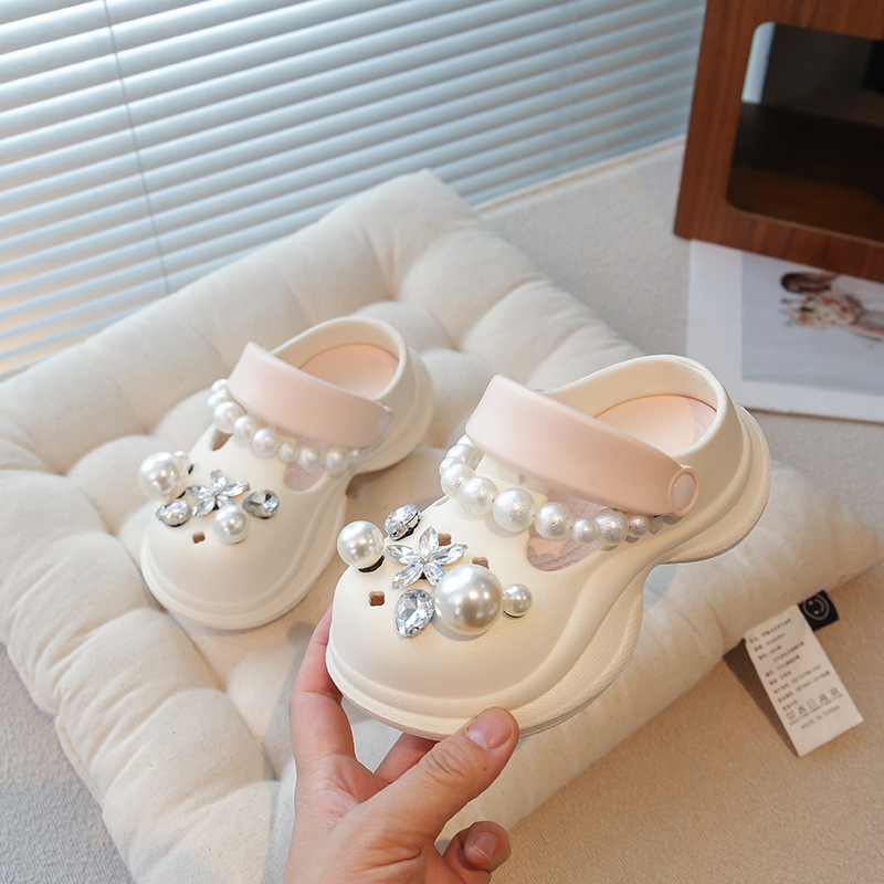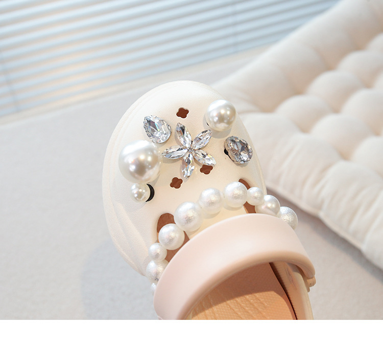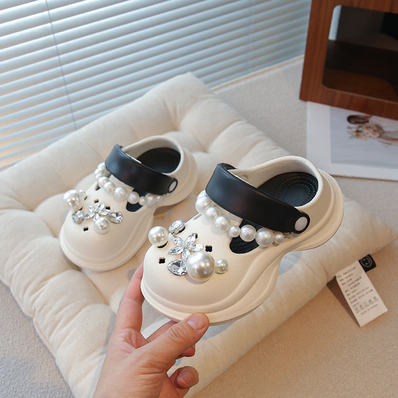 플랫폼 홀 슈즈 걸스 아우터 웨어 2025 새로운 미끄럼 방지 라인 스톤 펄 비치 슈즈 여름 여성을위한 높이 증가 샌들