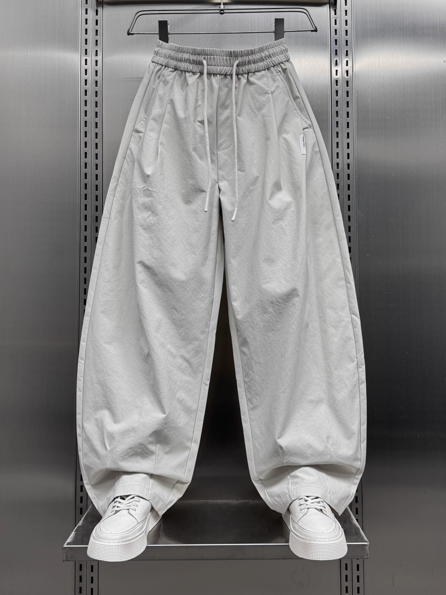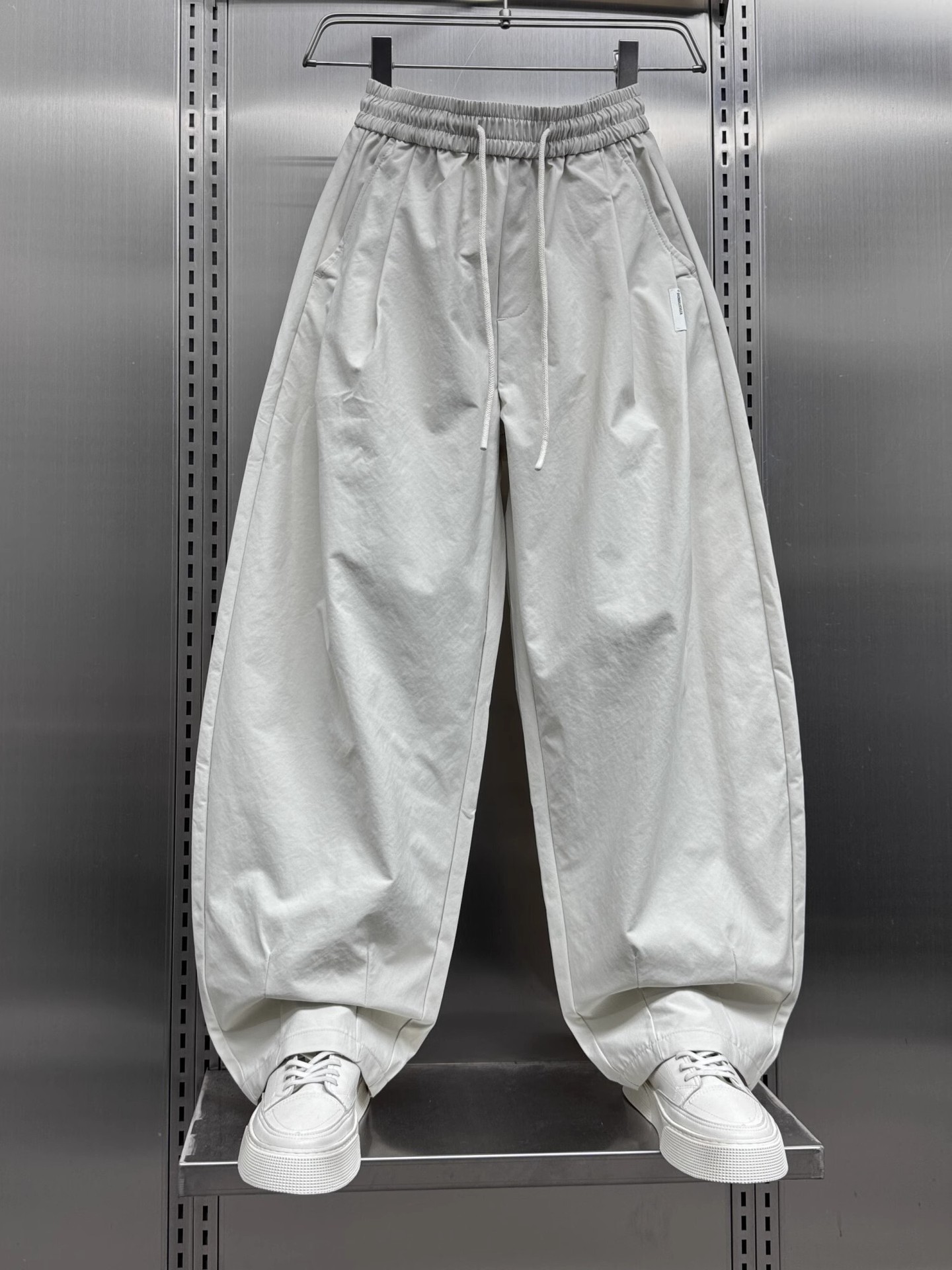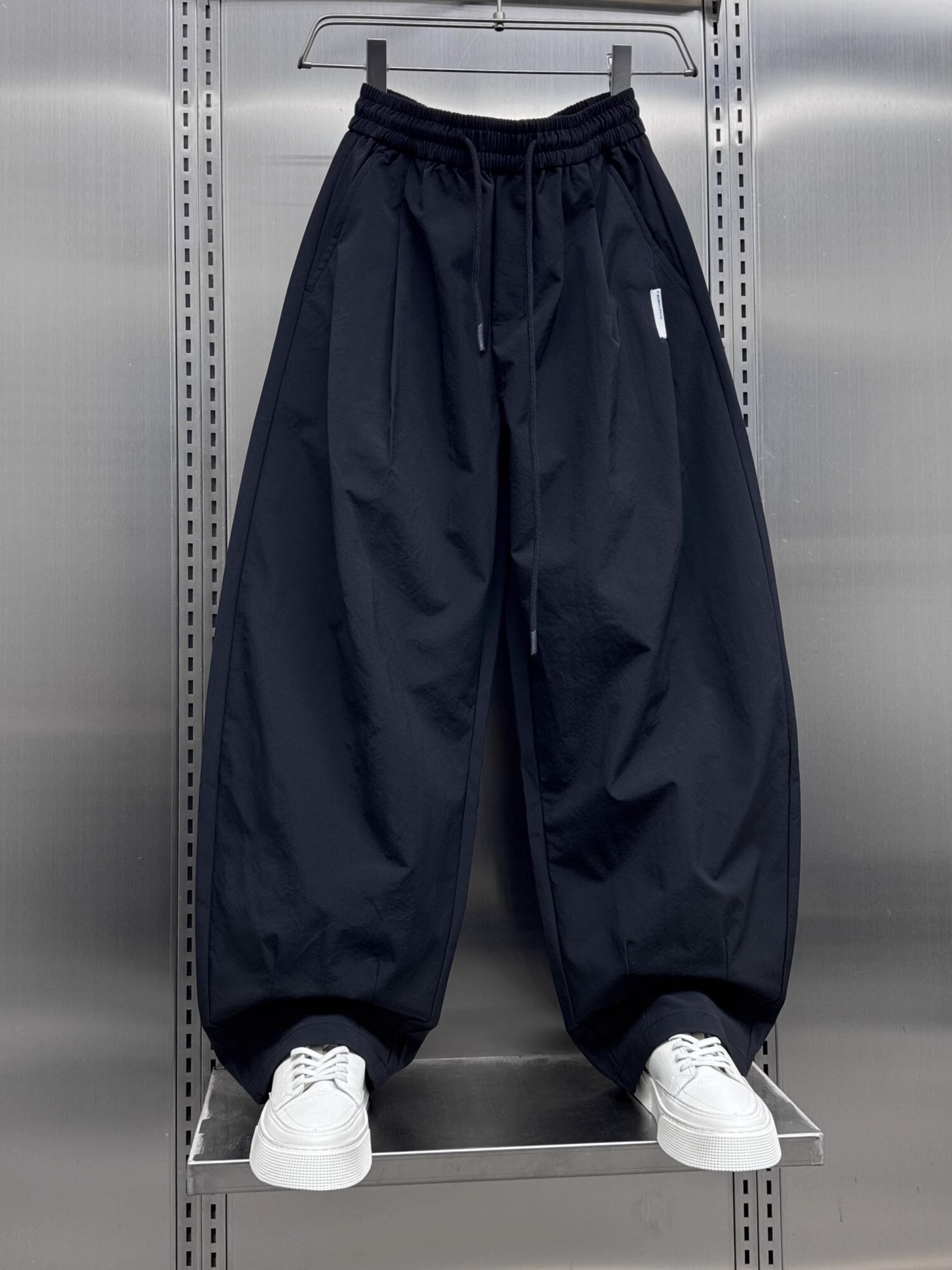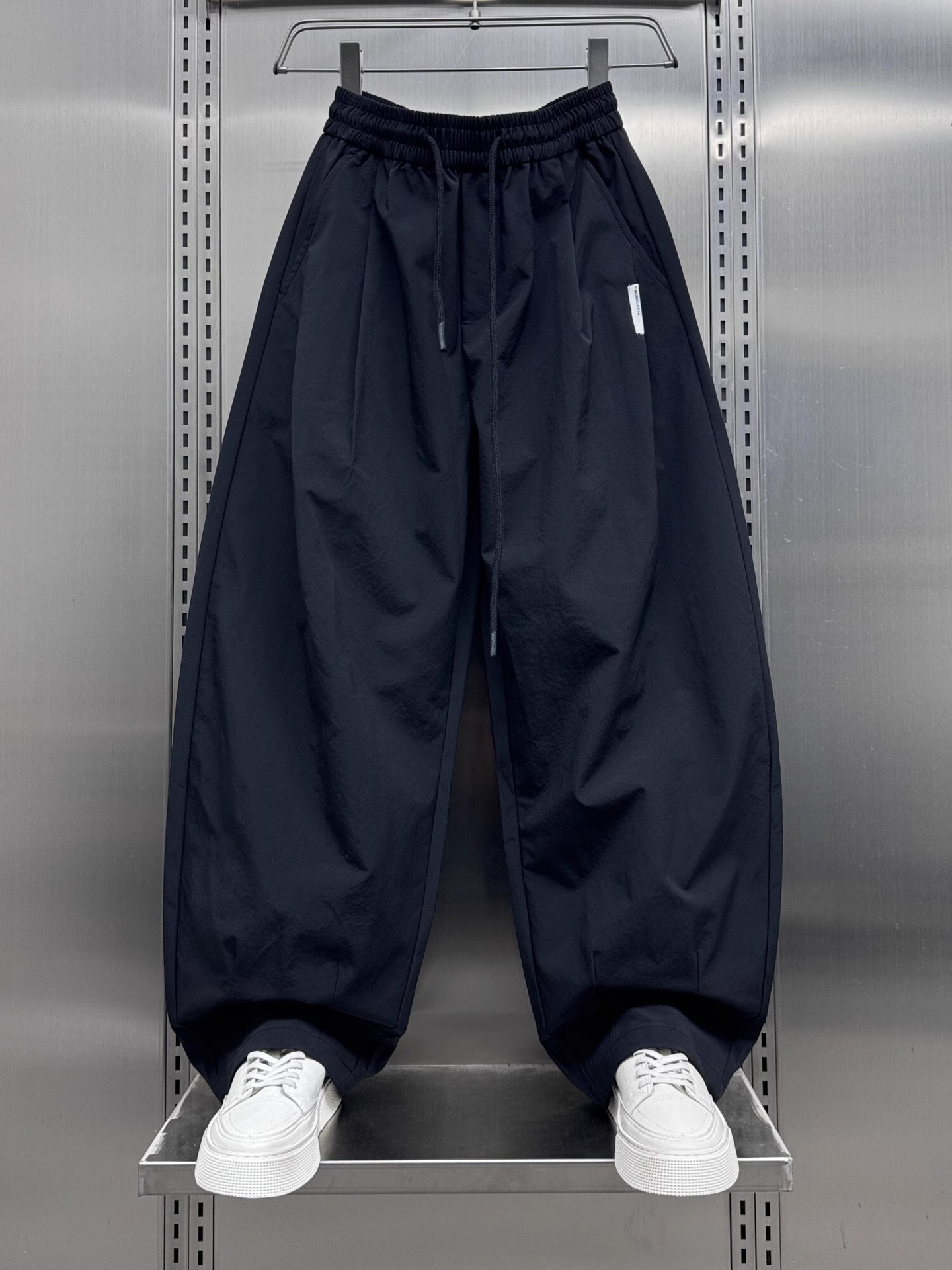 2025 여름 얇은 아메리칸 하렘 바지 남성 솔리드 컬러 루즈 와이드 레그 세이버 바지 다목적 스트레이트 캐주얼 바지스토어 가기