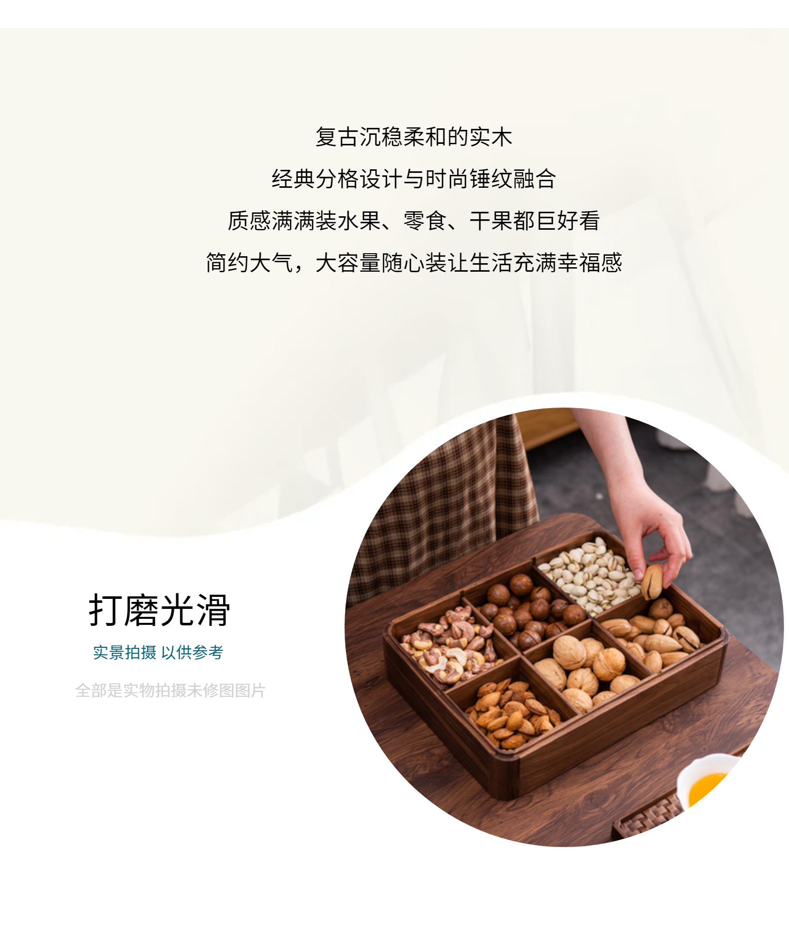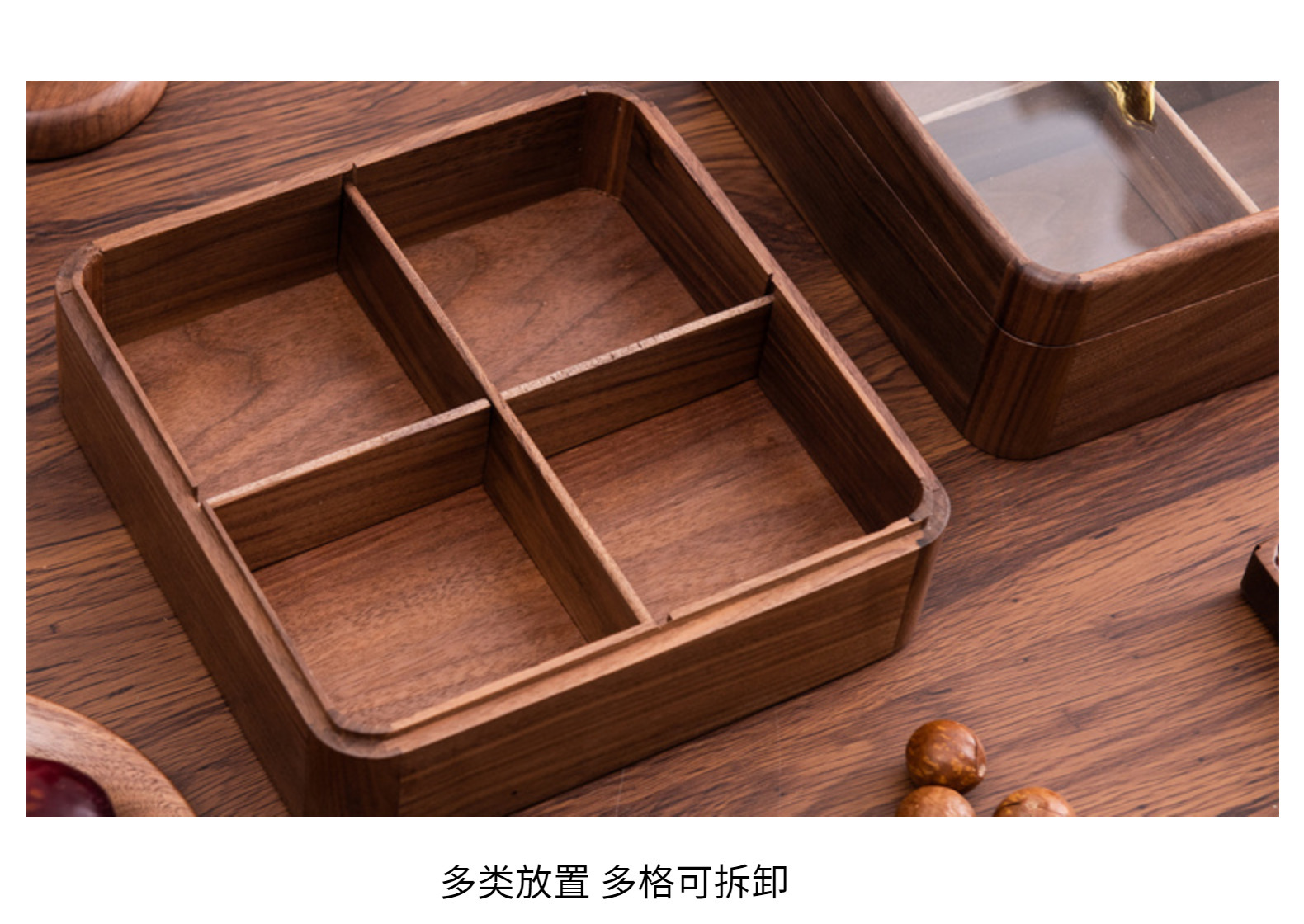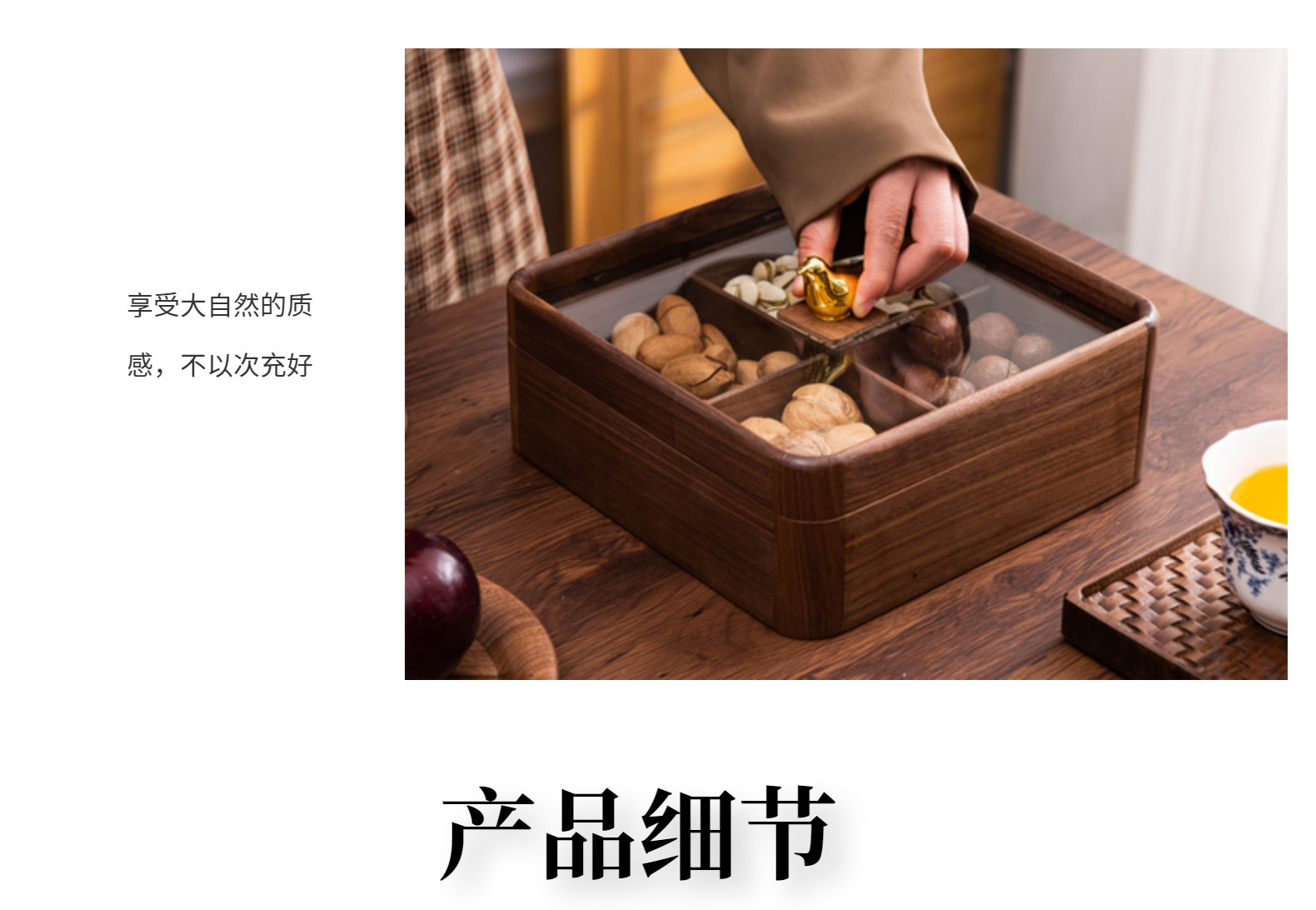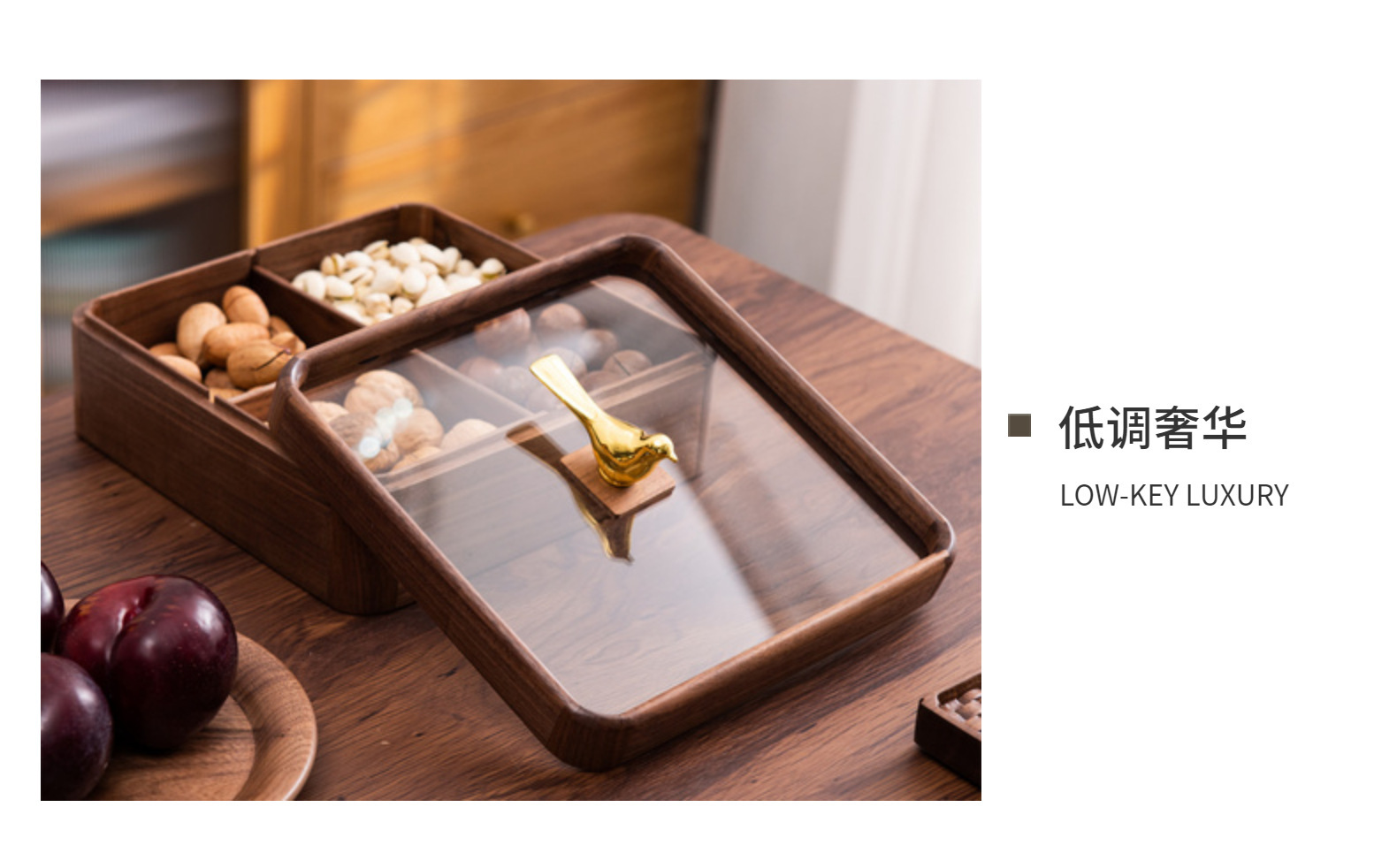 뚜껑이 있는 건조 과일 상자, 다중 칸 분류, 원목 스낵 상자, 거실 홈 라이트 럭셔리 블랙 호두 과일 접시스토어 가기