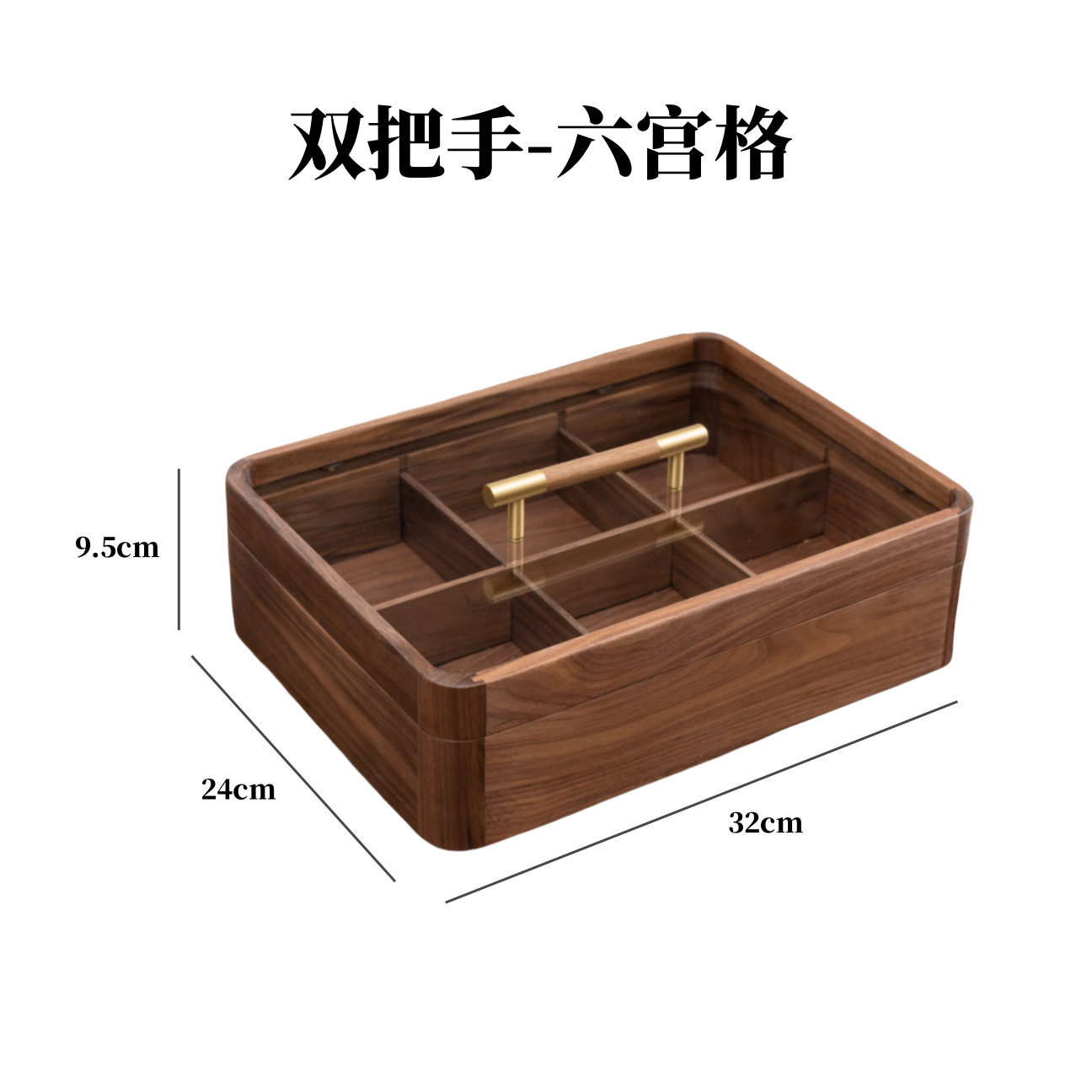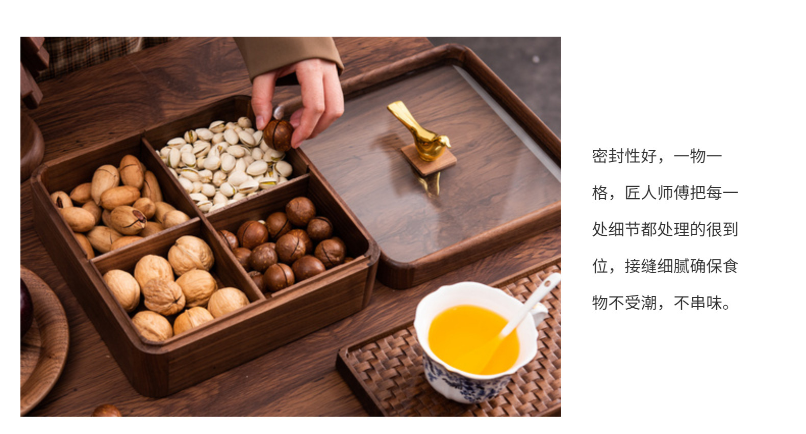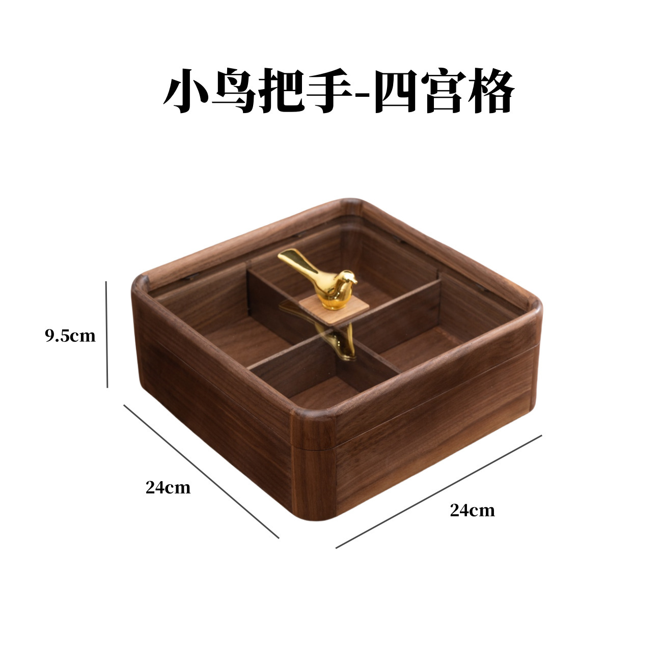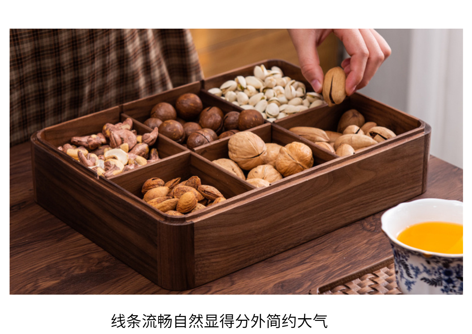 뚜껑이 있는 건조 과일 상자, 다중 칸 분류, 원목 스낵 상자, 거실 홈 라이트 럭셔리 블랙 호두 과일 접시스토어 가기
