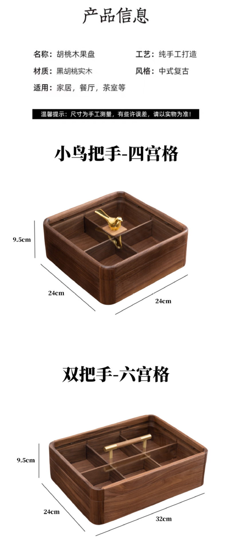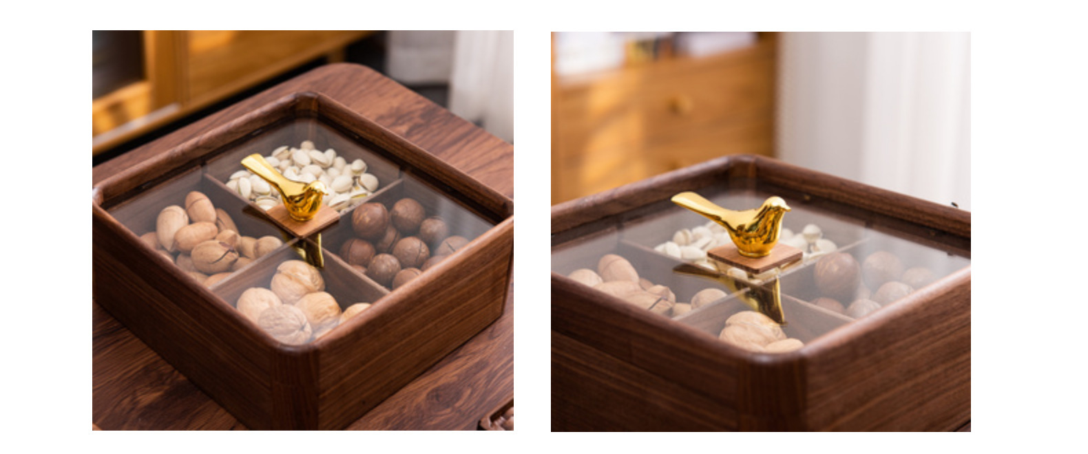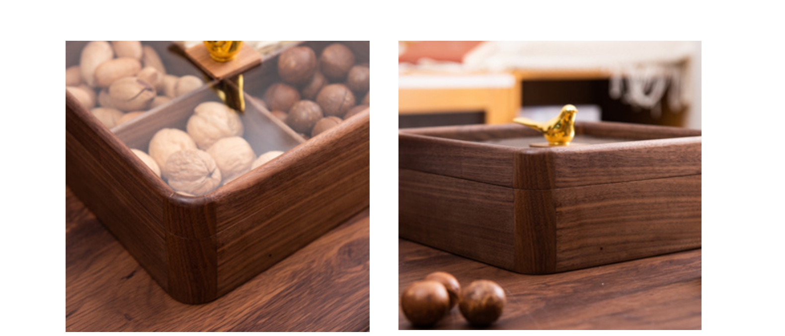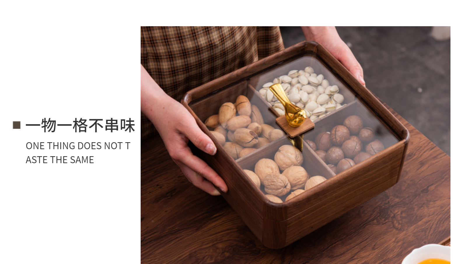 뚜껑이 있는 건조 과일 상자, 다중 칸 분류, 원목 스낵 상자, 거실 홈 라이트 럭셔리 블랙 호두 과일 접시스토어 가기