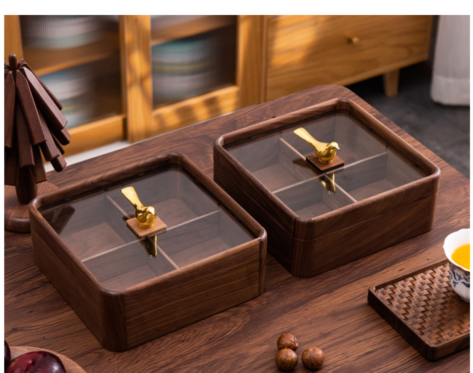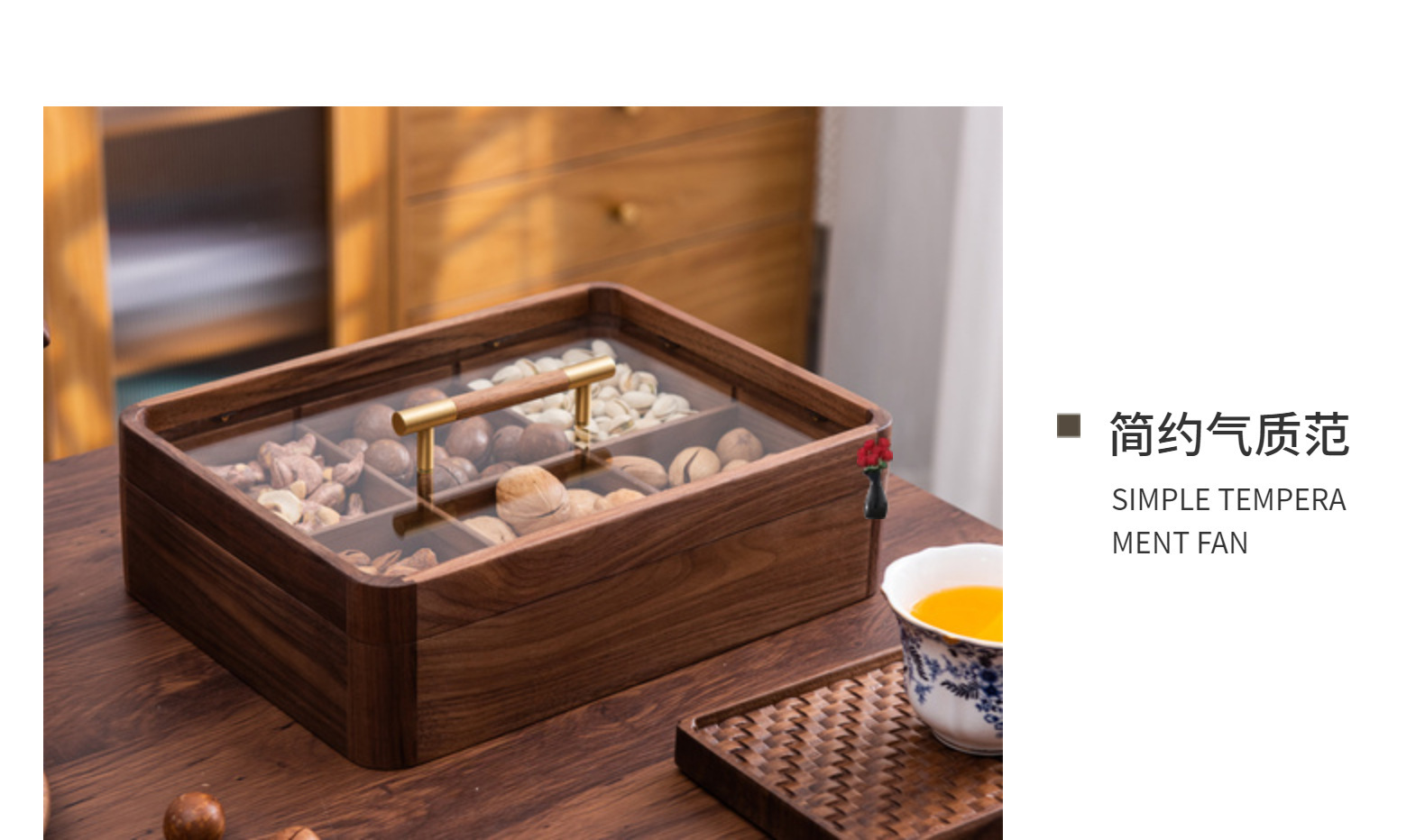 뚜껑이 있는 건조 과일 상자, 다중 칸 분류, 원목 스낵 상자, 거실 홈 라이트 럭셔리 블랙 호두 과일 접시