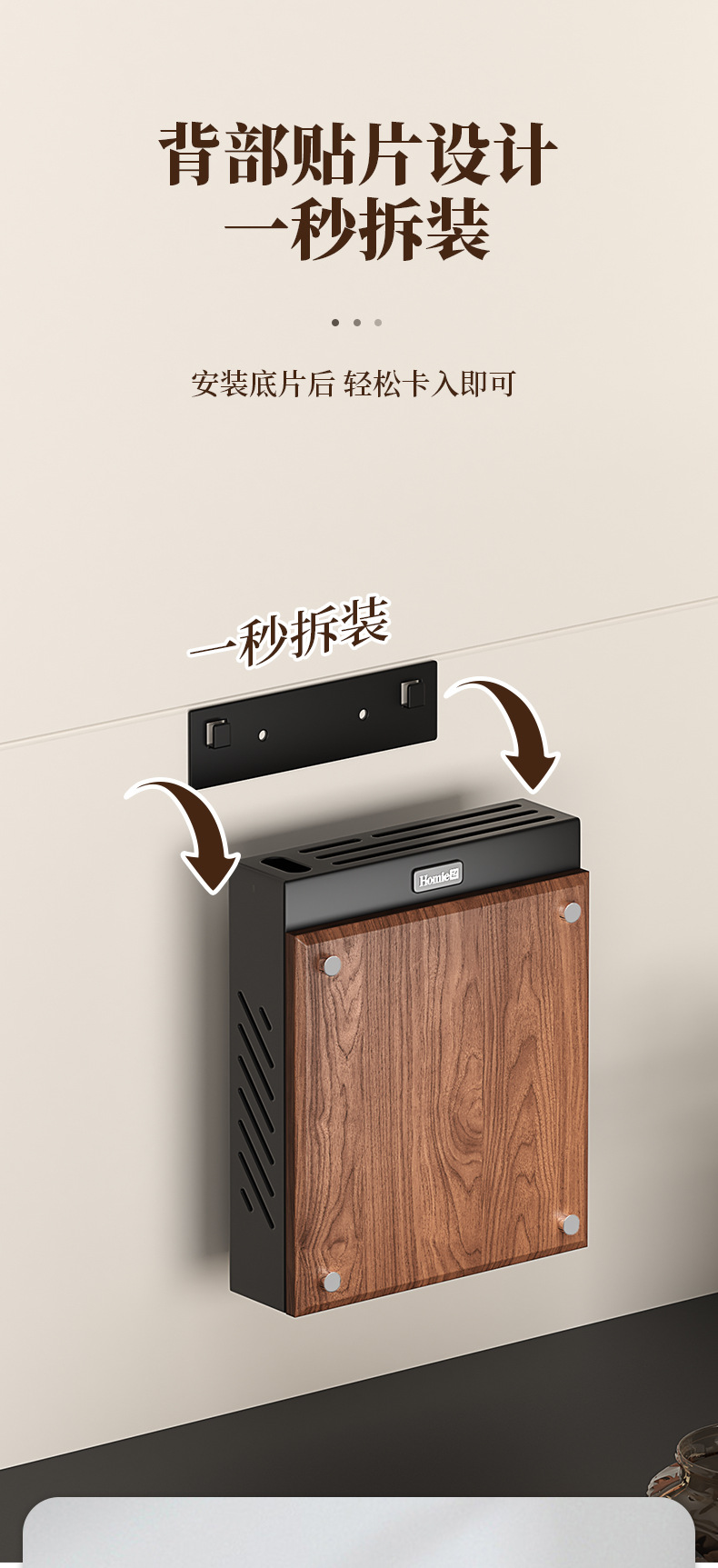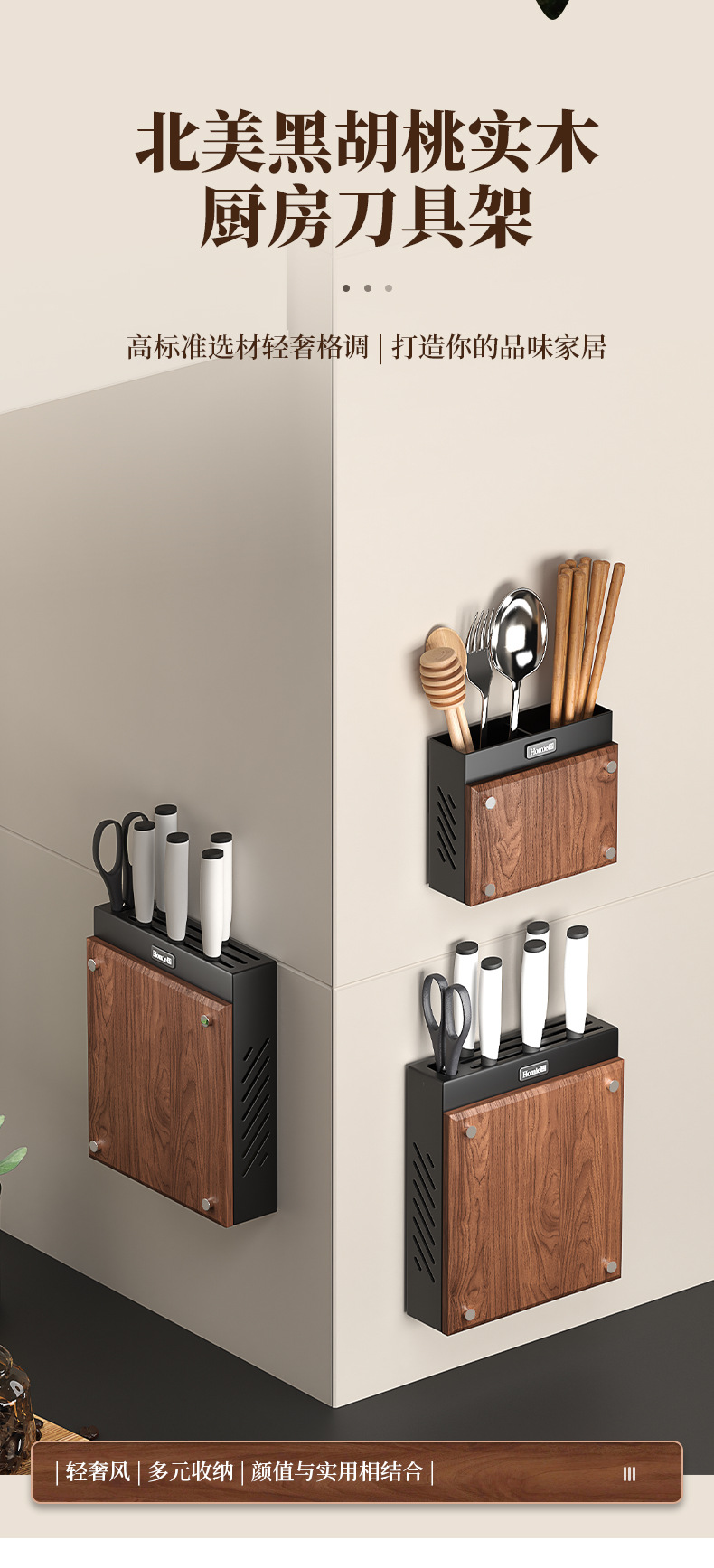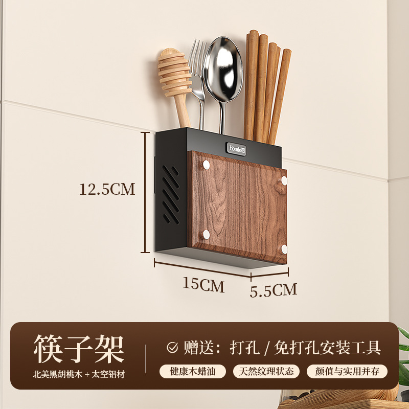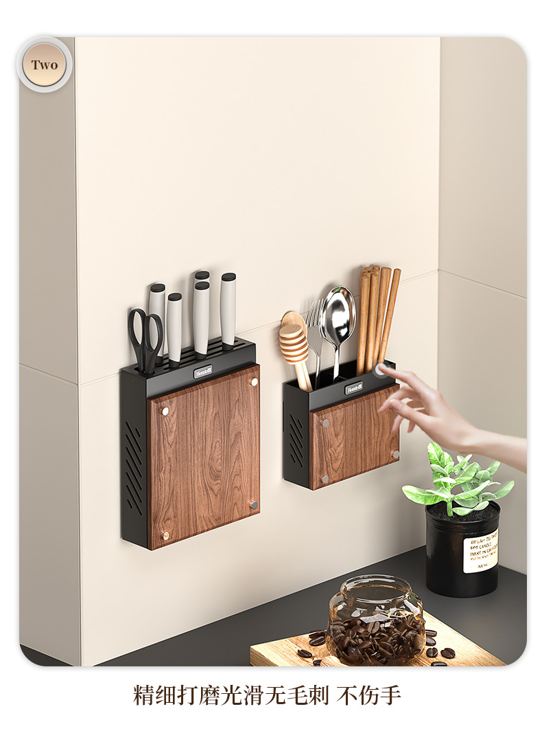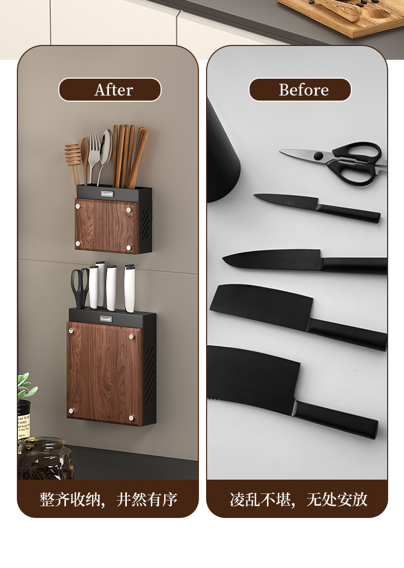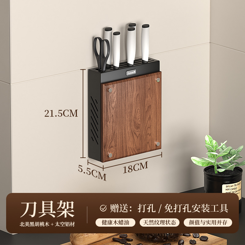 호두나무 칼걸이 주방 가정용 벽걸이 칼걸이 젓가락통 칼걸이 일체형 칼수납선반