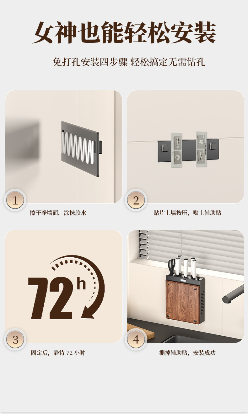 호두나무 칼걸이 주방 가정용 벽걸이 칼걸이 젓가락통 칼걸이 일체형 칼수납선반스토어 가기