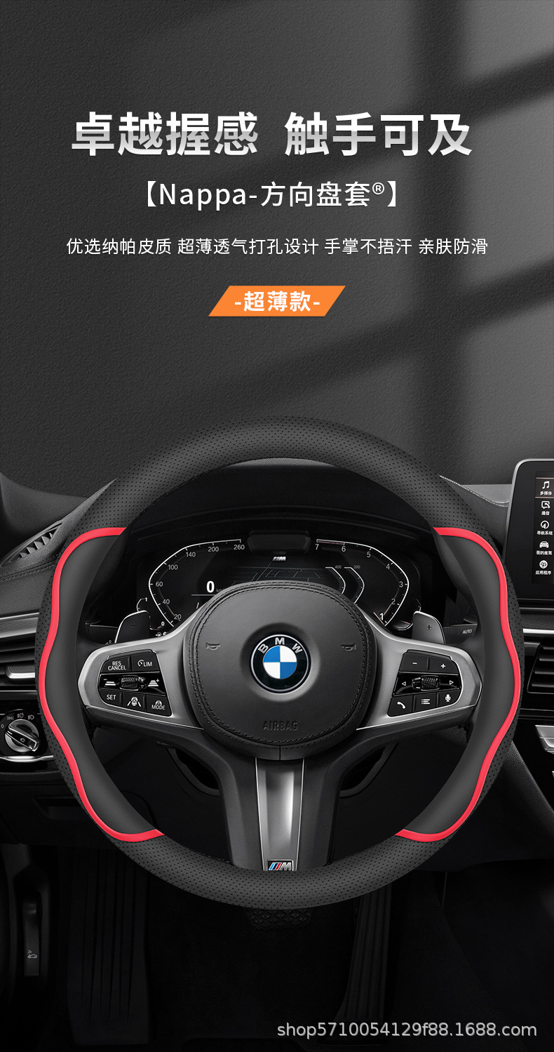 초박형, 느낌이 좋고 사계절 모두 사용 가능한 만능 스티어링 휠 커버, D자형 통기성 남녀공용 자동차 핸들 커버, 더블 D형 미끄럼 방지 및 땀 흡수스토어 가기