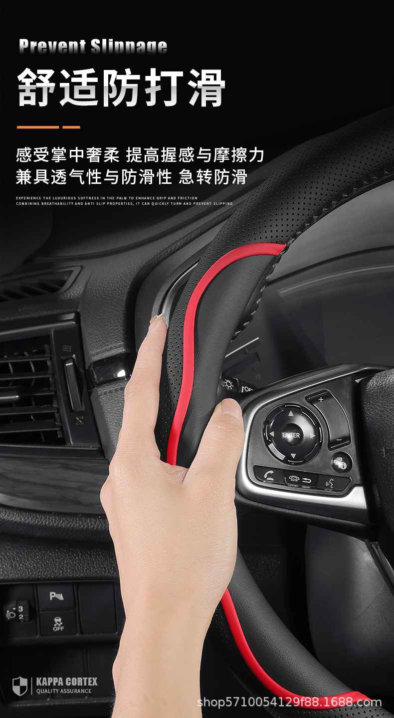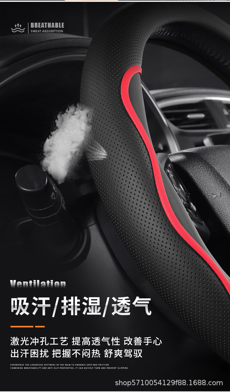 초박형, 느낌이 좋고 사계절 모두 사용 가능한 만능 스티어링 휠 커버, D자형 통기성 남녀공용 자동차 핸들 커버, 더블 D형 미끄럼 방지 및 땀 흡수