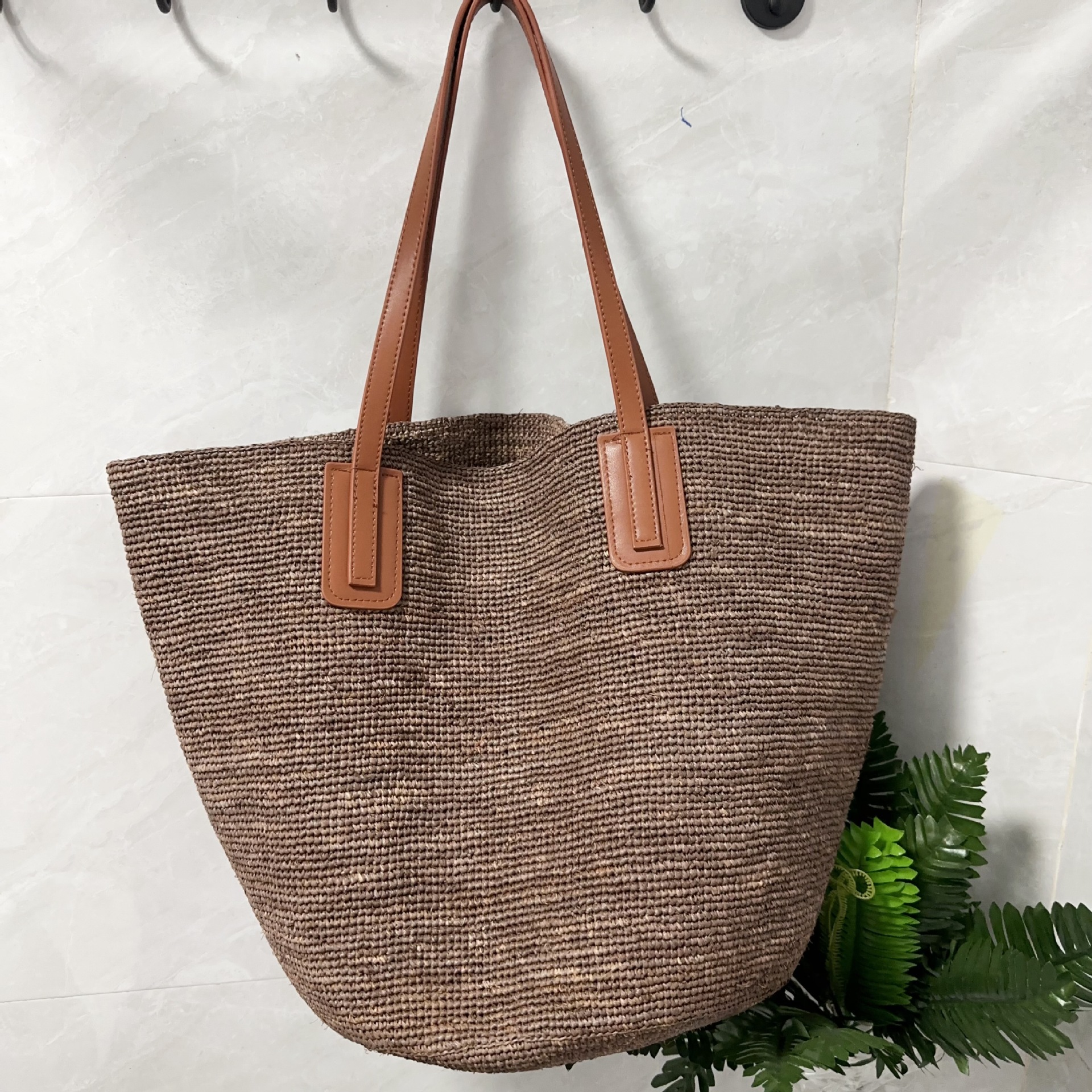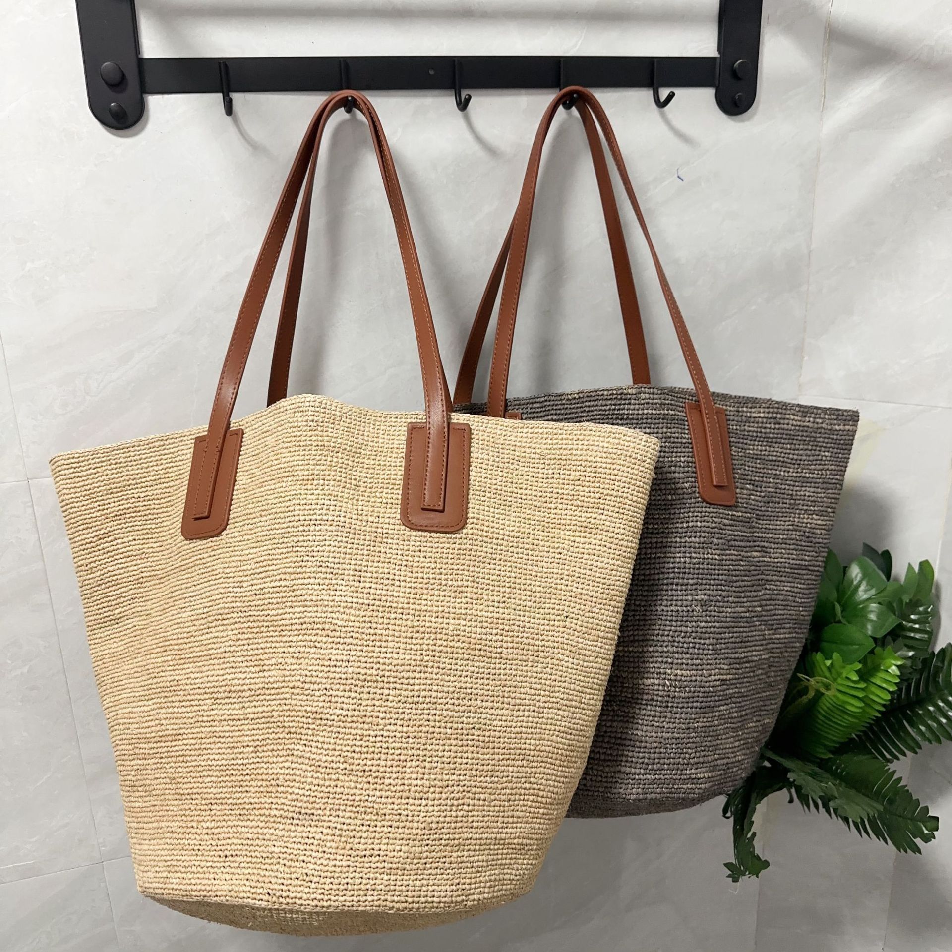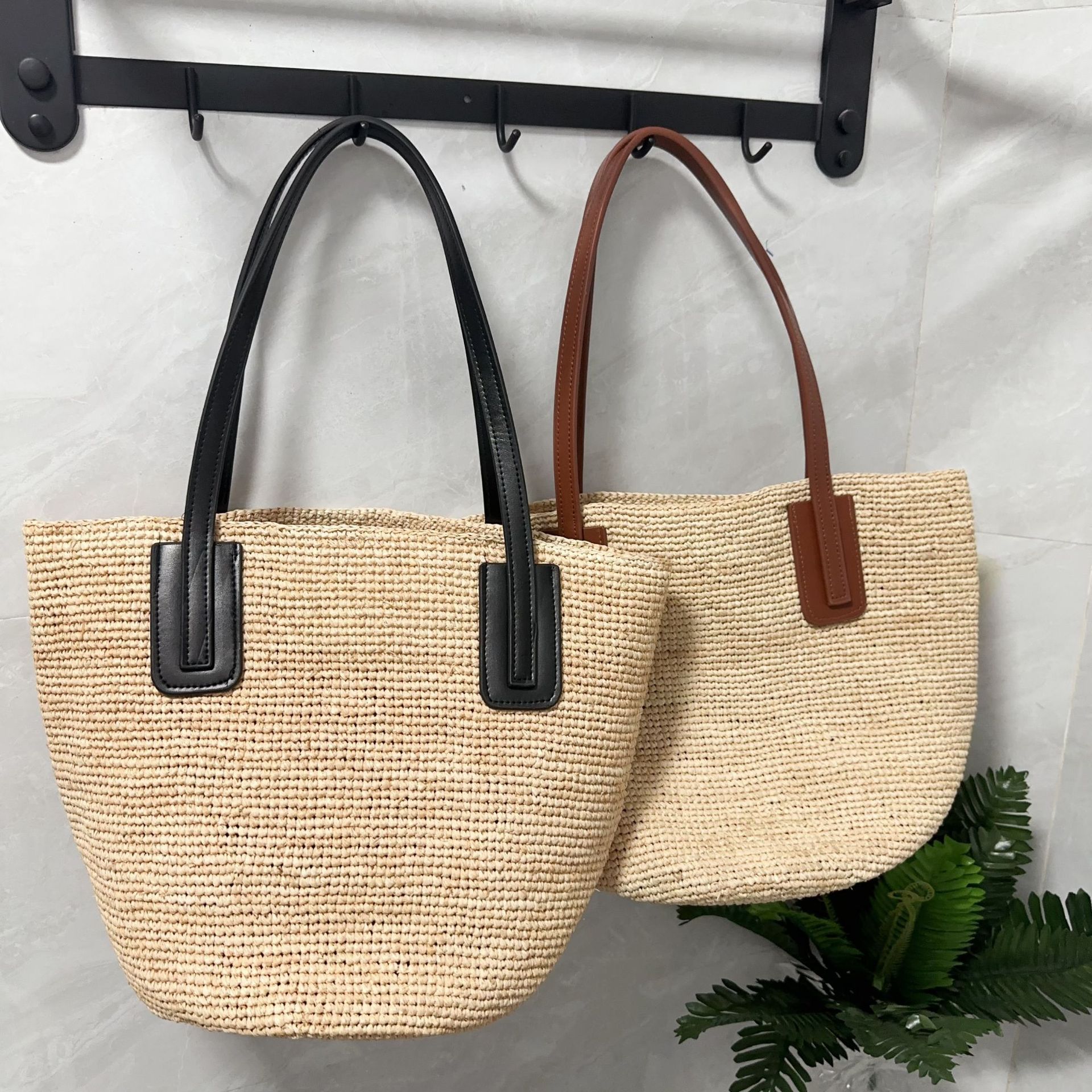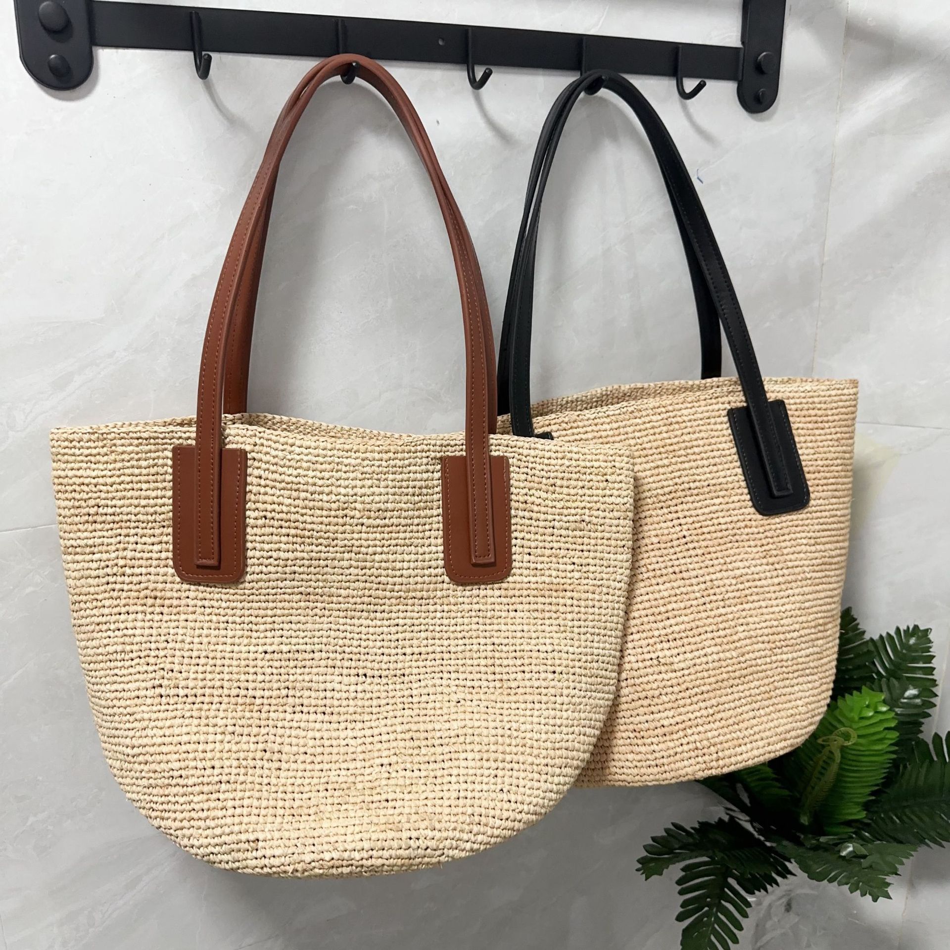 하이 퀄리티 라피트 토트 백 여성 가죽 어깨 스트랩 대용량 짠 가방 손 짠 어깨 가방 비치 백