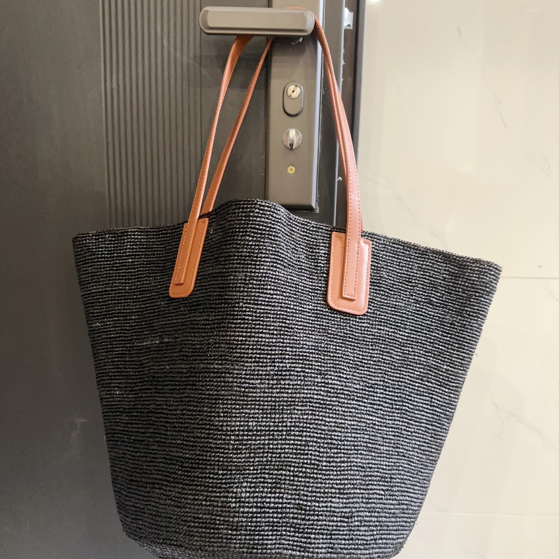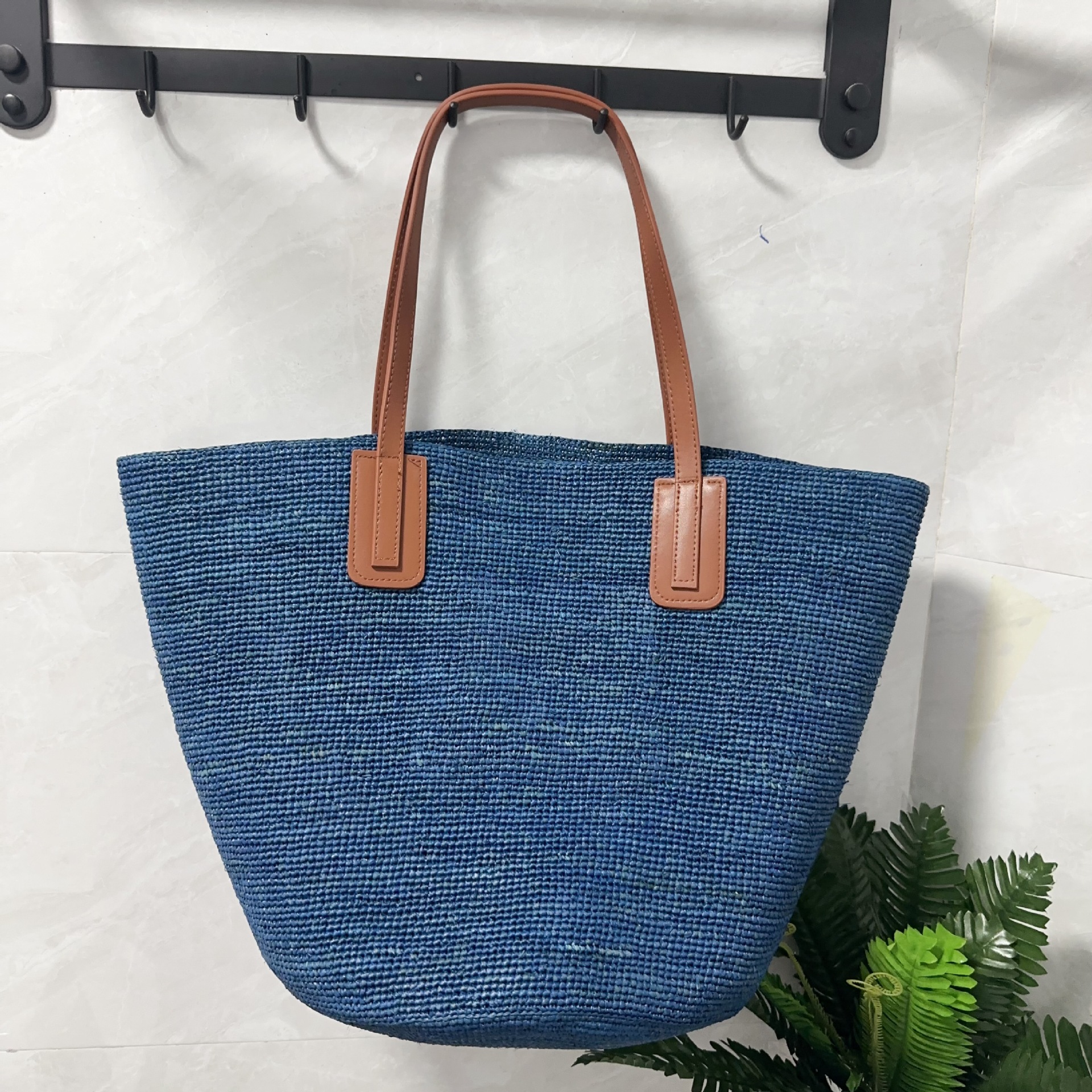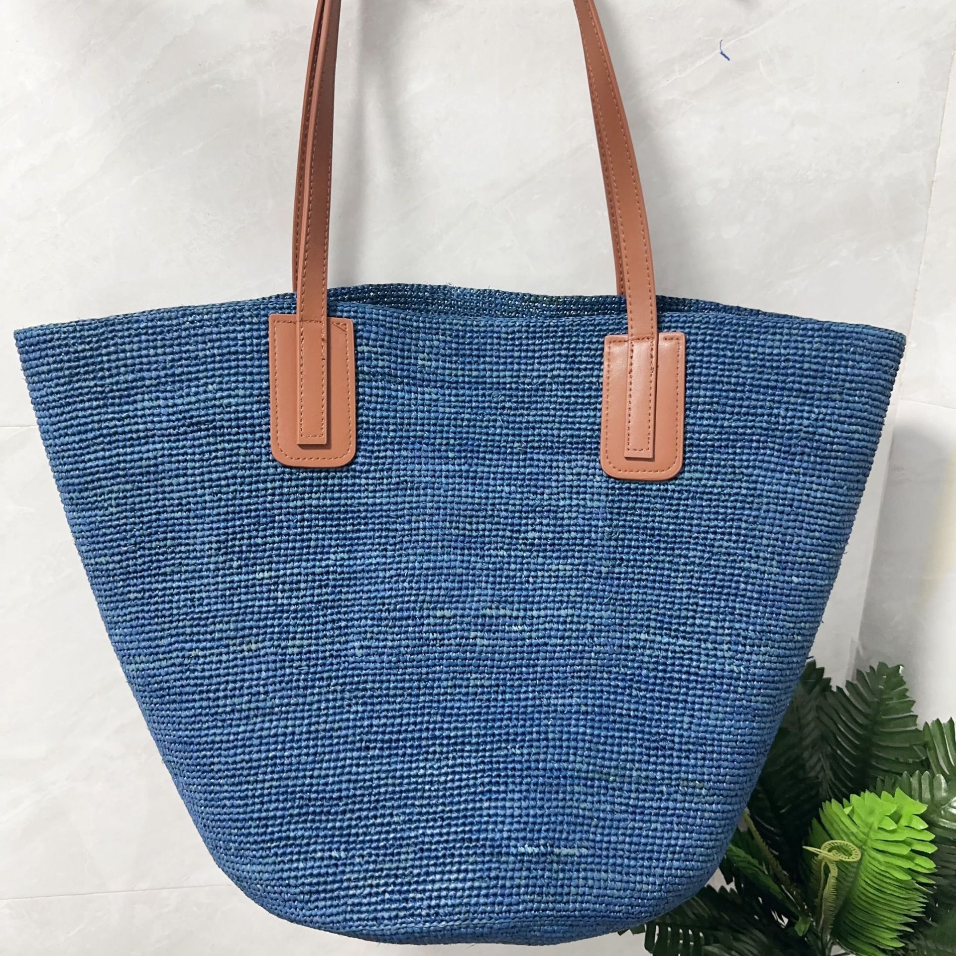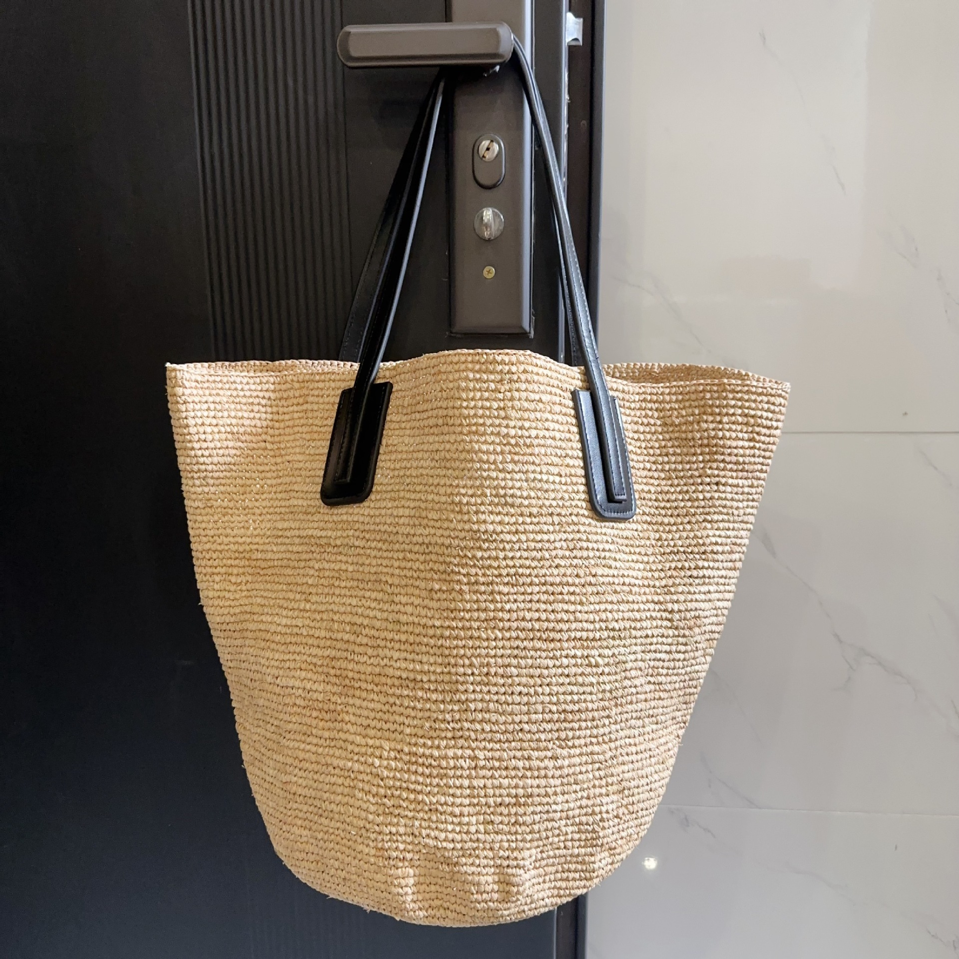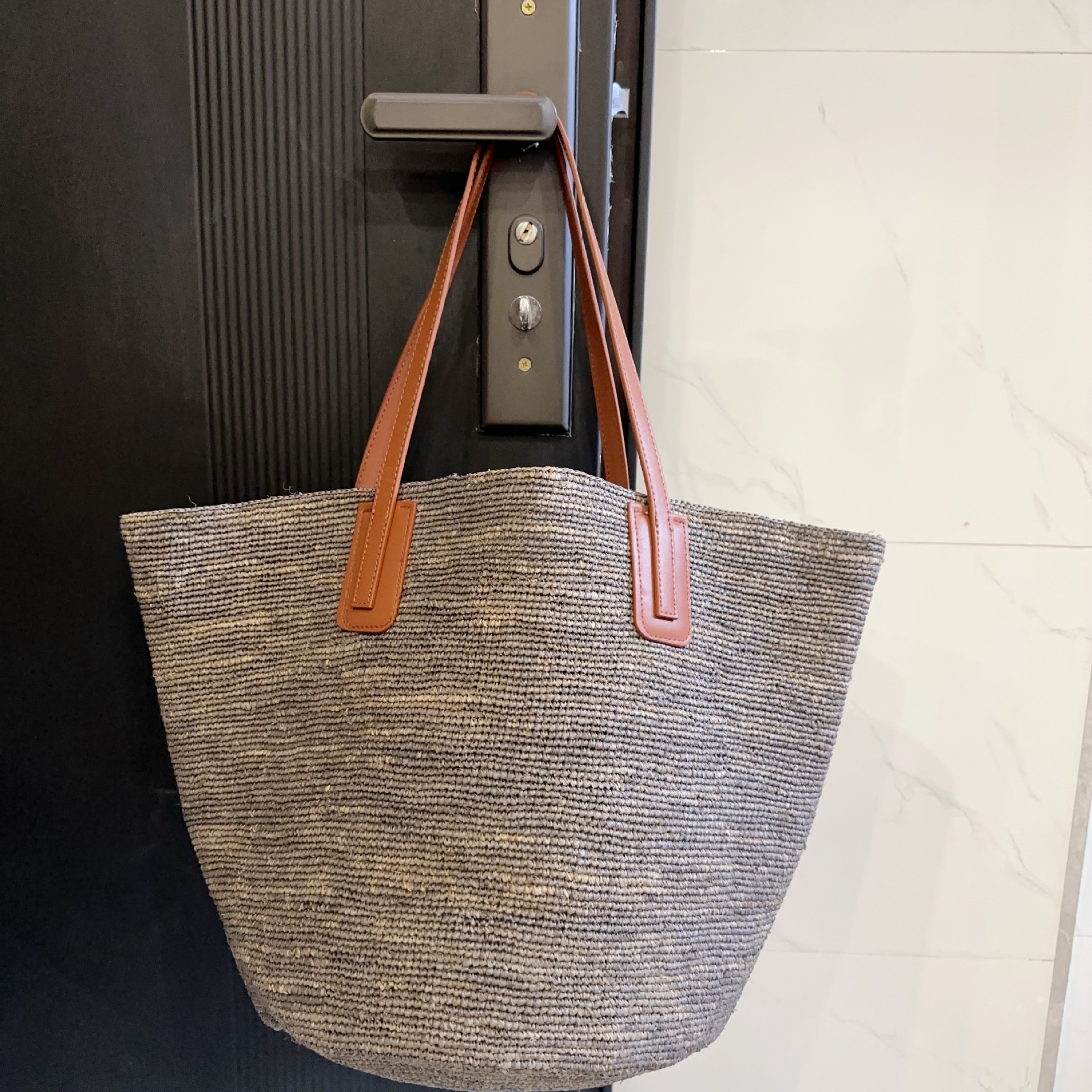 하이 퀄리티 라피트 토트 백 여성 가죽 어깨 스트랩 대용량 짠 가방 손 짠 어깨 가방 비치 백