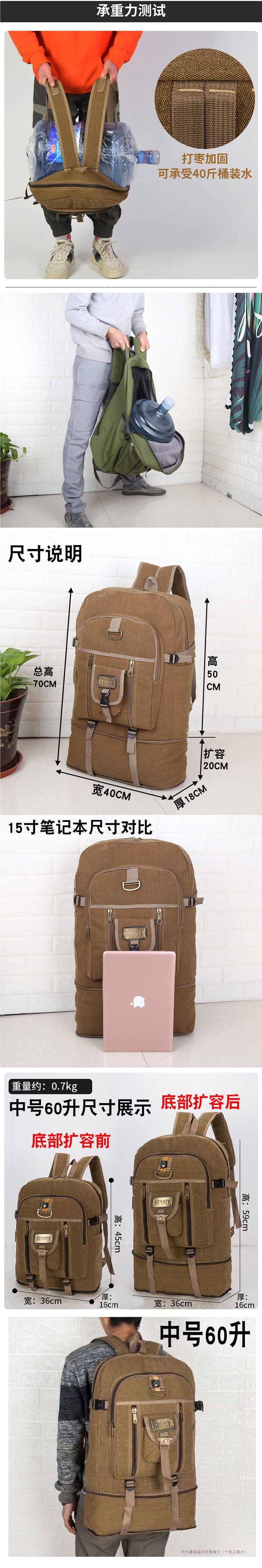 초대형 캔버스 배낭 남성용 확장 가능한 내마모성 등산 가방 대형 배낭 여행 가방 60 리터 여행 가방스토어 가기