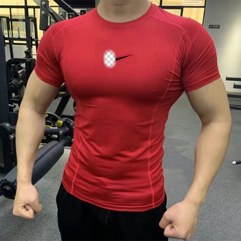 여름 빠른 건조 반팔 남자의 새로운 운동복 남자의 통기성 달리기 피트니스 티셔츠 훈련 높은 탄성 피트니스베이스 옷스토어 가기