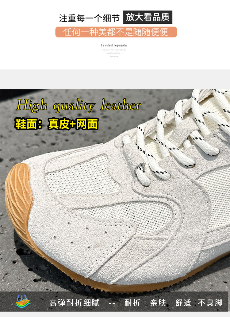 여성을위한 정품 가죽 포레스트 검프 신발 2025 여름 새로운 다목적 경량 메쉬 통기성 흰색 신발 스포츠 및 레저 여성 신발