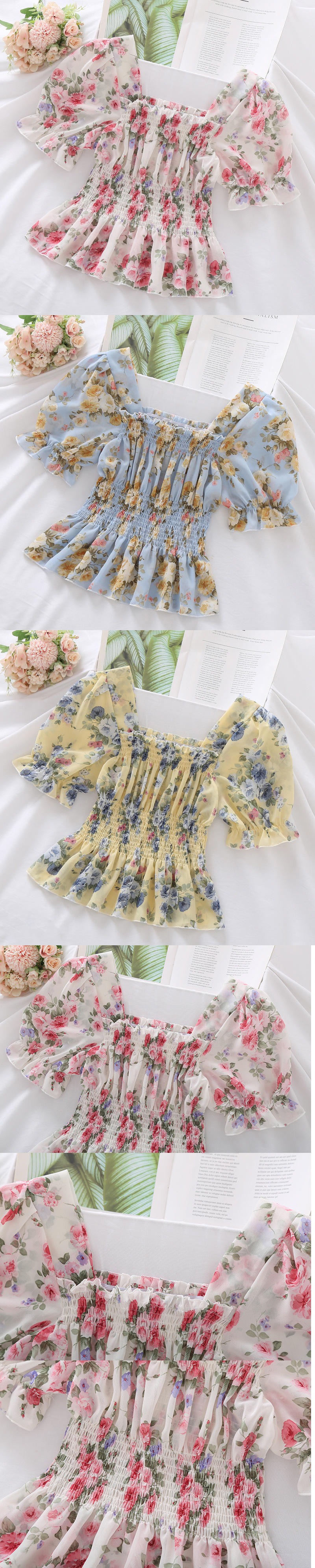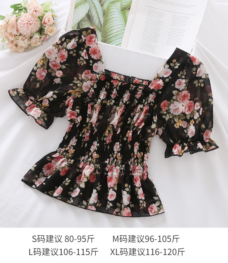 프랑스 달콤한 반팔 쉬폰 셔츠 2023 새로운 여성 슬림핏 슬리밍 버블 랜턴 슬리브 쇼트 탑 여성용 여름스토어 가기