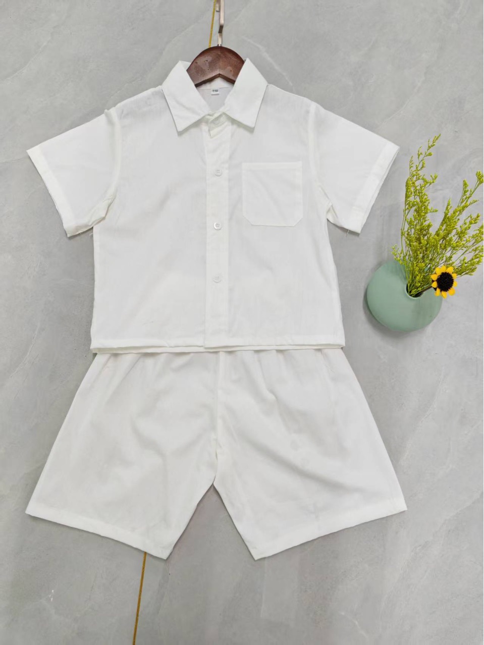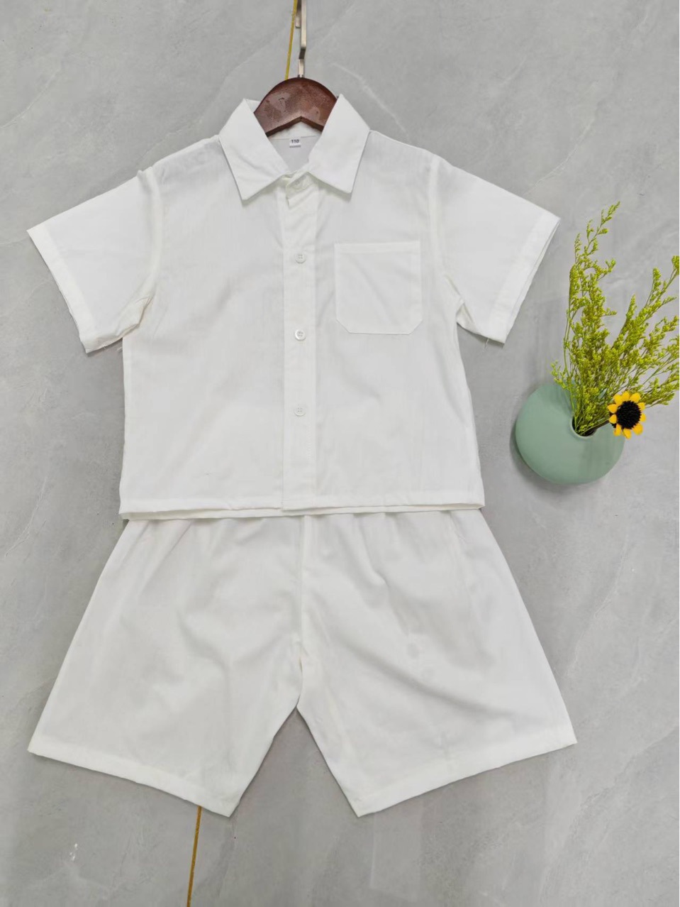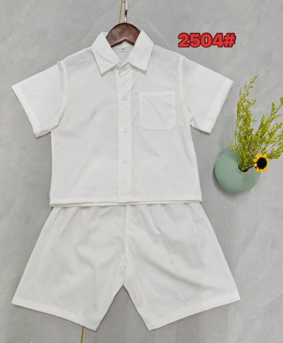소년을위한 새로운 흰색 셔츠 세트 소년 여름면 짧은 소매 2025 년 새로운 아기 여름 세트