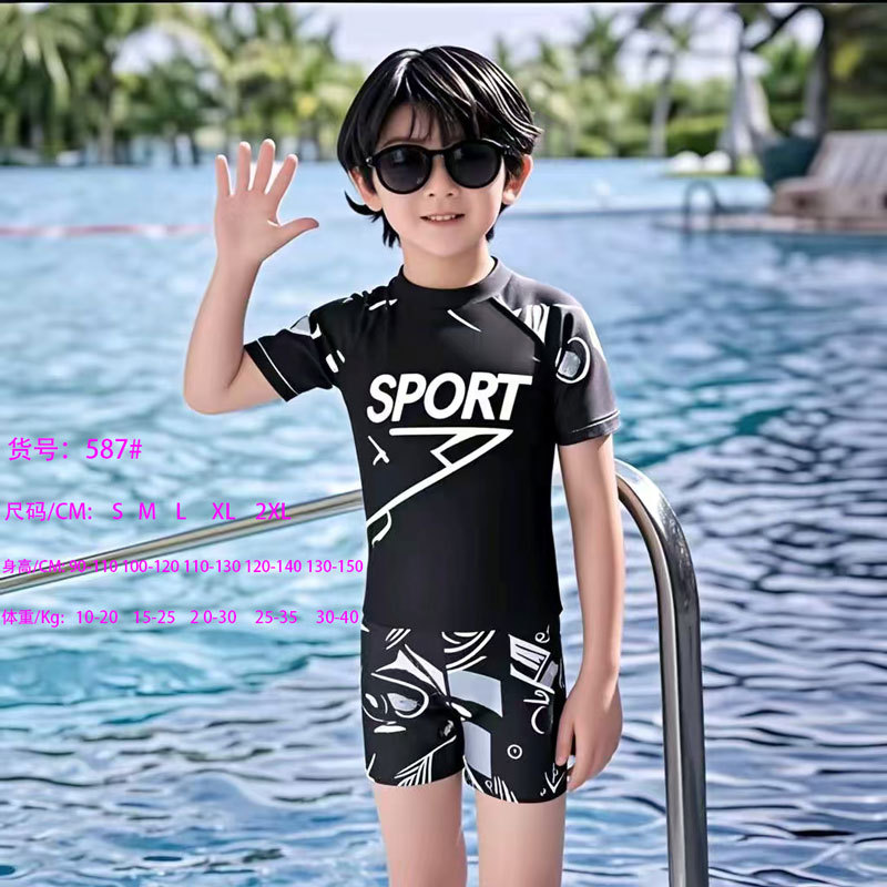 도매 여름 새로운 스타일 중대형 어린이 스플릿 수영복 온천 해변 어린이 정장 소년 속건성 3 피스 수영 트렁크
