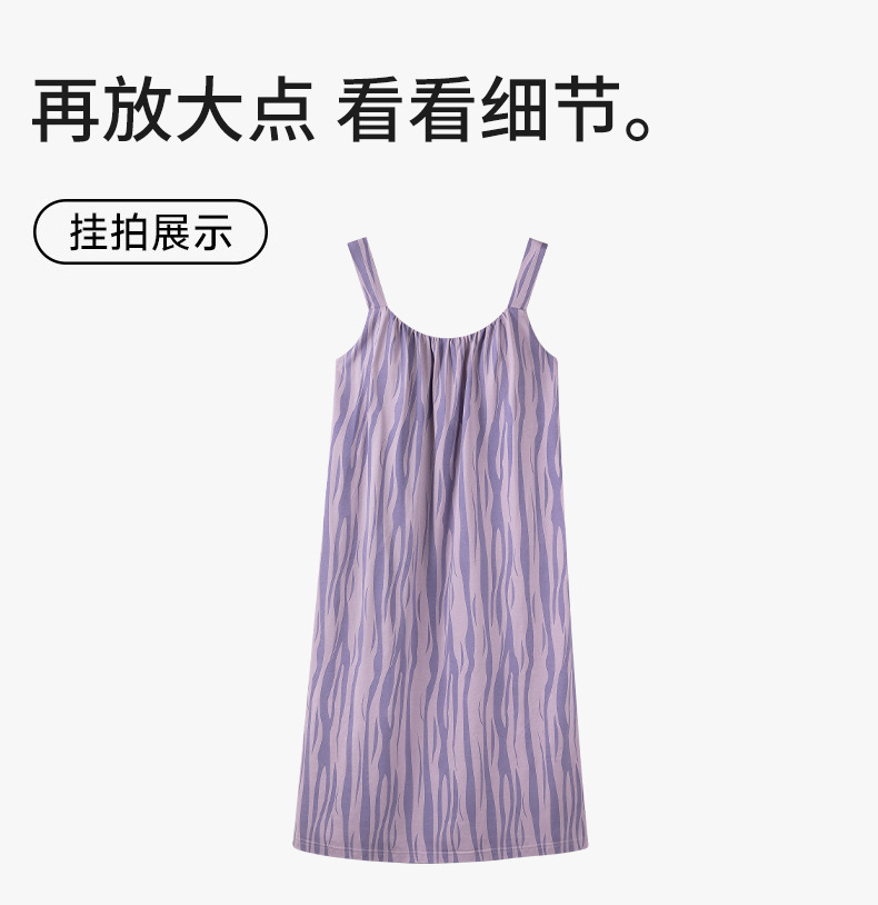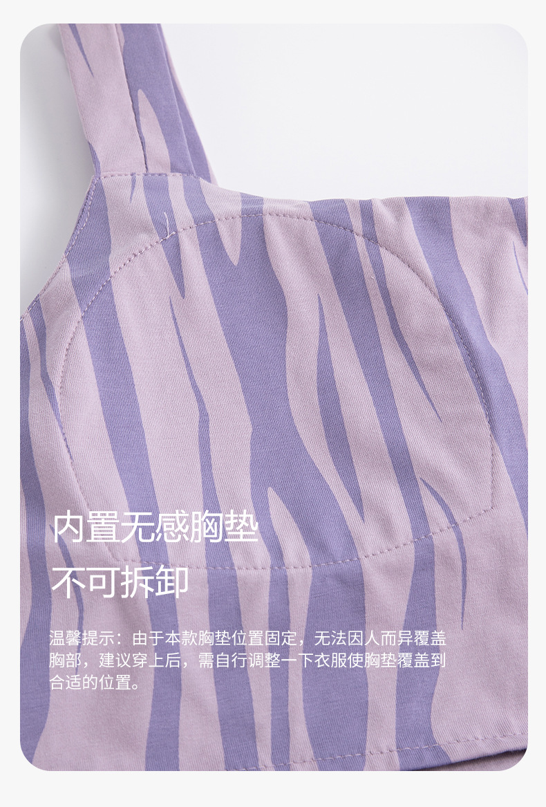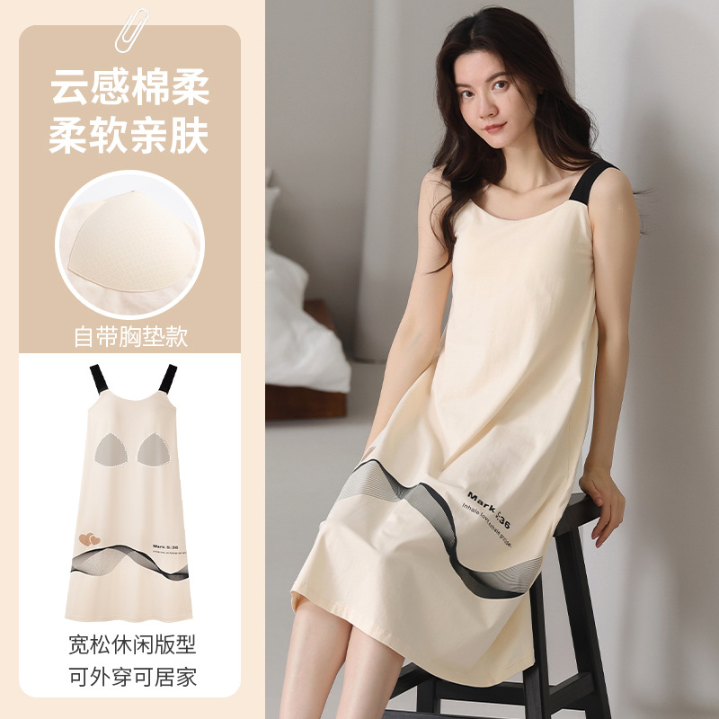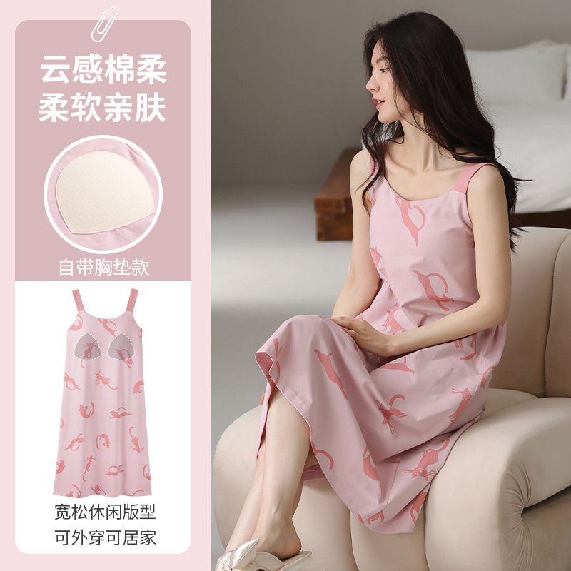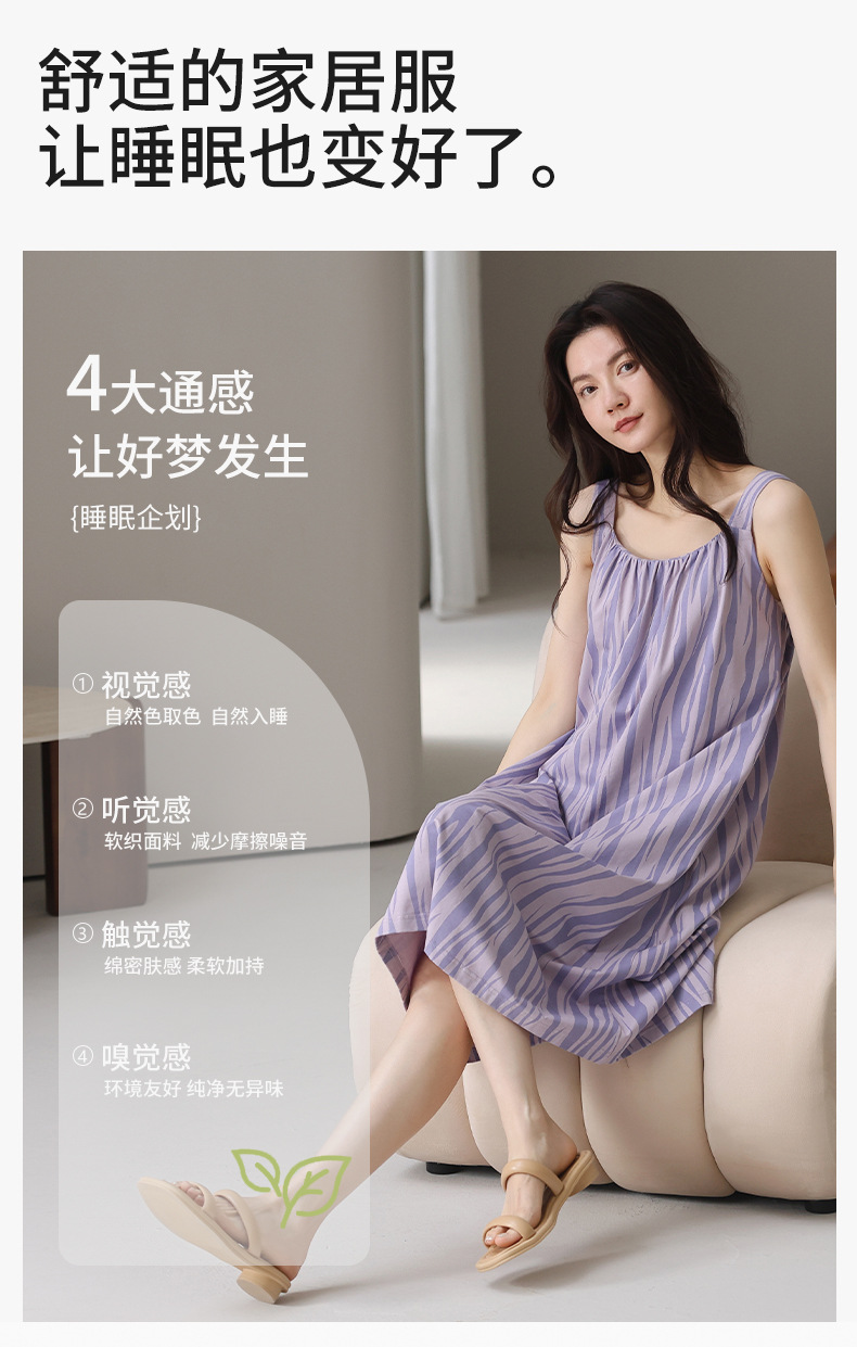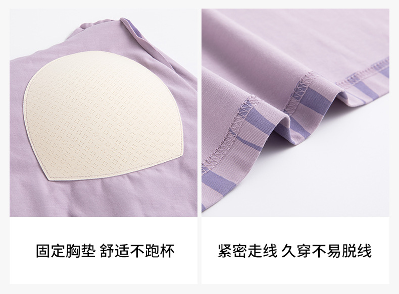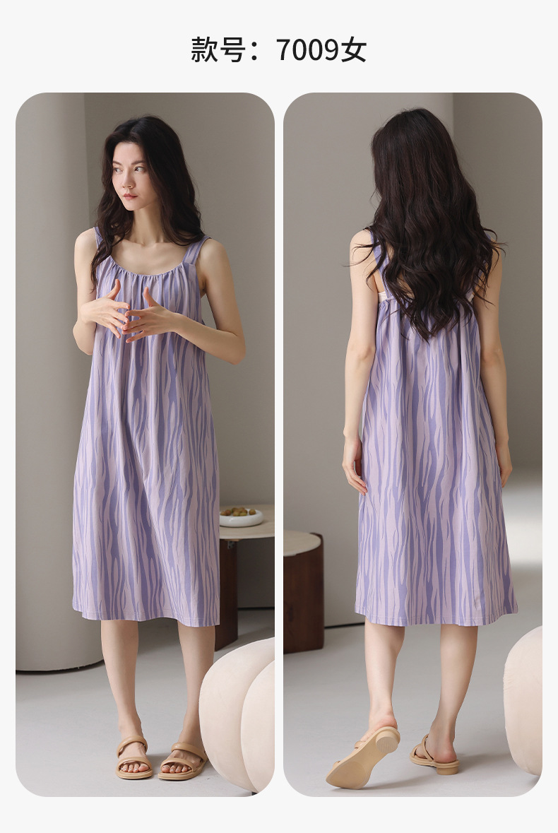여성용 여름 순면 2025 서스펜더 스트라이프 보라색 얇은 스타일의 가슴 패드가 있는 잠옷은 고급 홈웨어 외부에 착용할 수 있습니다.스토어 가기