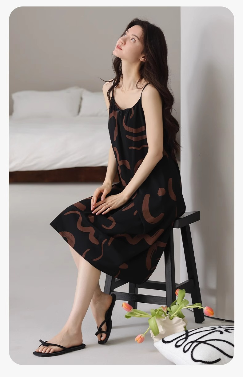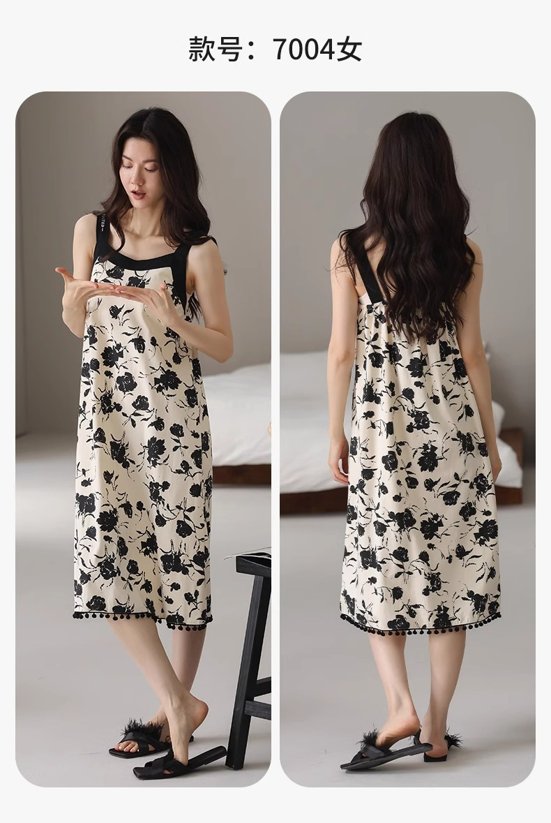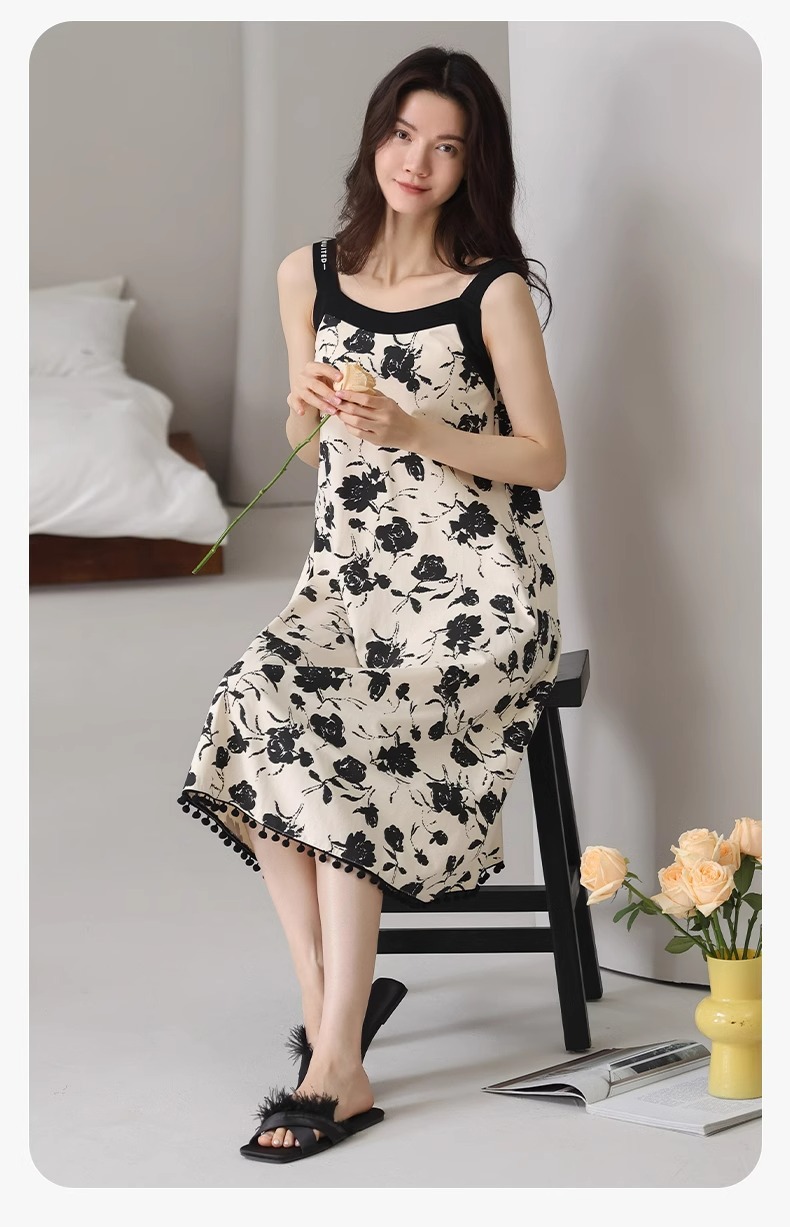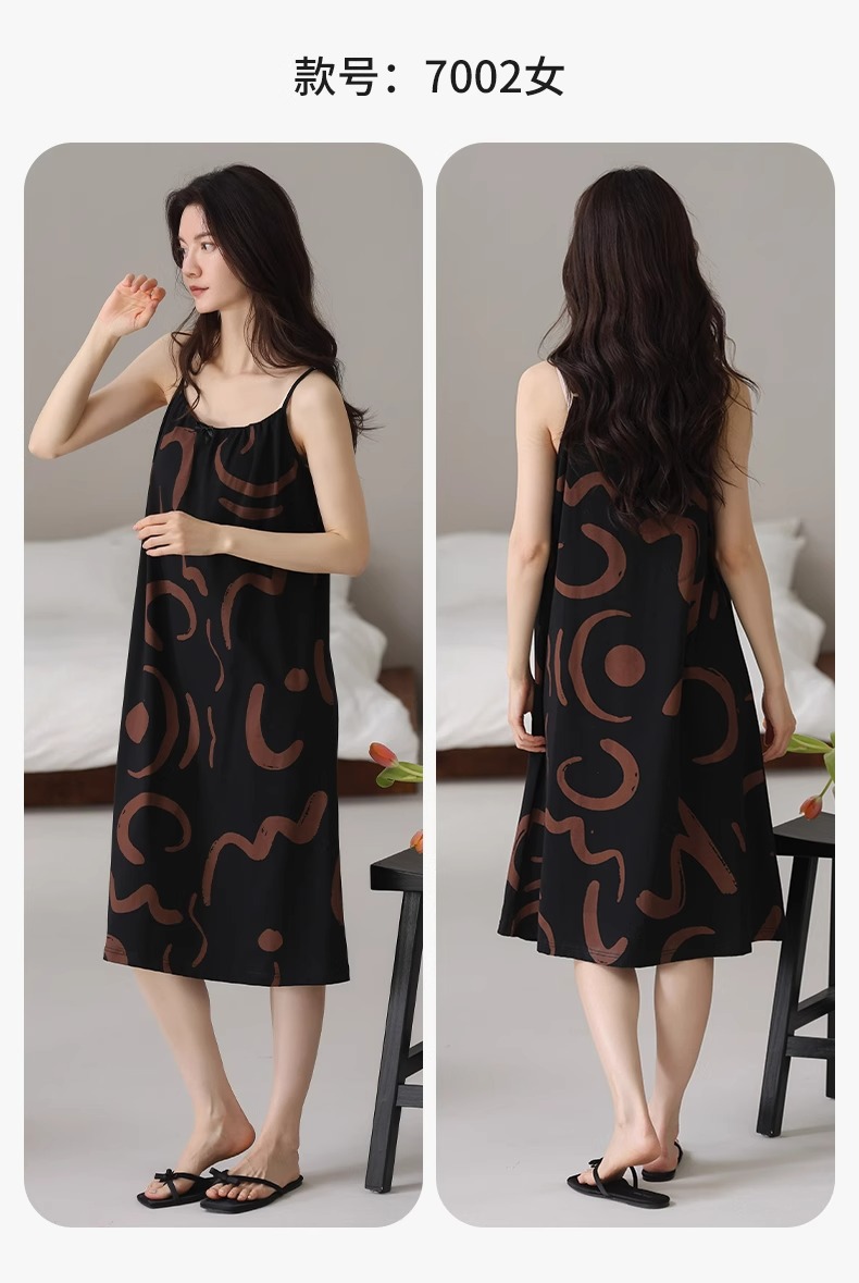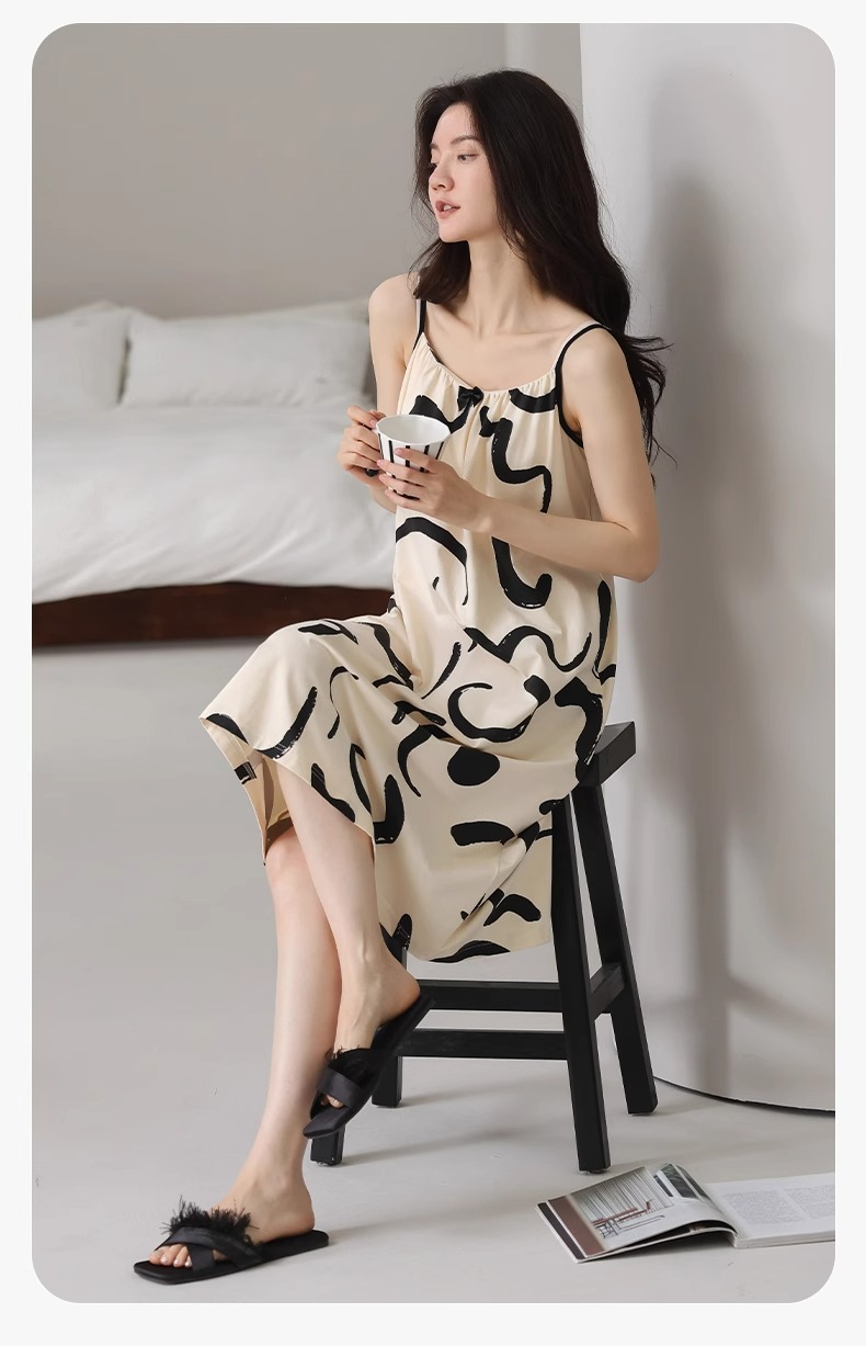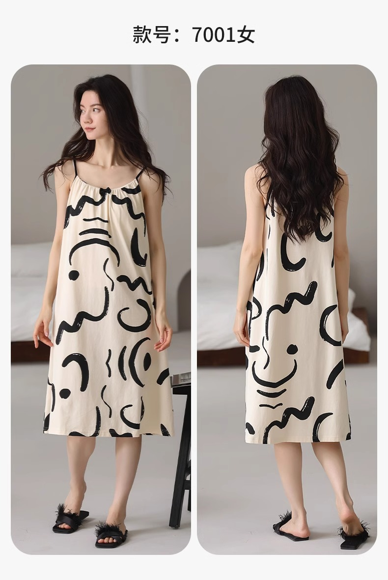 여성용 여름 순면 2025 서스펜더 스트라이프 보라색 얇은 스타일의 가슴 패드가 있는 잠옷은 고급 홈웨어 외부에 착용할 수 있습니다.스토어 가기