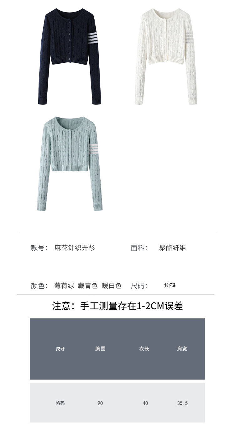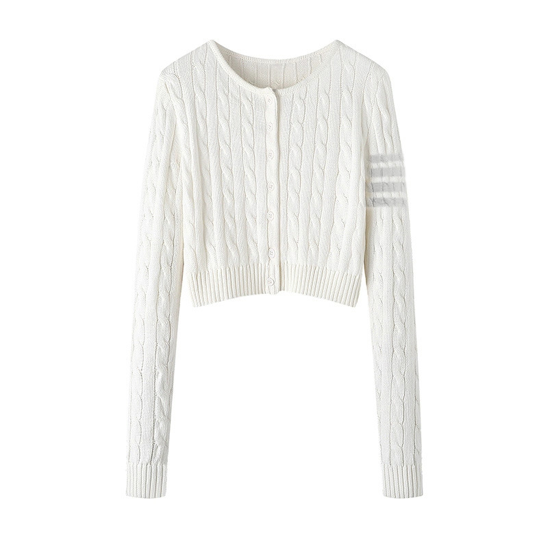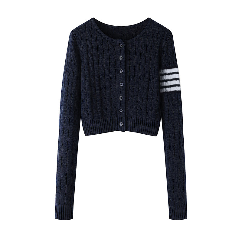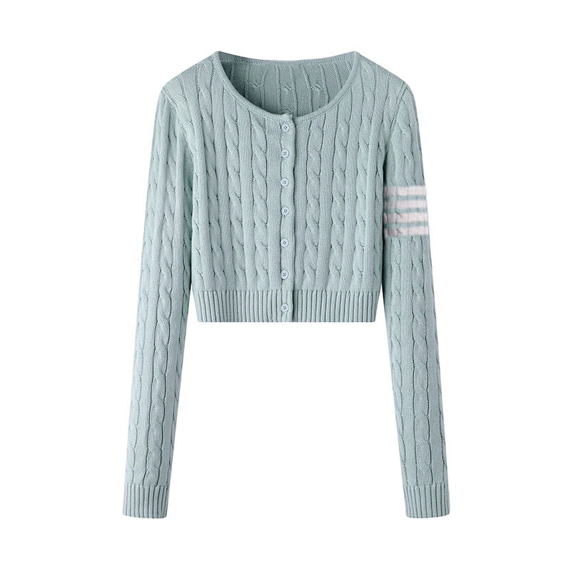 TB 봄과 가을 새로운 미국식 라운드 넥 트위스트 긴팔 니트 카디건 슬리밍 핫 소녀 짧은 여성 탑 다용도 재킷스토어 가기