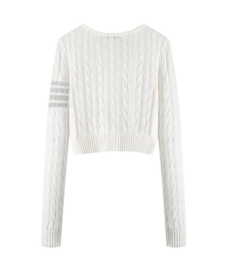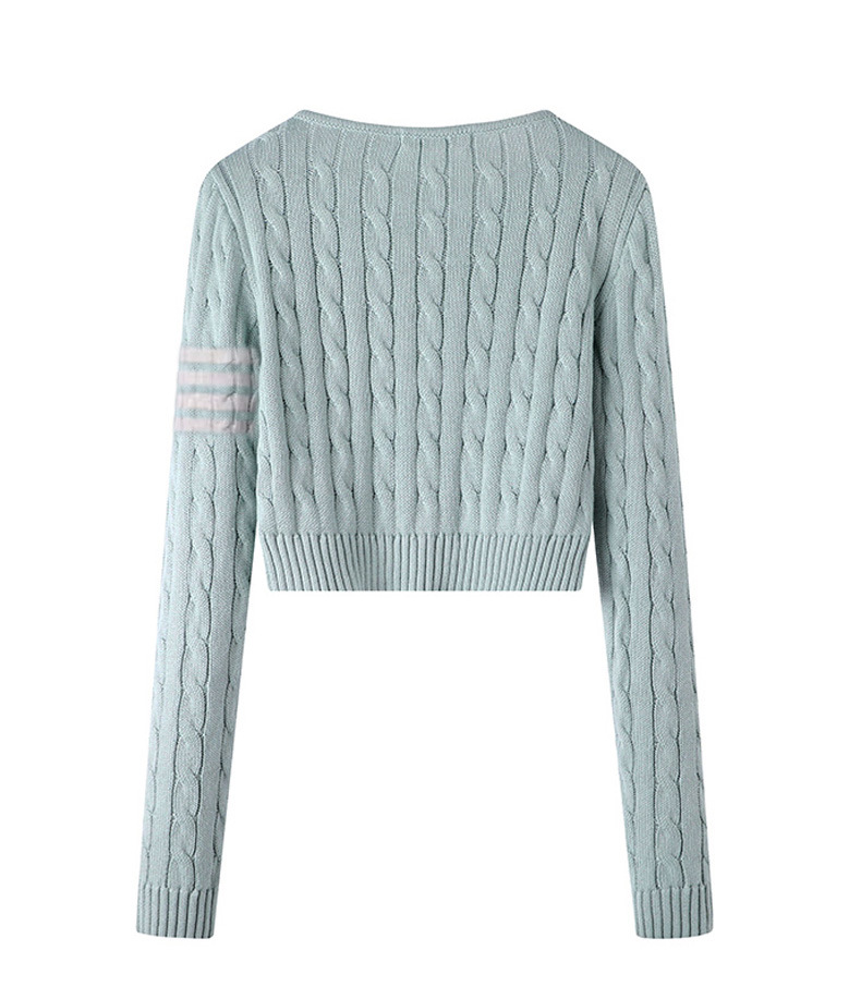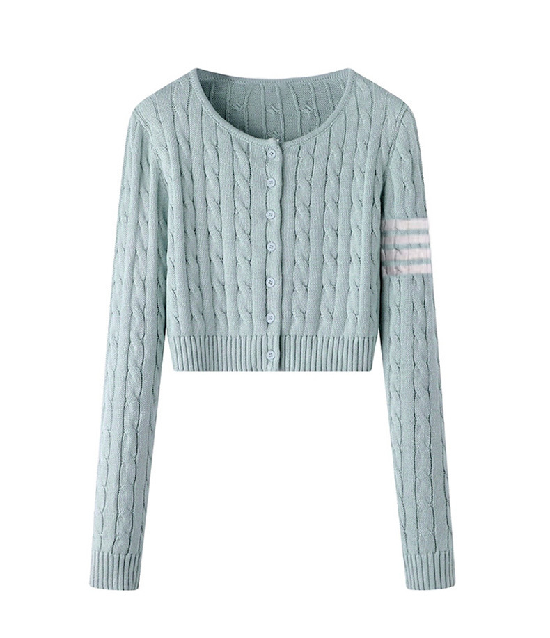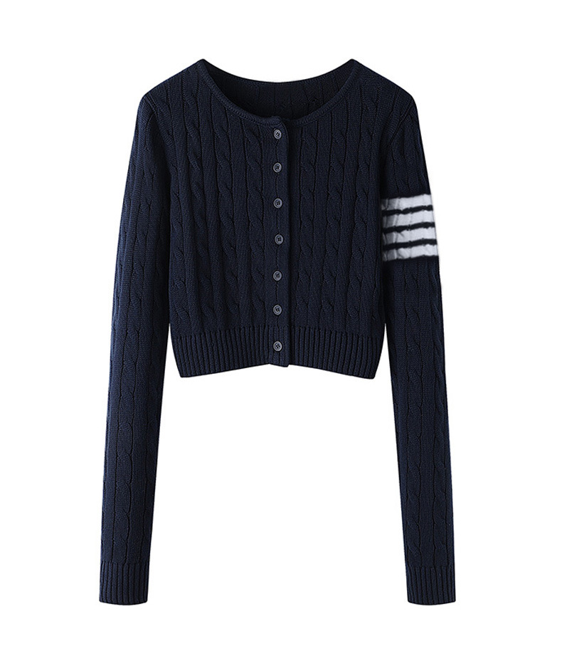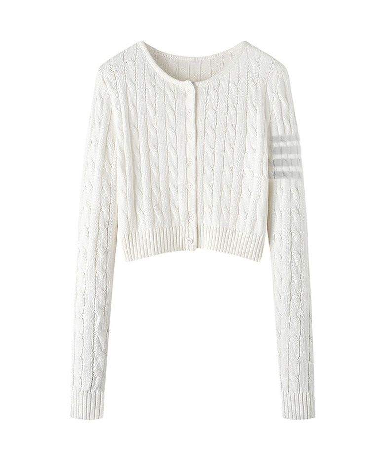 TB 봄과 가을 새로운 미국식 라운드 넥 트위스트 긴팔 니트 카디건 슬리밍 핫 소녀 짧은 여성 탑 다용도 재킷스토어 가기