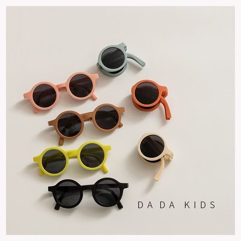 접이식 어린이 선글라스, 여아용 심플 차양 안경, 남아용 아기용 원형 프레임 자외선 차단 선글라스, 트렌디한 어린이용 자외선 차단 안경