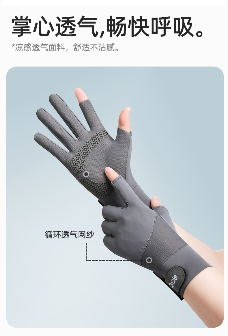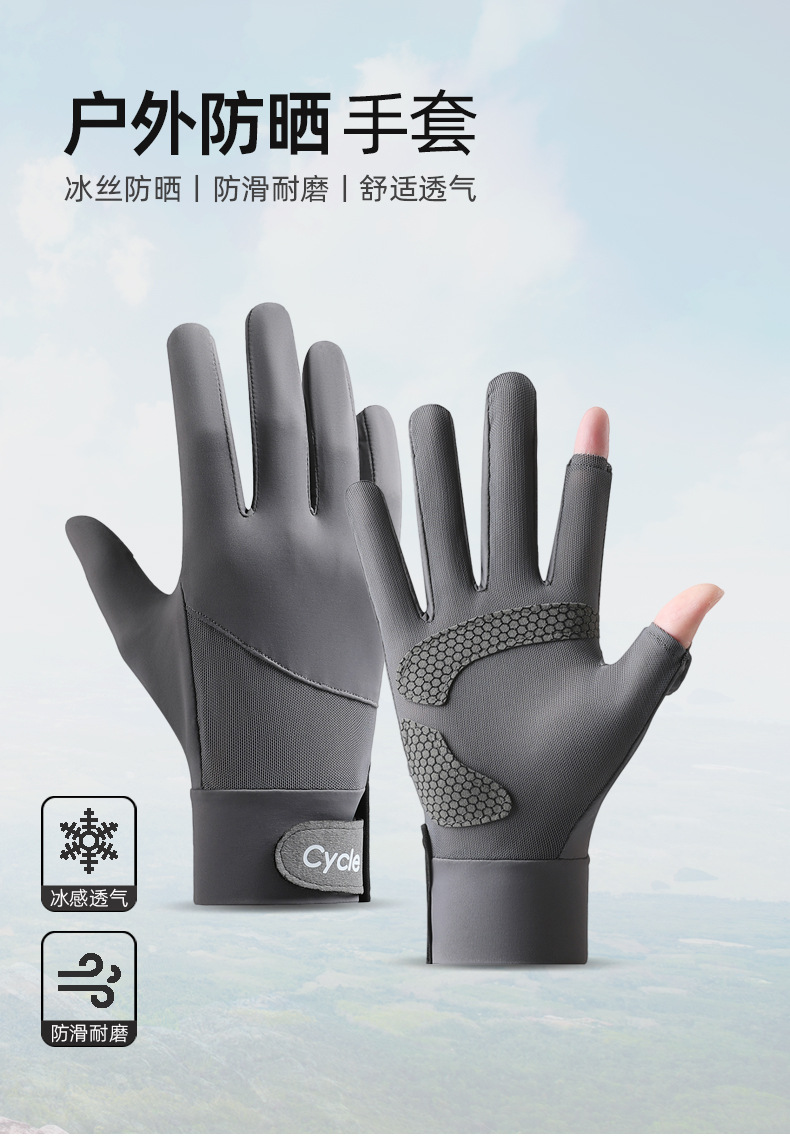 여름철 남성용 자외선 차단 장갑, 야외 사이클링, 낚시, 두 손가락 운전, 미끄럼 방지 터치 스크린, 자외선 차단 등산 장갑스토어 가기