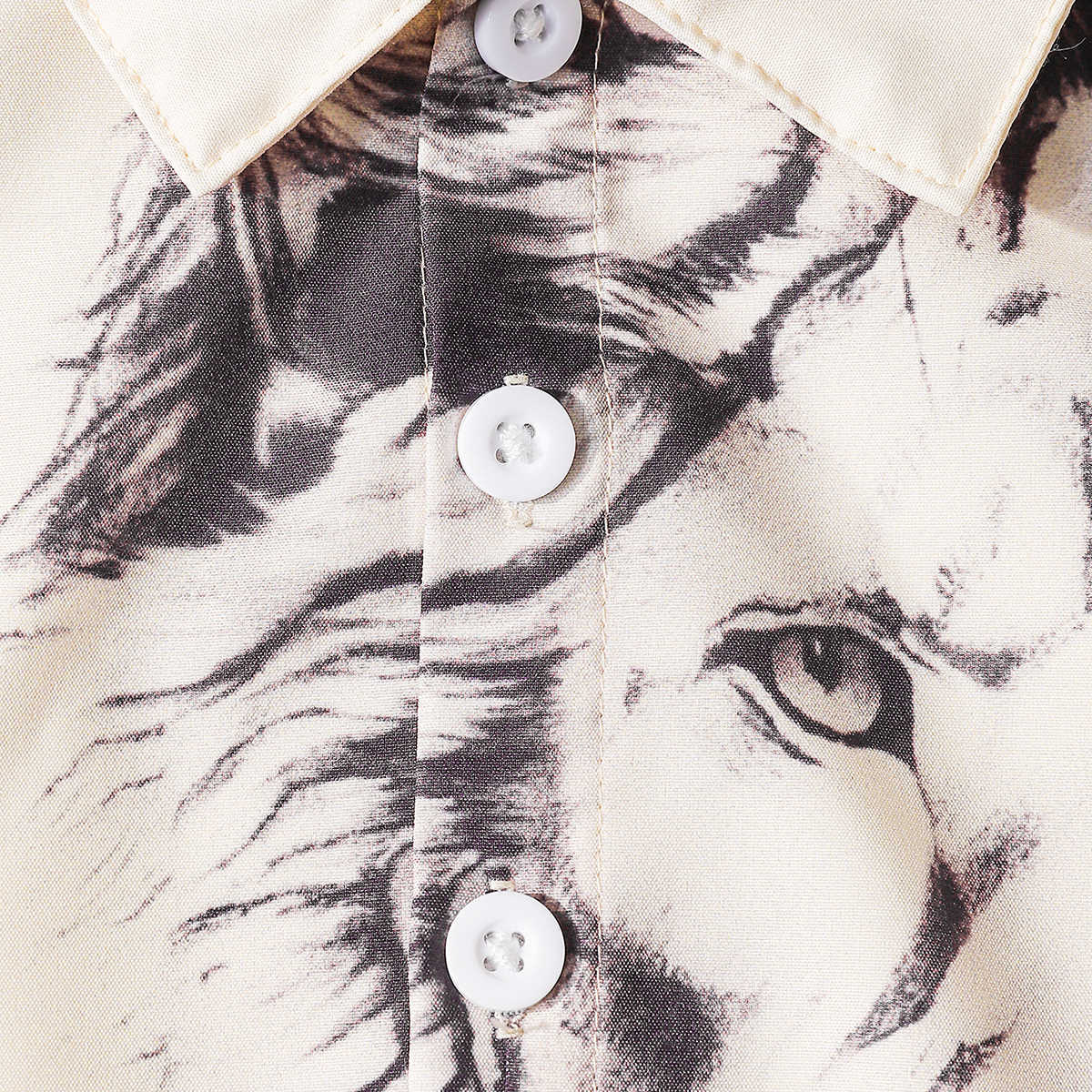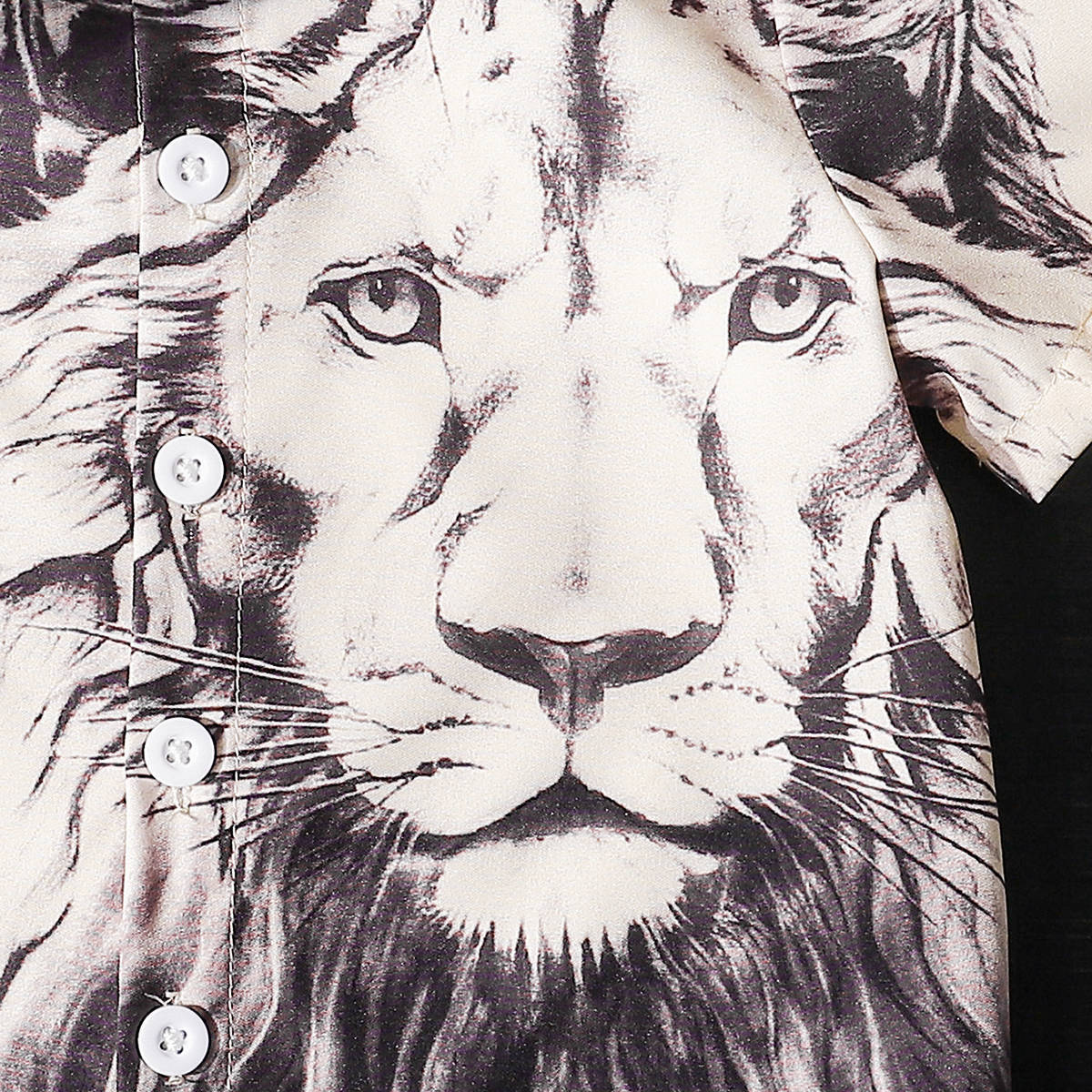 2025 유럽과 미국 대외 무역 소년 사자 패턴 3D 디지털 인쇄 느슨한 유행 반팔 옷깃 셔츠 도매