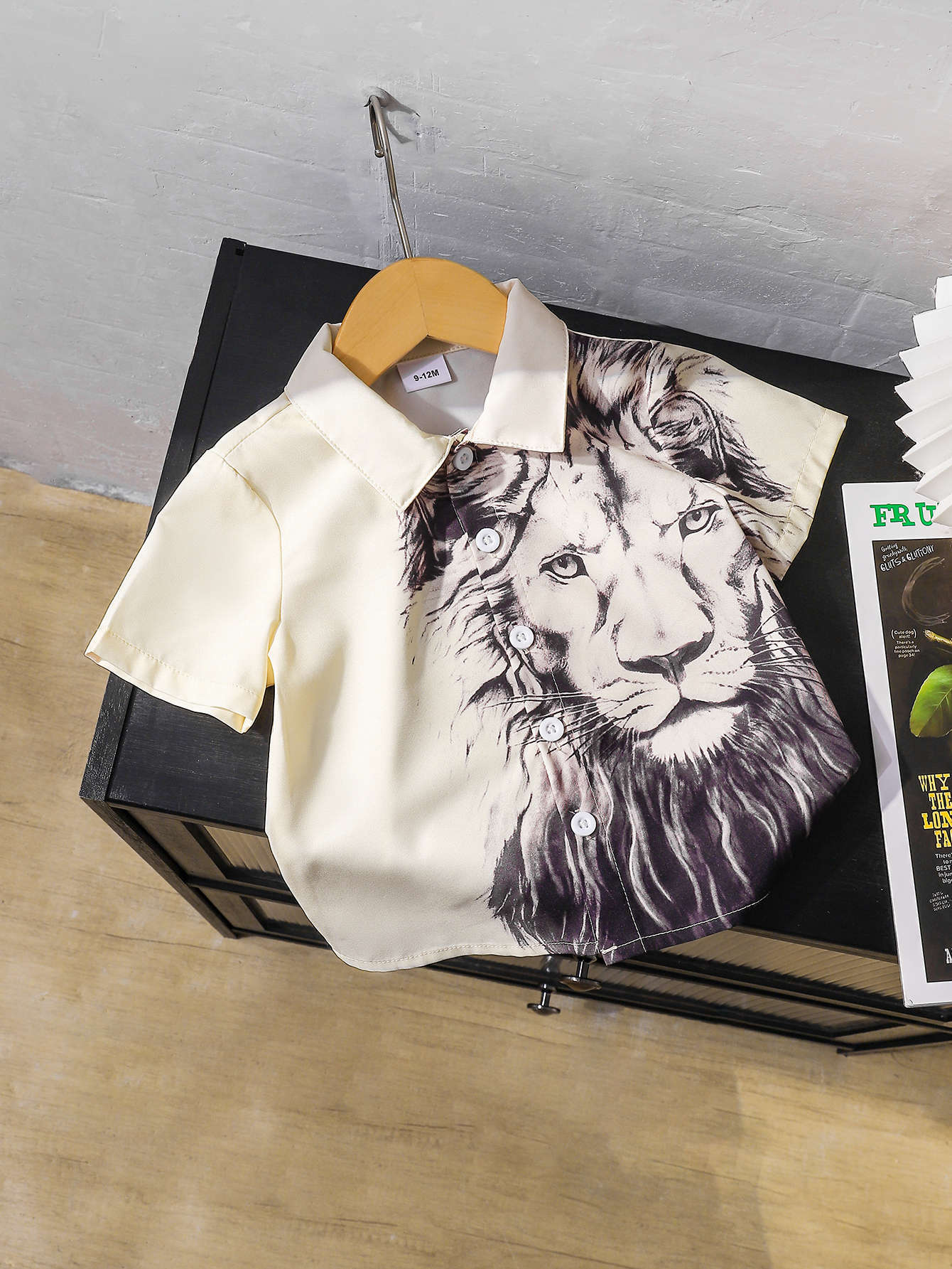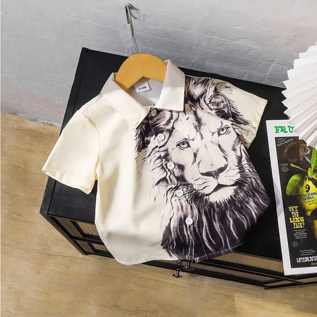 2025 유럽과 미국 대외 무역 소년 사자 패턴 3D 디지털 인쇄 느슨한 유행 반팔 옷깃 셔츠 도매스토어 가기