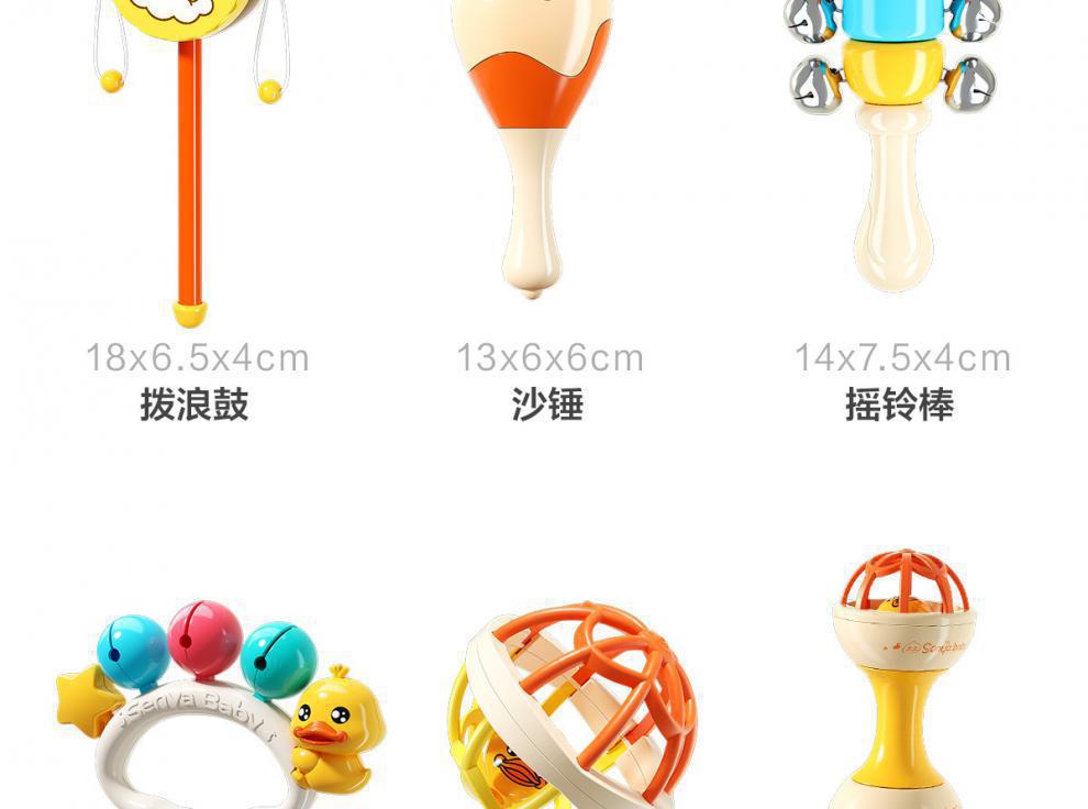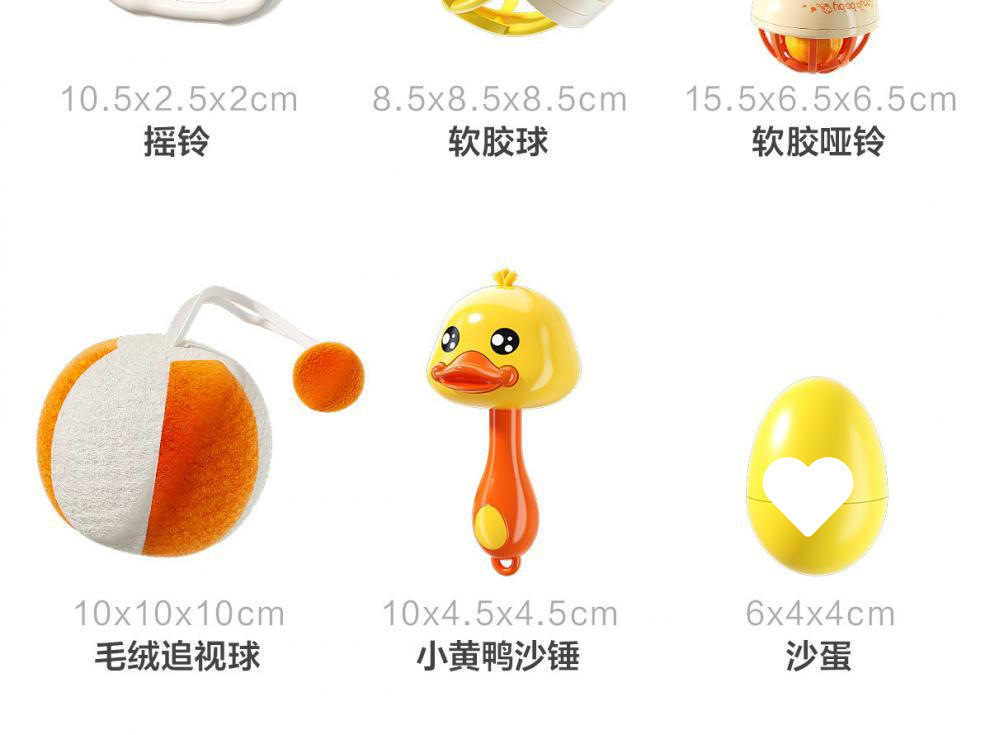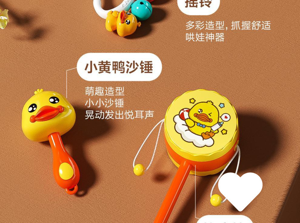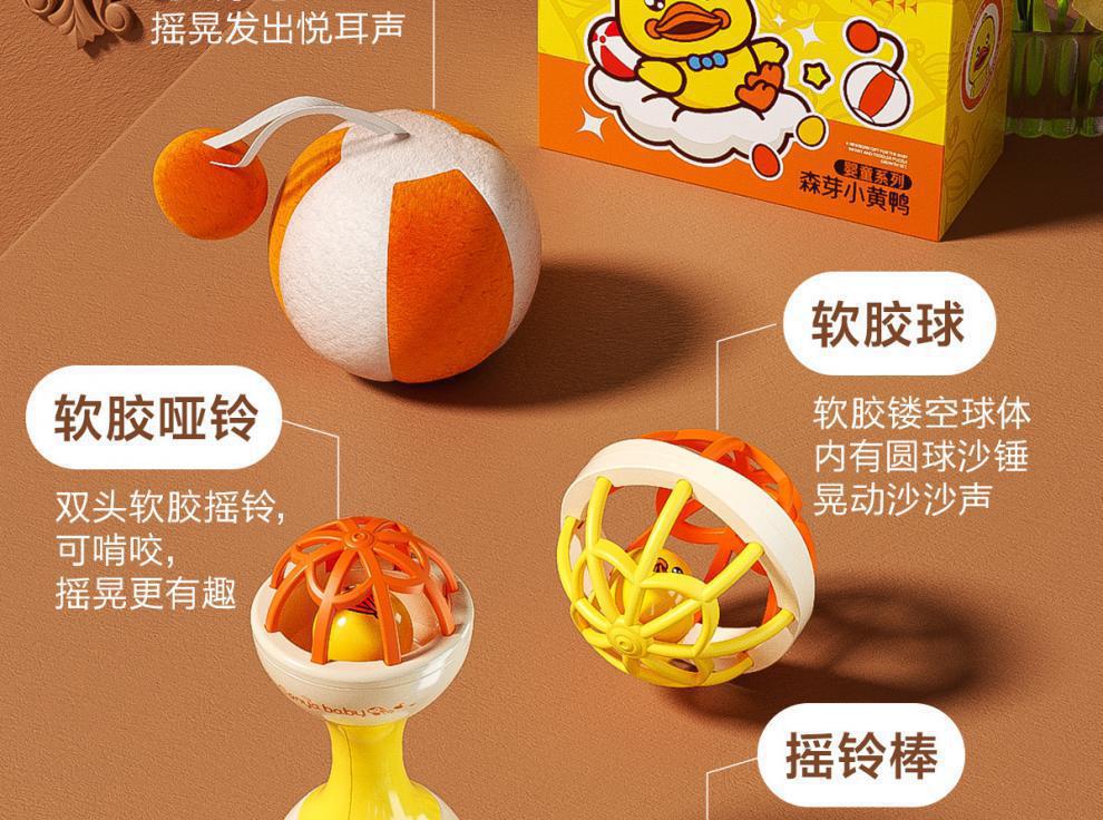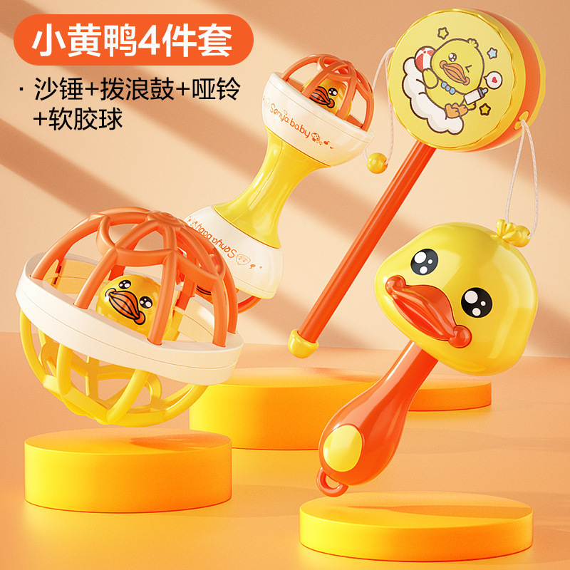 • [4종세트, 작은 노란 오리] 모래망치 + 부드러운 고무볼 + 딸랑이 + 덤벨 딸랑이 (OPP백)