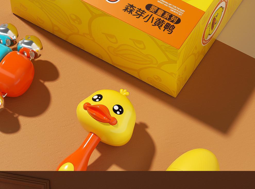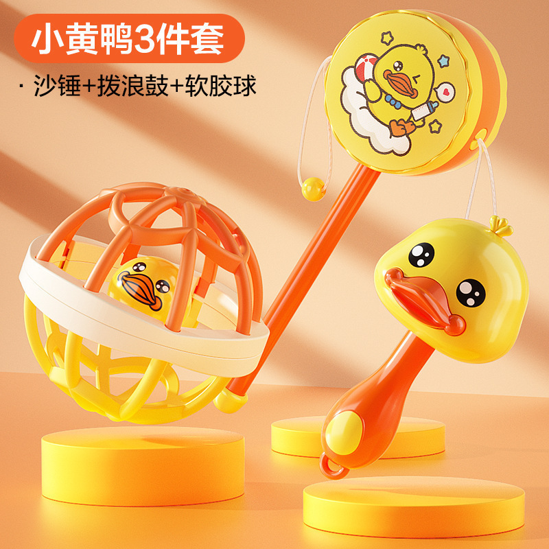 • [작은 노란 오리 3종 세트] 모래망치 + 부드러운 고무볼 + 딸랑이 (OPP 가방)