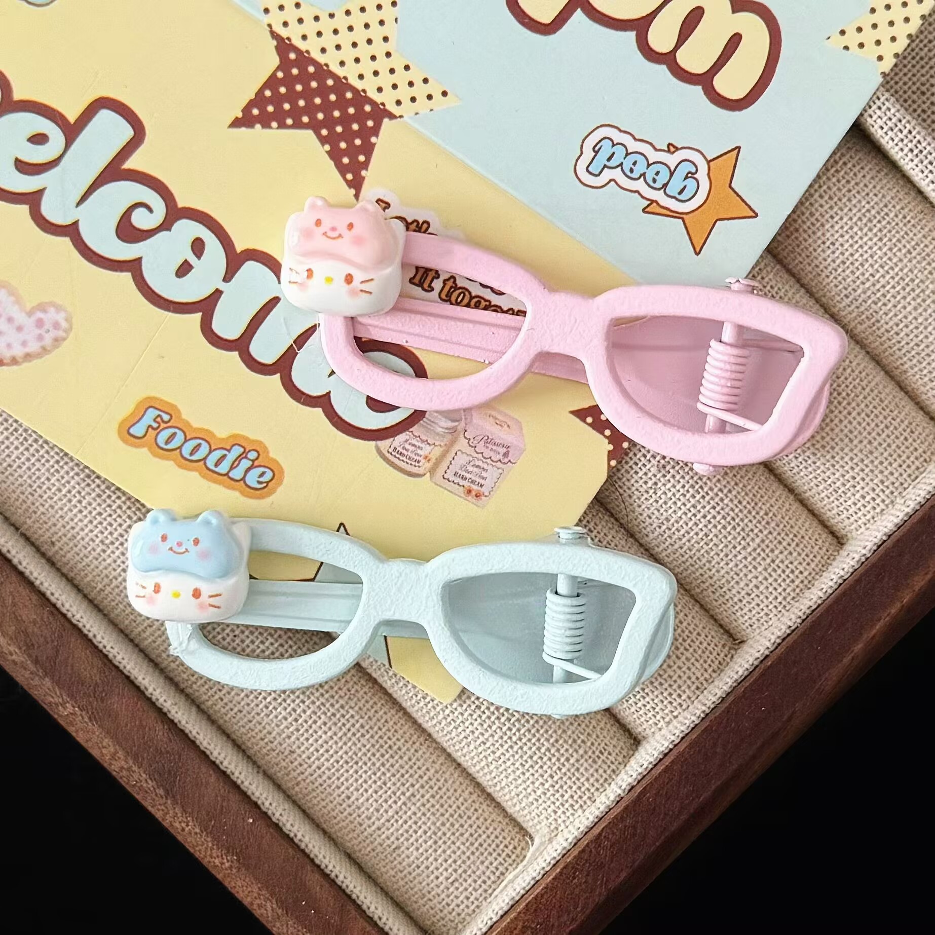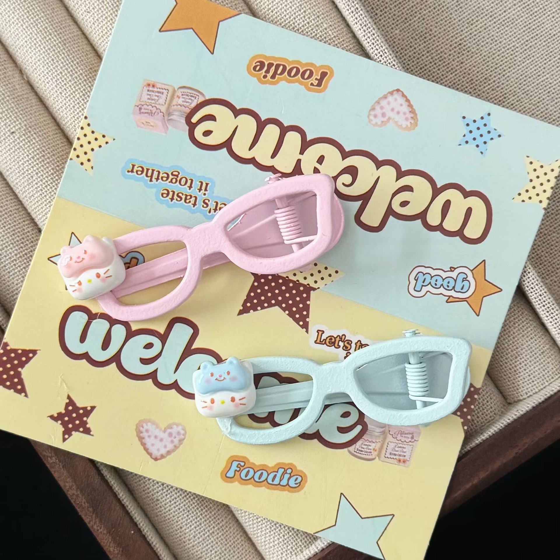 여름 새 크림 고양이 안경 머리핀 귀여운 부드러운 귀여운 소녀 스타일 덕빌 클립 헤어핀 헤어 액세서리 도매스토어 가기