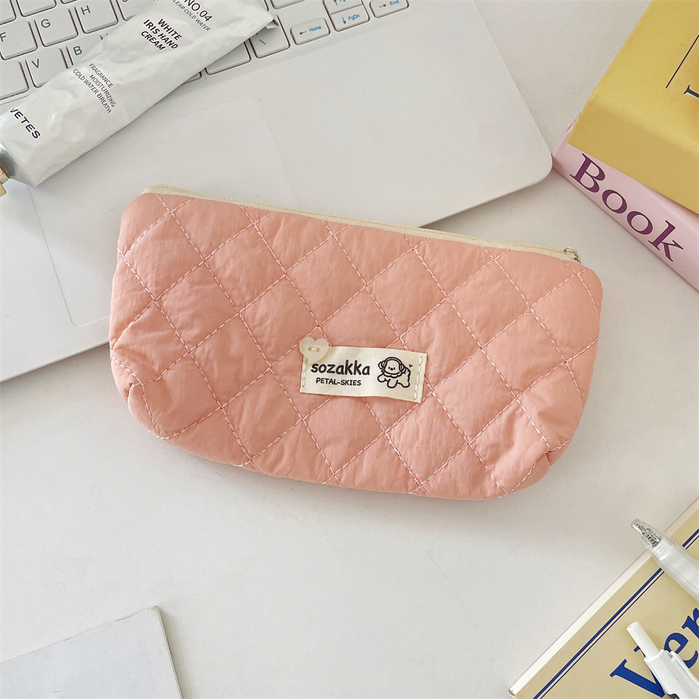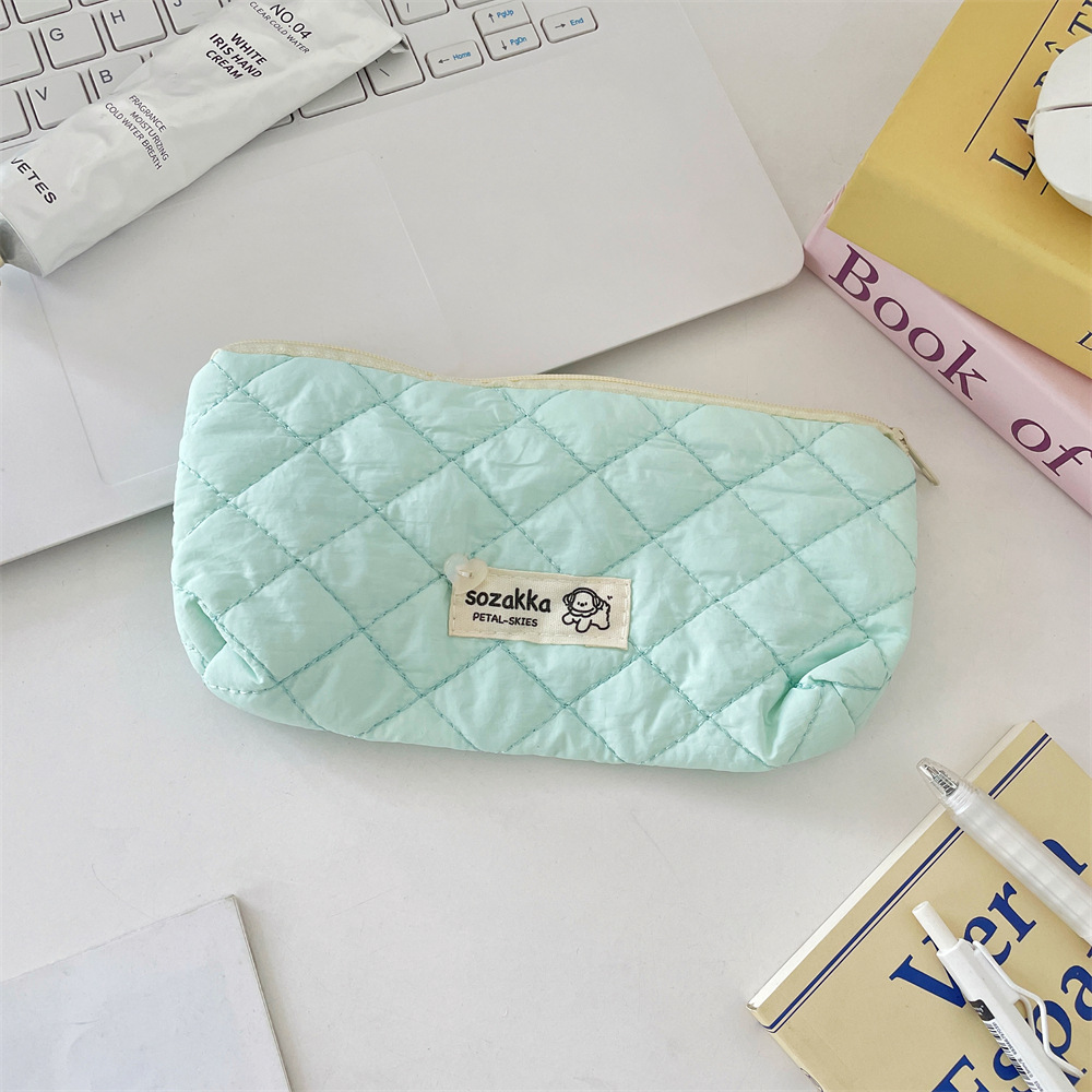 54142 마카롱 색상 학생용 문구 가방 휴대용 필통 체크무늬 화장품 가방 퀼팅 대용량 수납 가방