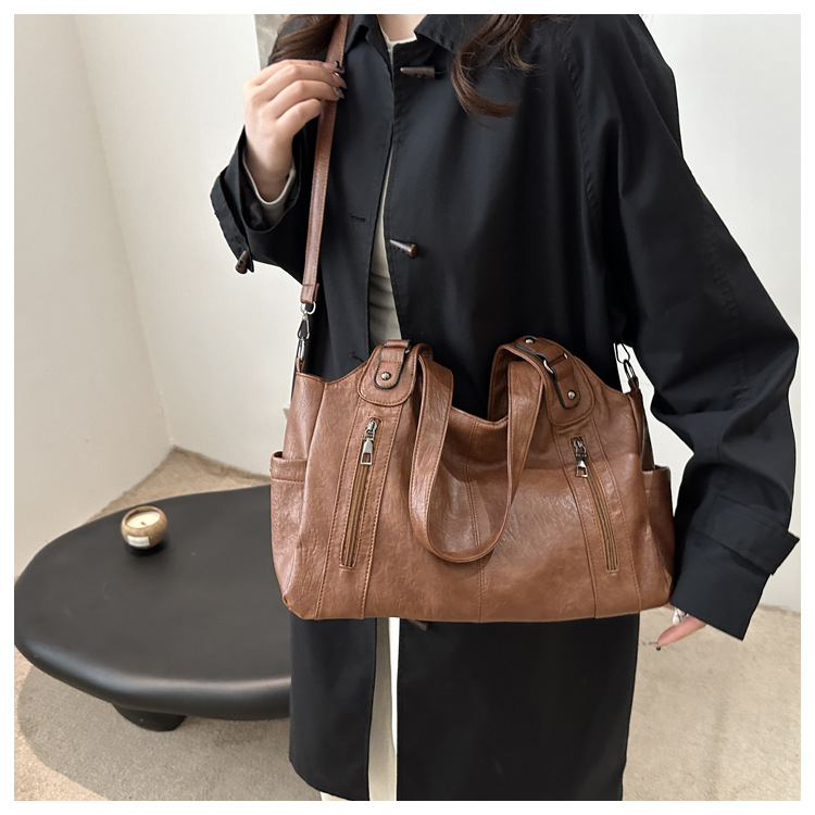 대용량 레트로 토트 백 여성 2025 봄 새로운 패션 통근 어깨 가방 단거리 여행 언더암 가방스토어 가기