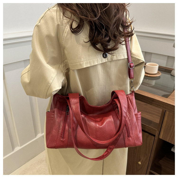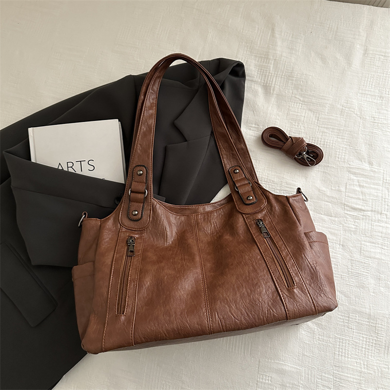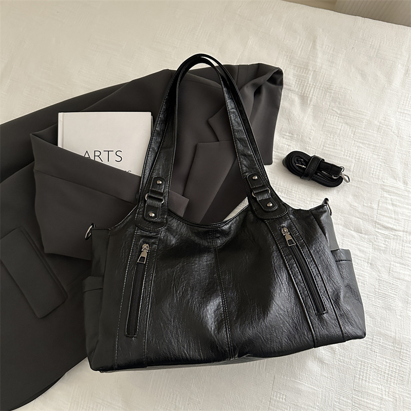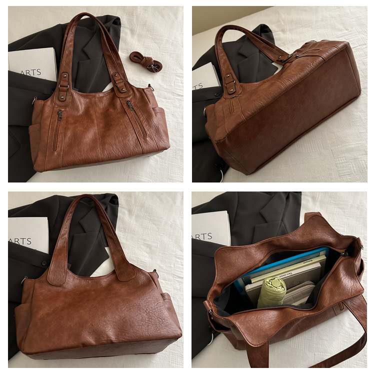 대용량 레트로 토트 백 여성 2025 봄 새로운 패션 통근 어깨 가방 단거리 여행 언더암 가방