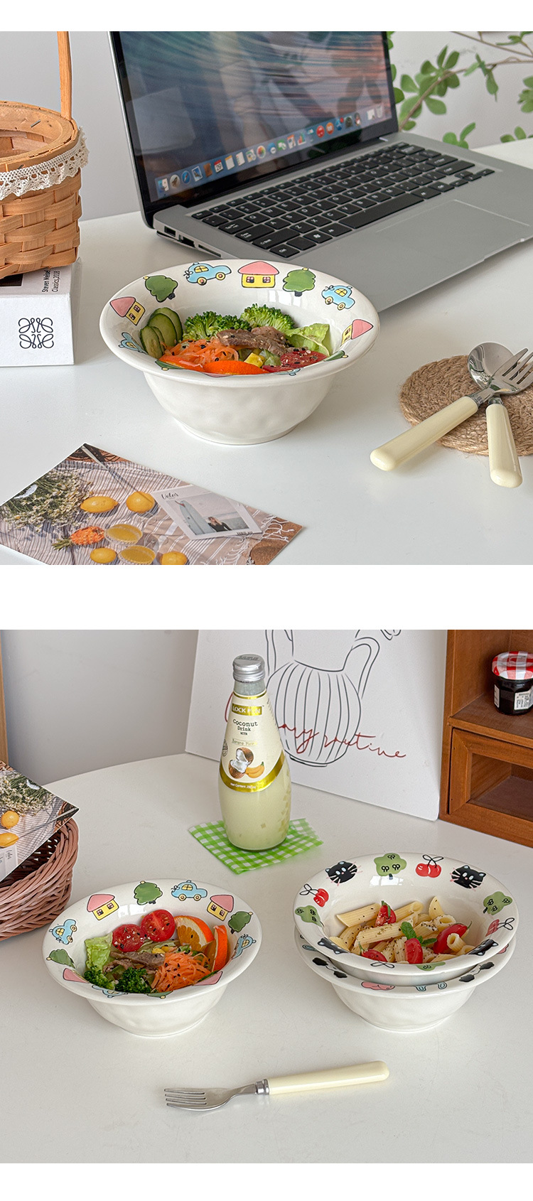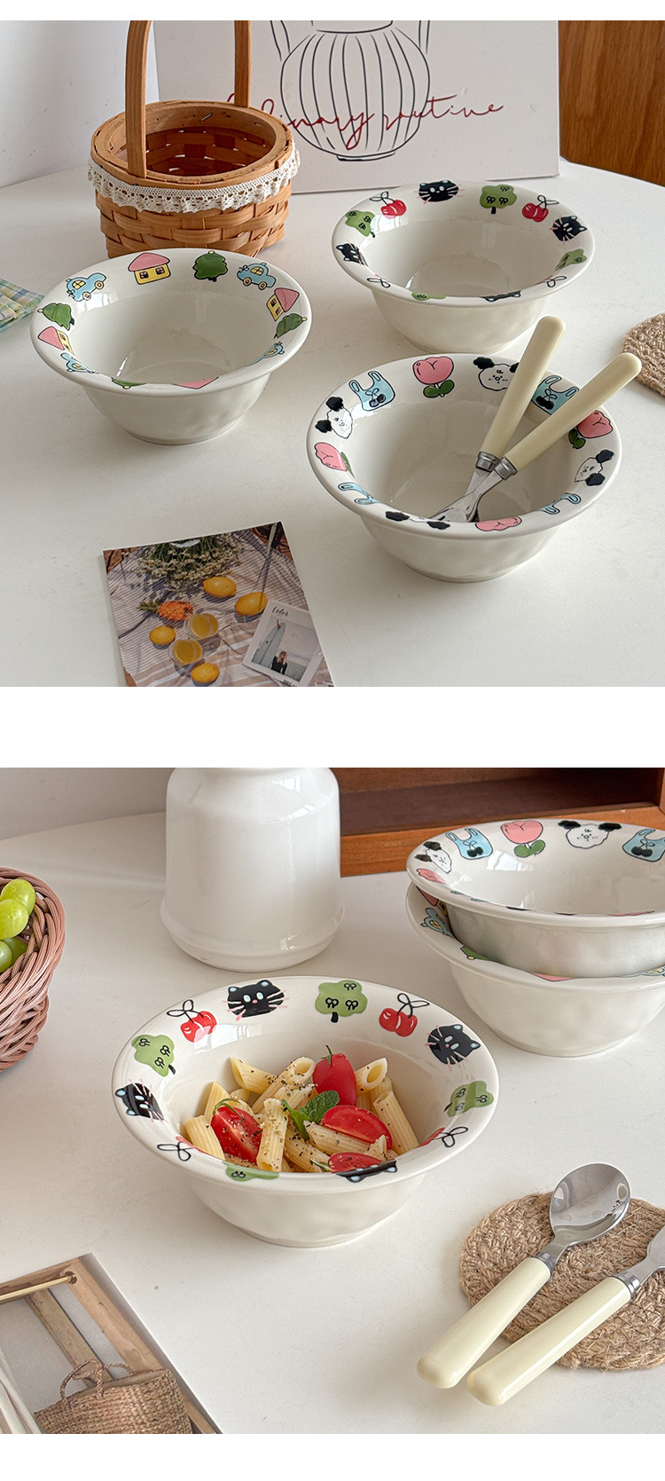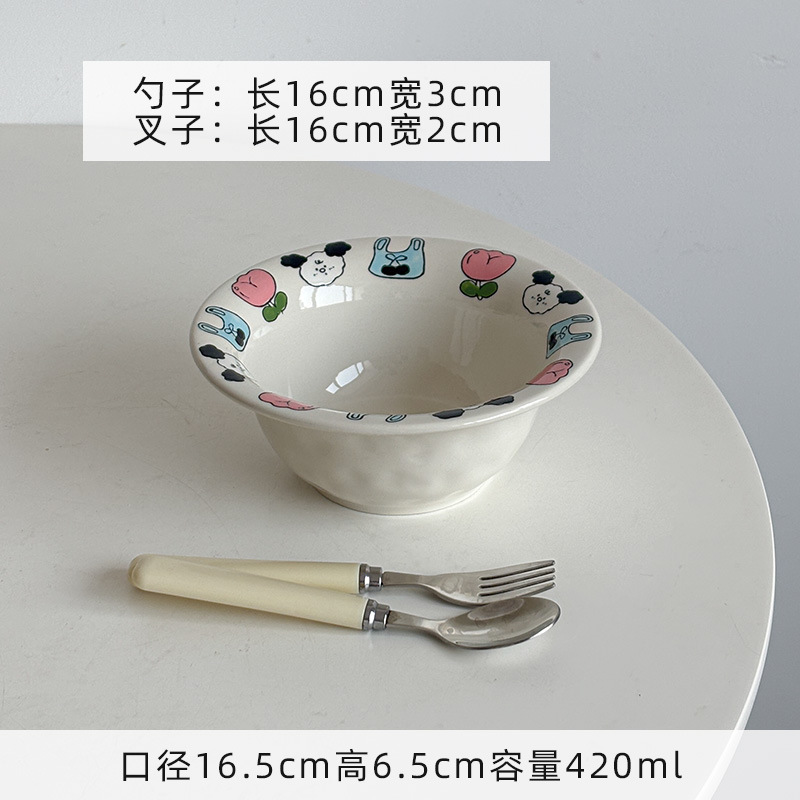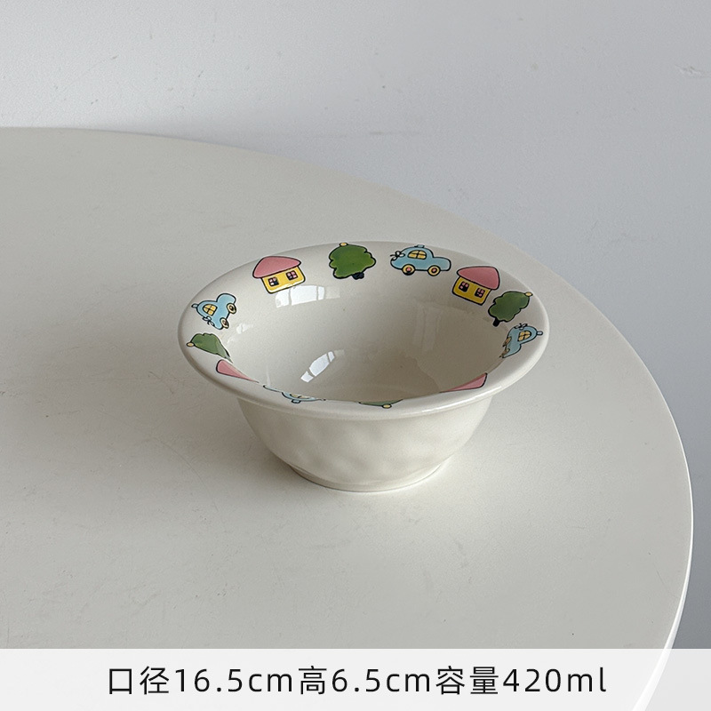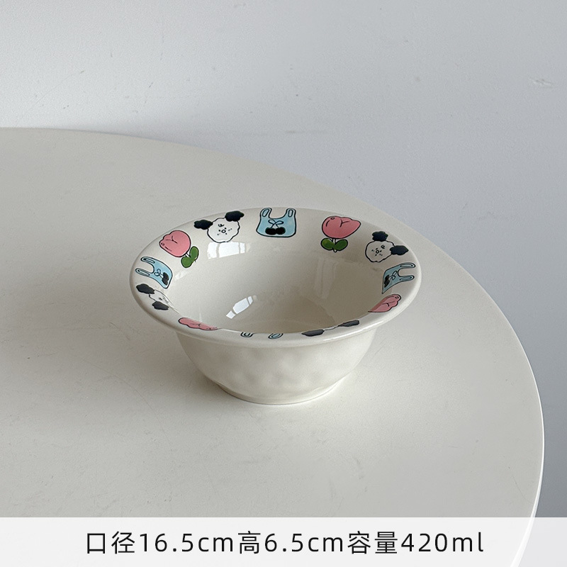 Mooney의 창의적이고 귀엽고 어린애 같은 양각 손으로 그린 세라믹 플랜지 밀짚 모자 그릇 샐러드 그릇 깊은 그릇 가정용 그릇 Underglaze Color