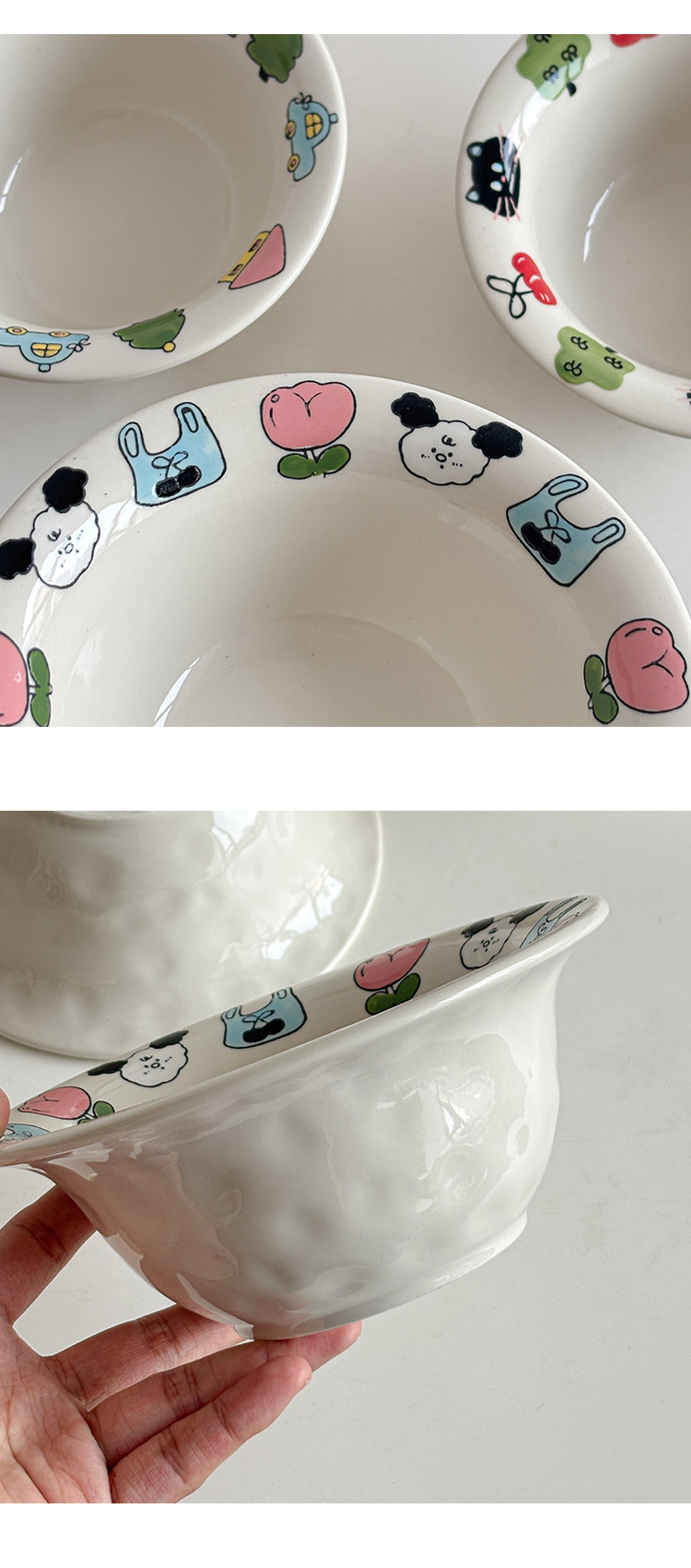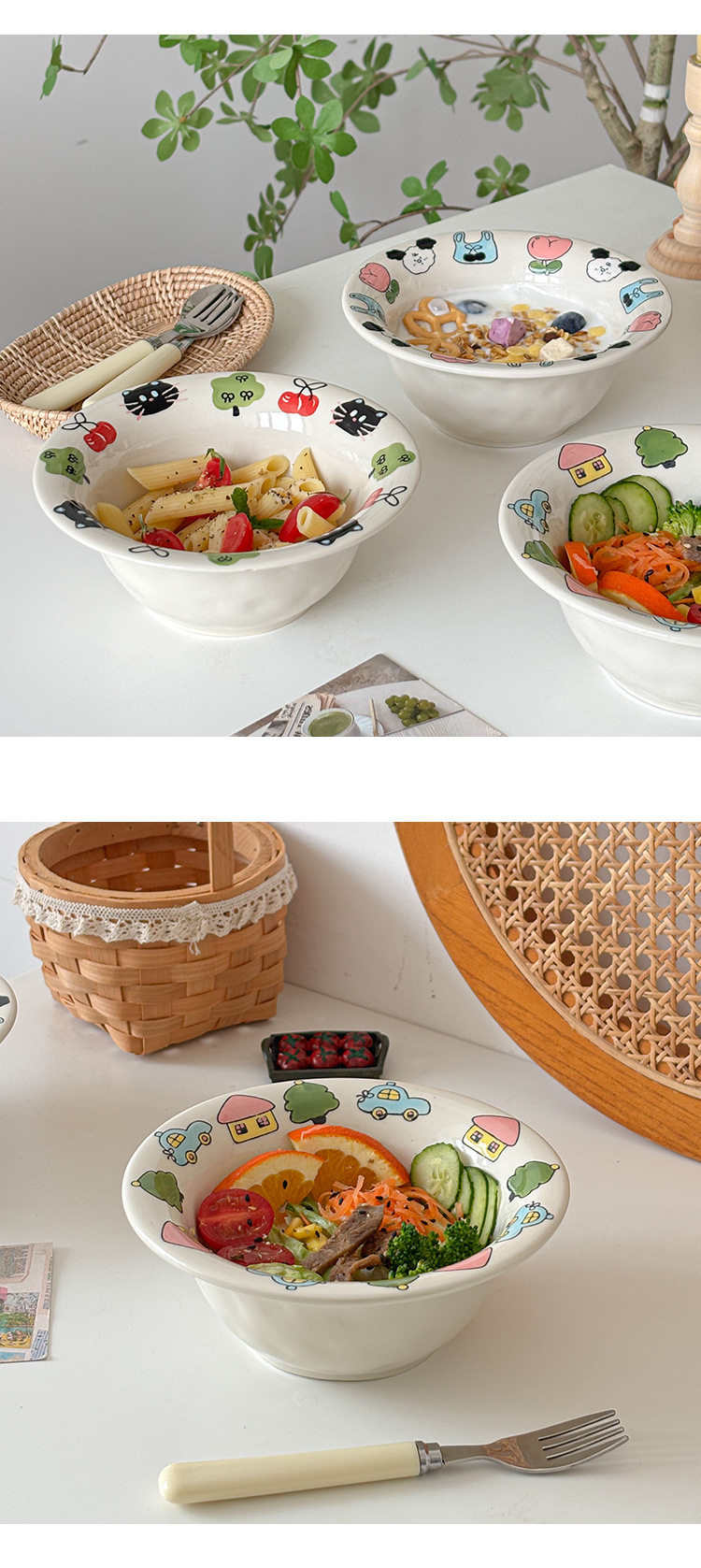 Mooney의 창의적이고 귀엽고 어린애 같은 양각 손으로 그린 세라믹 플랜지 밀짚 모자 그릇 샐러드 그릇 깊은 그릇 가정용 그릇 Underglaze Color스토어 가기