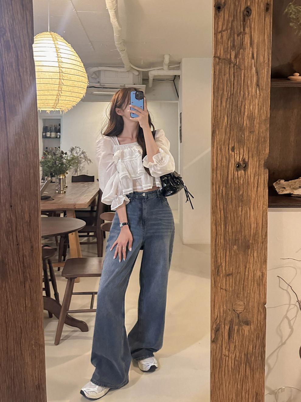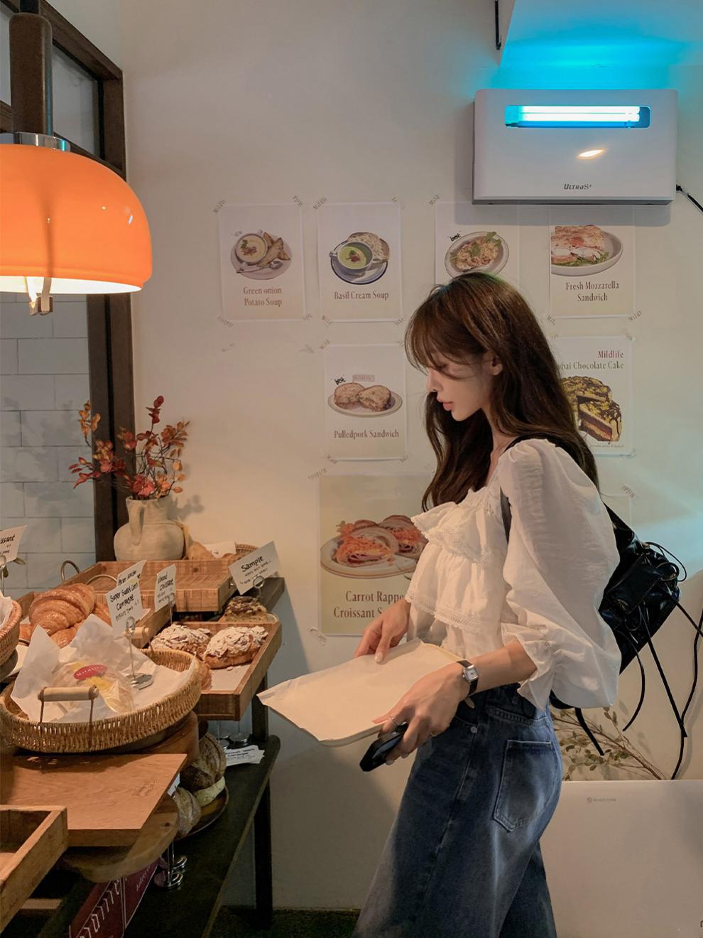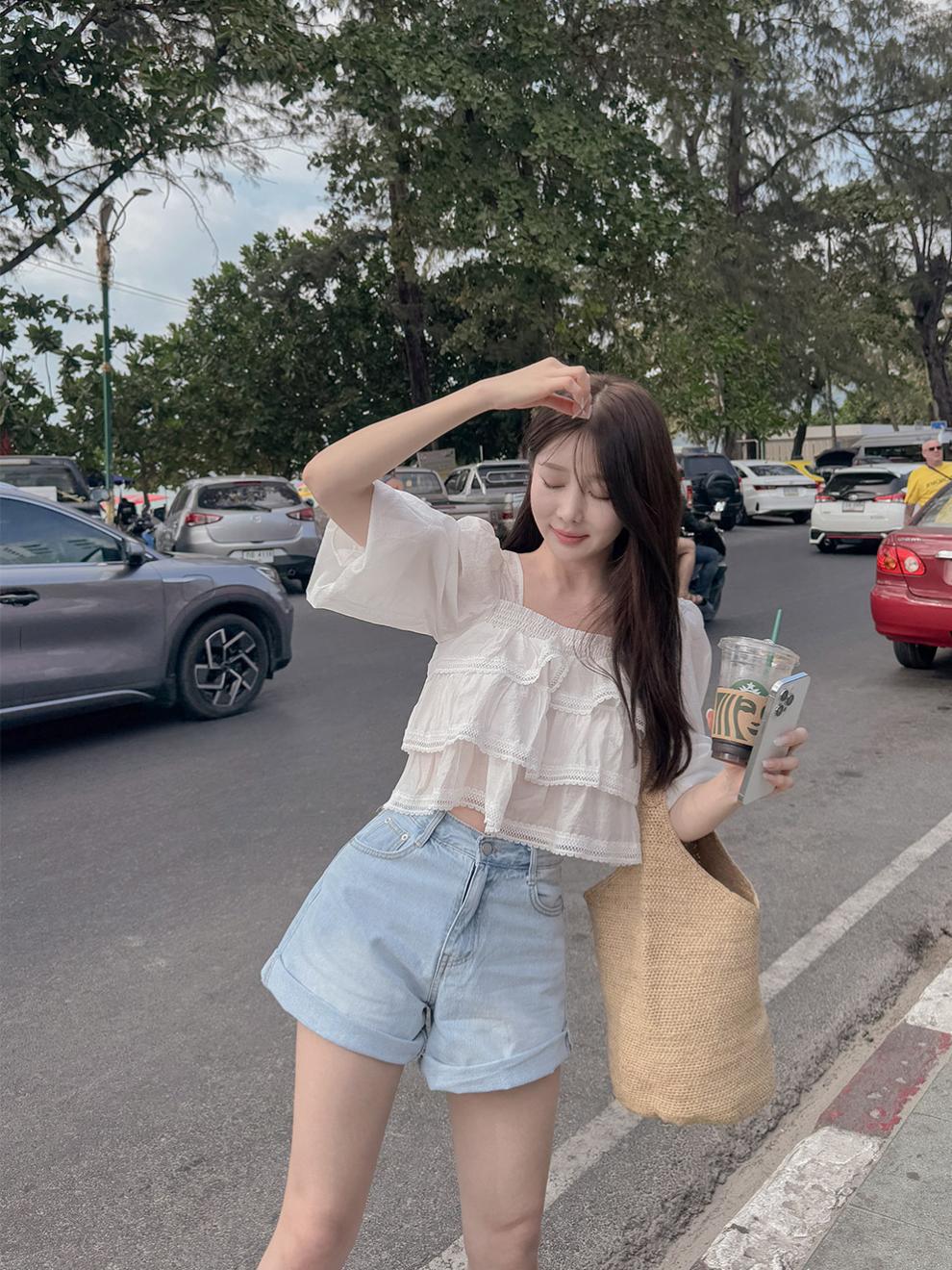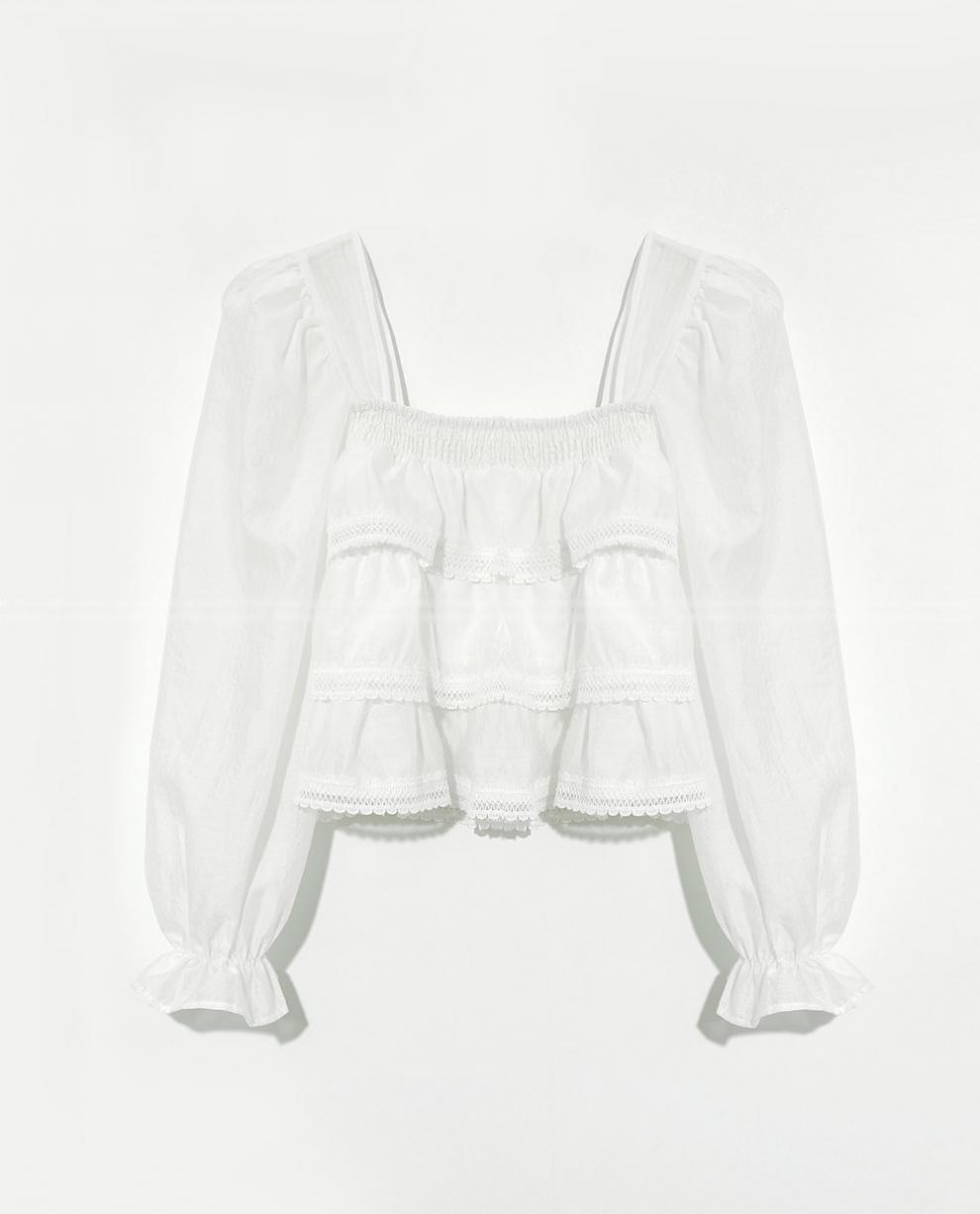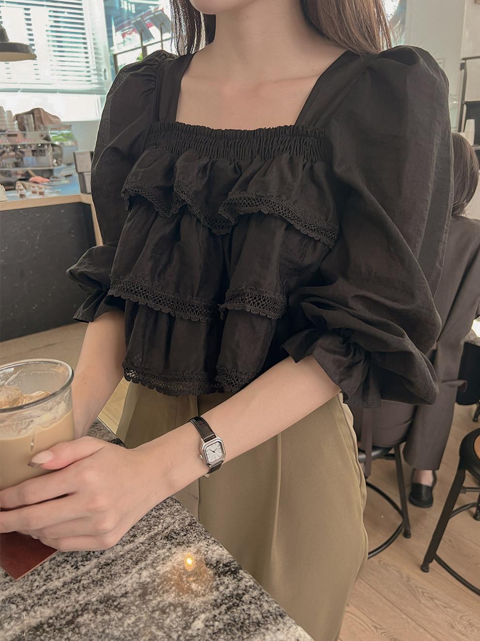 한국 여성 하이 엔드 중공업 스위트 레이스 쉬폰 셔츠 한국식 세련된 패션 디자인 센스 걸스토어 가기
