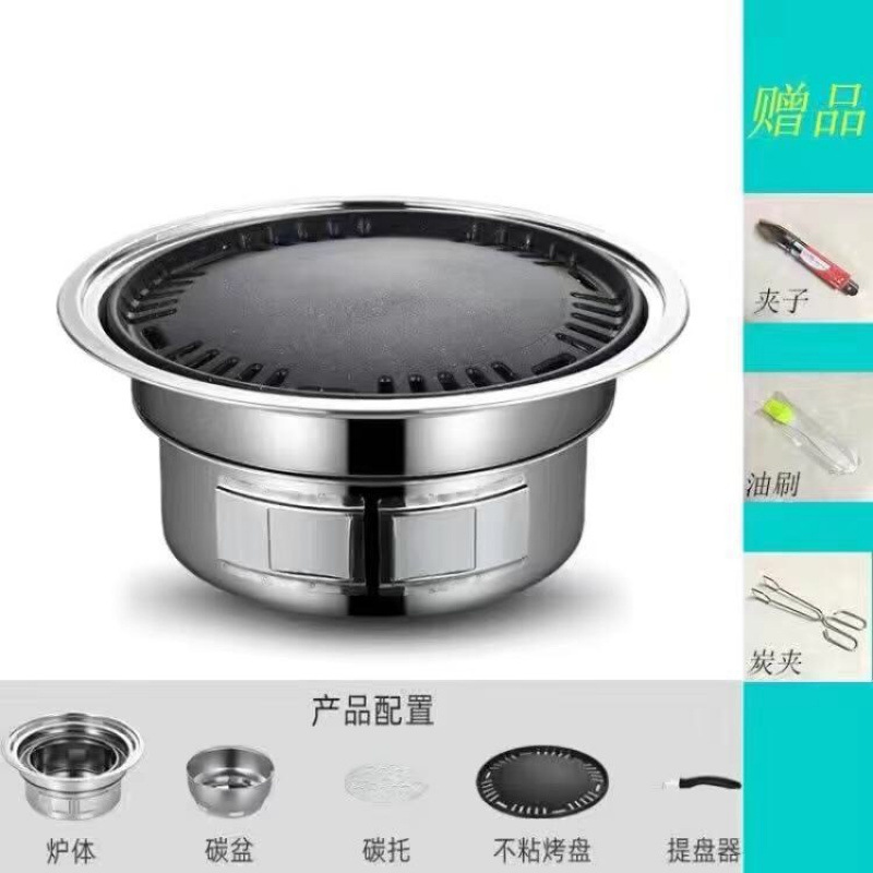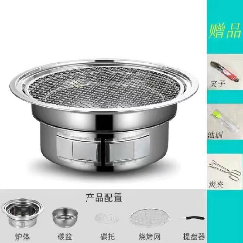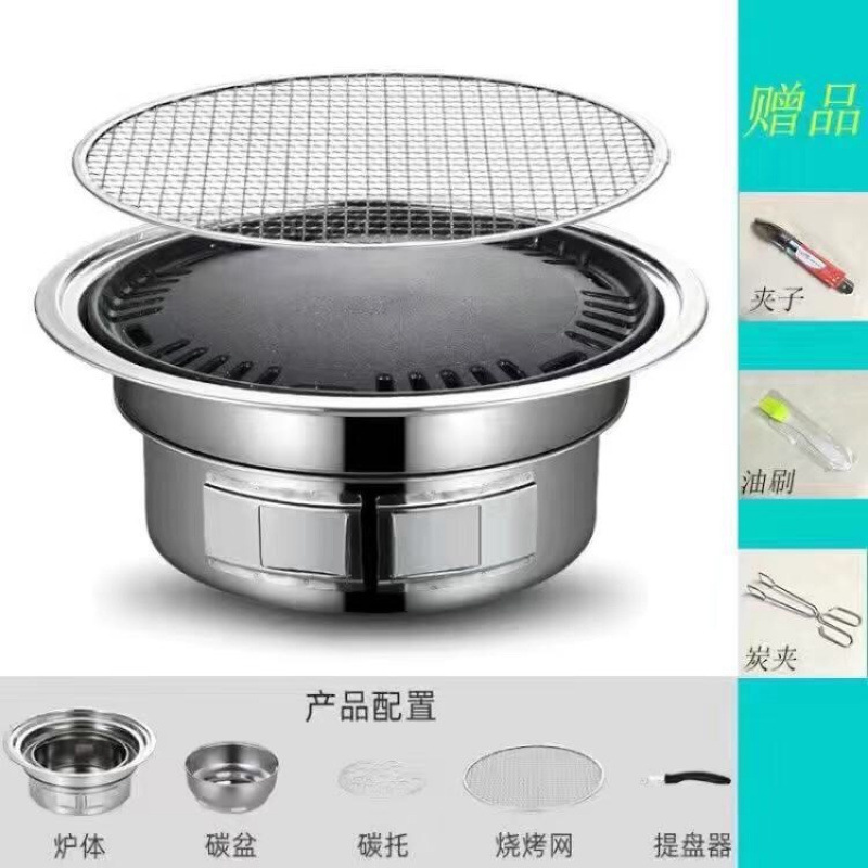 한국식 숯 바베큐 오븐 상업용 라운드 스테인레스 스틸 바베큐 오븐 가정용 실내 소형 휴대용 실외 탄소 오븐스토어 가기