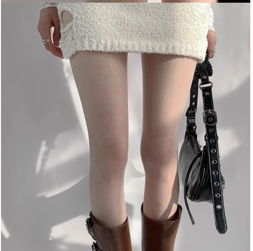 봄과 여름 새로운 얇은 검은 스타킹 여성의 높은 투명 어두운 패턴 팬티 스타킹 보라색 섹시한 피부 세로 줄무늬 바닥 팬티 스타킹
