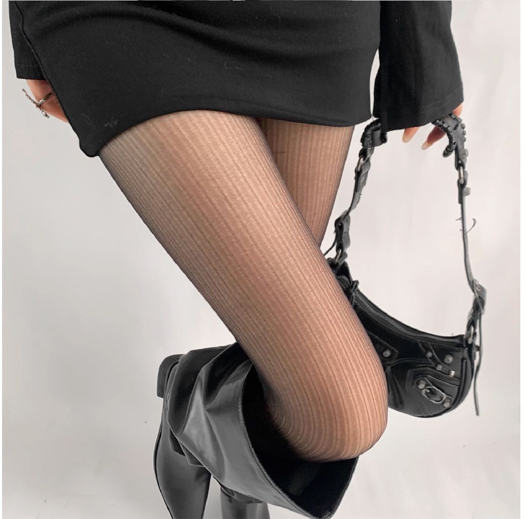 봄과 여름 새로운 얇은 검은 스타킹 여성의 높은 투명 어두운 패턴 팬티 스타킹 보라색 섹시한 피부 세로 줄무늬 바닥 팬티 스타킹스토어 가기