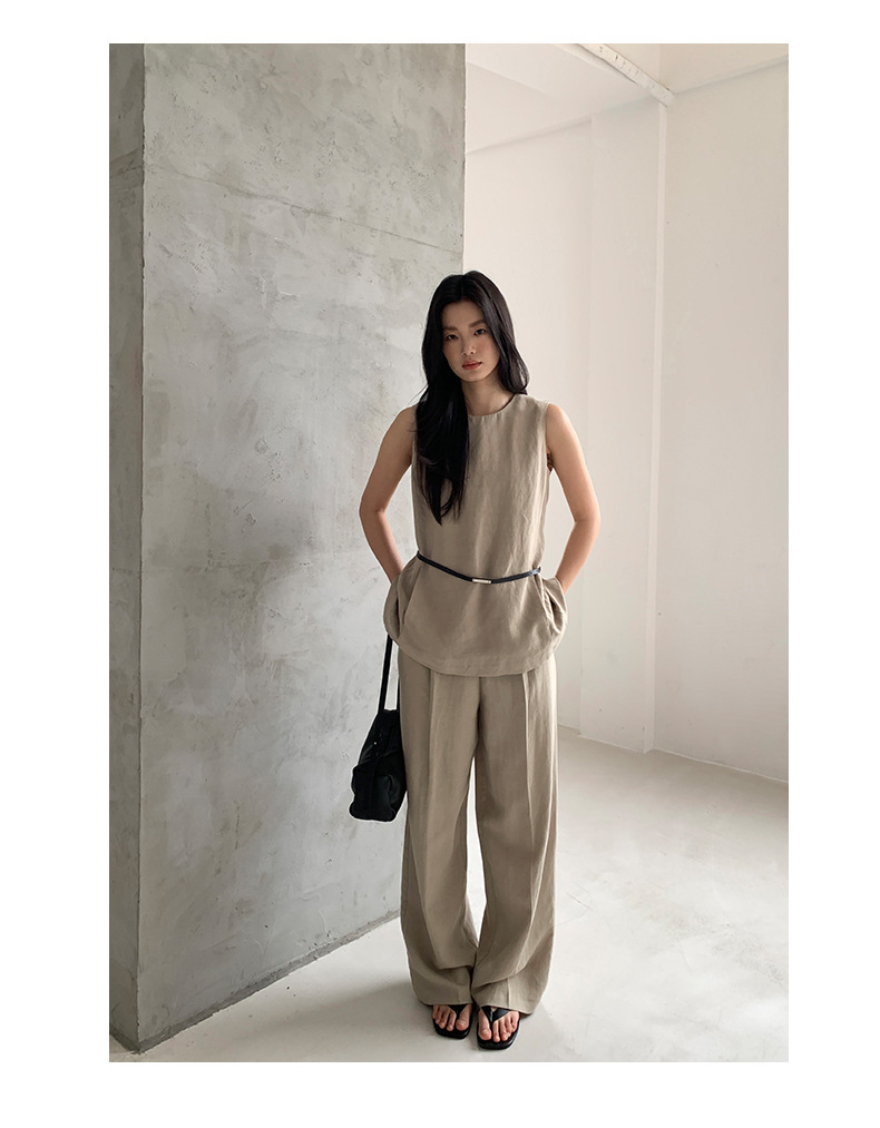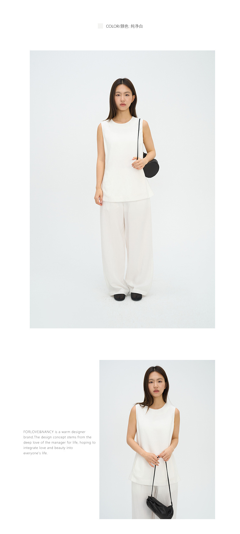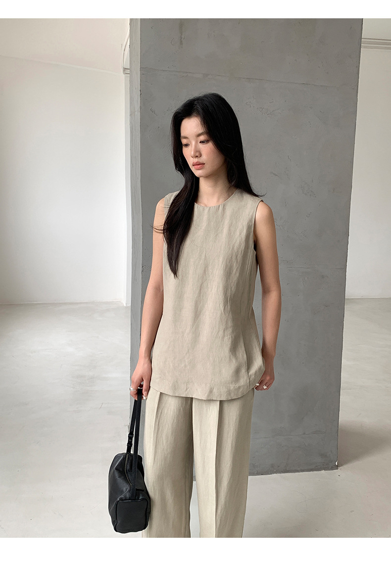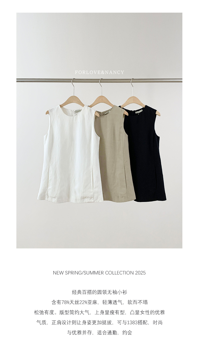 아이앤낸시 13라인 미니멀리스트 여름 한국 스타일 민소매 라이트 성숙한 올드머니 스타일 텐셀 린넨 풀오버 셔츠 11371