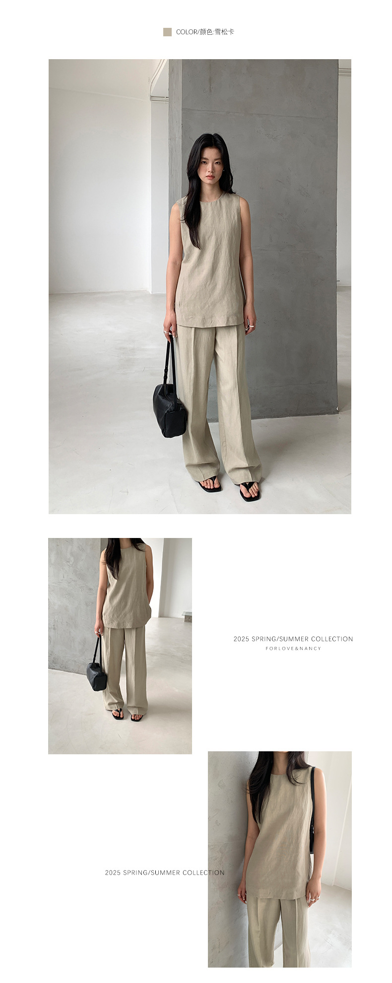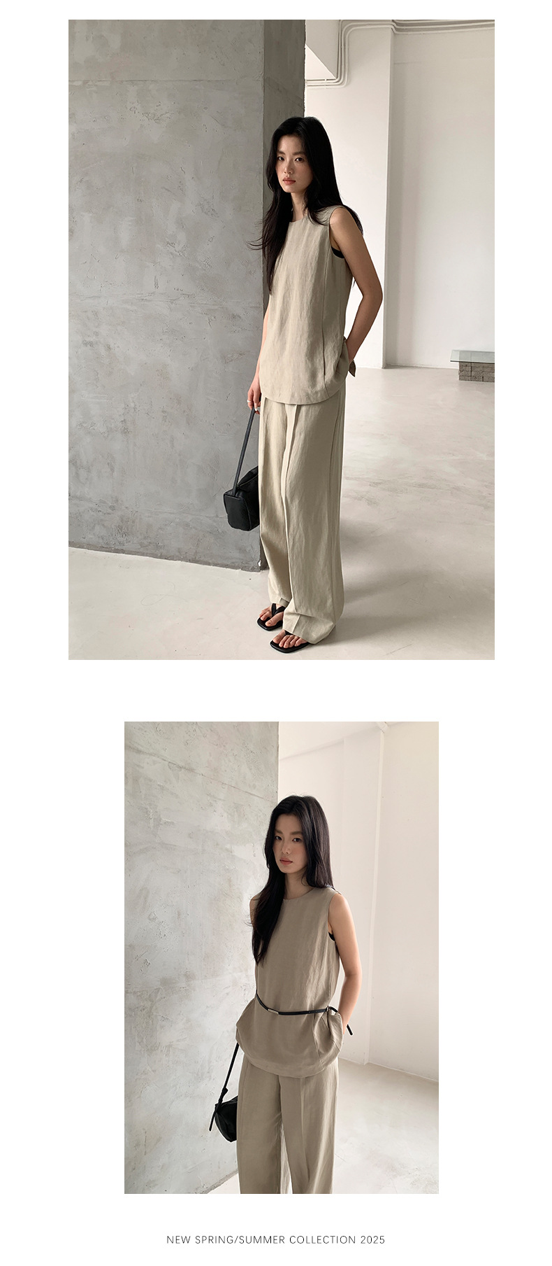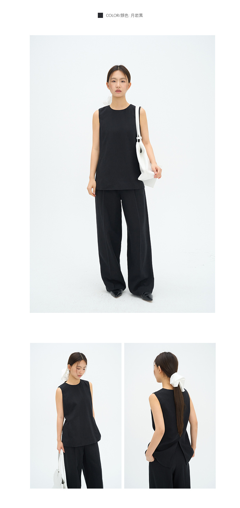 아이앤낸시 13라인 미니멀리스트 여름 한국 스타일 민소매 라이트 성숙한 올드머니 스타일 텐셀 린넨 풀오버 셔츠 11371