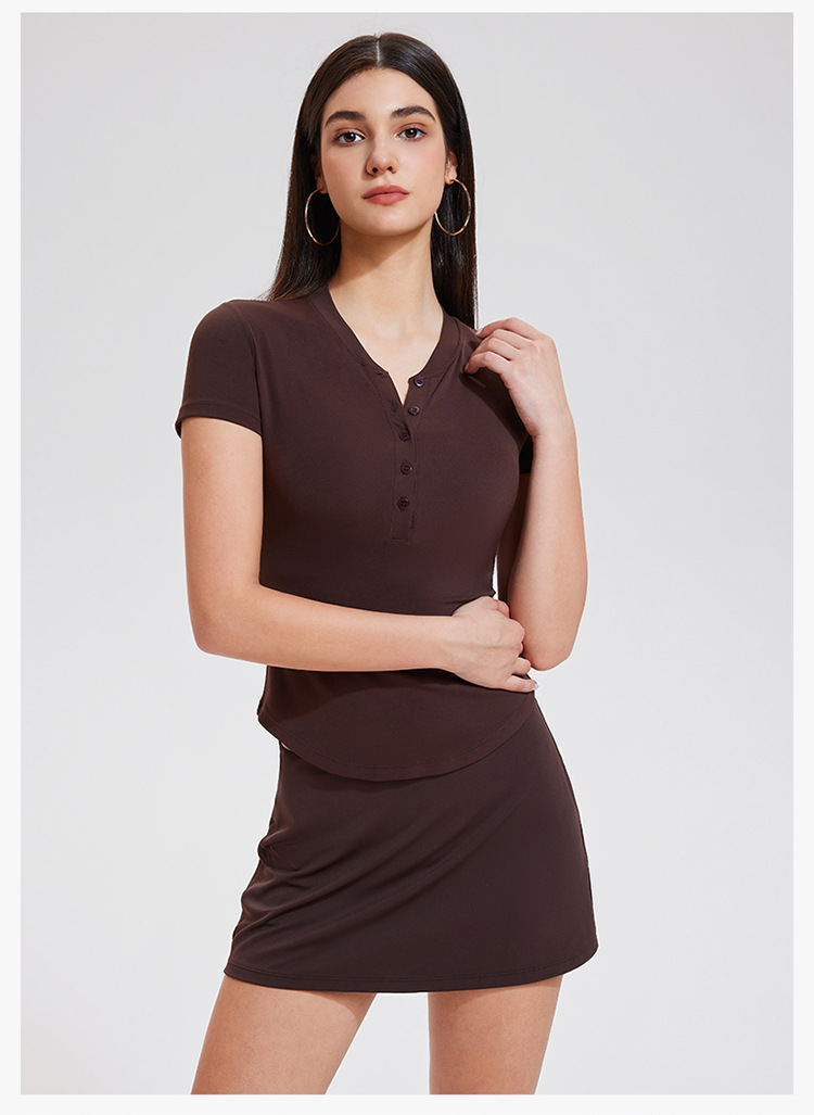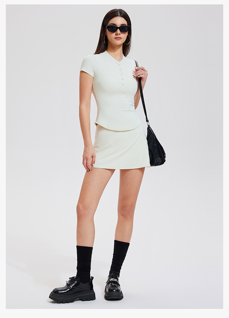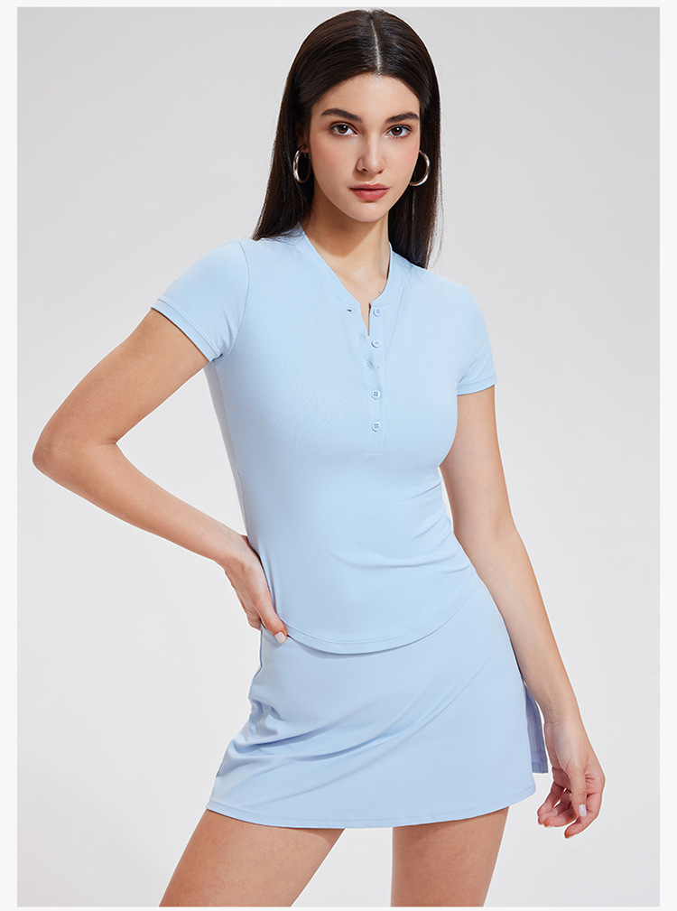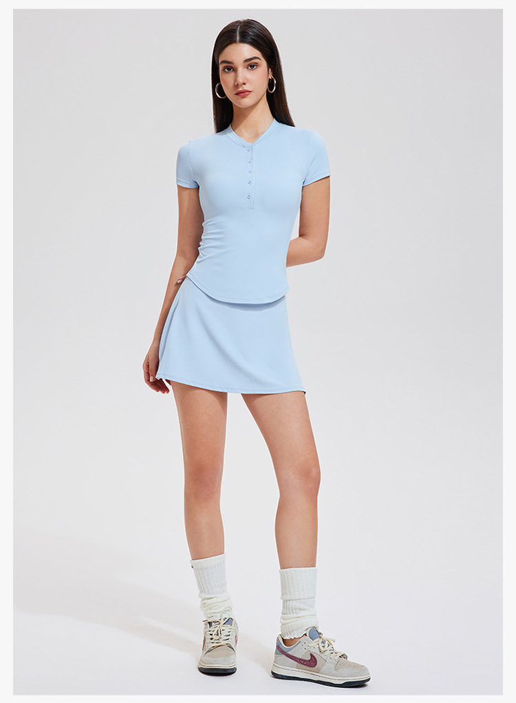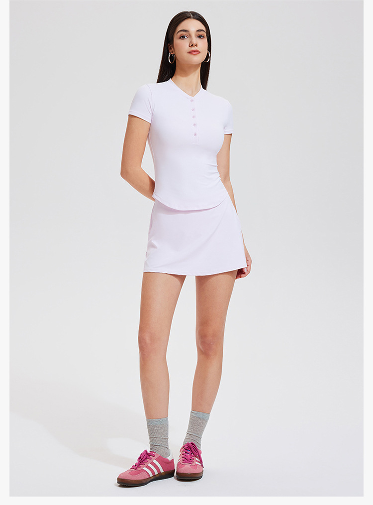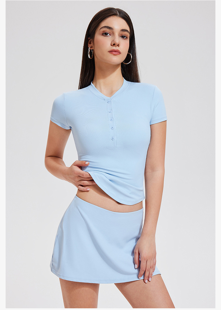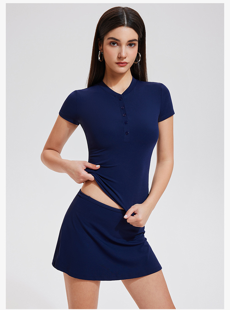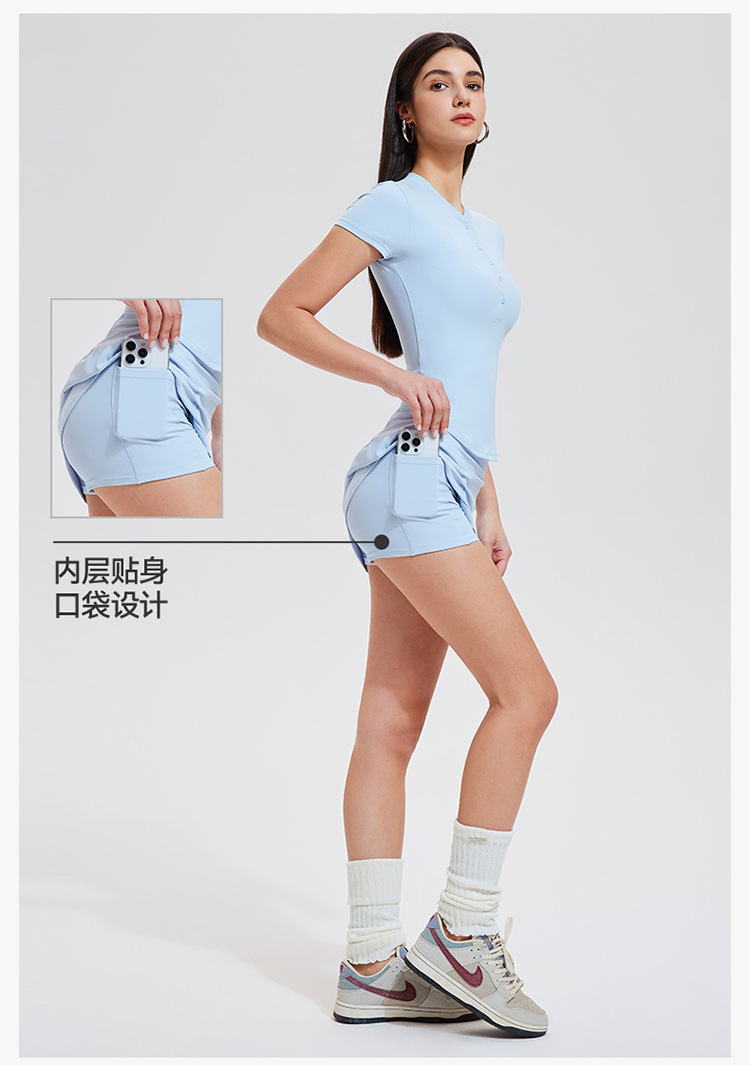 테니스 훈련 스포츠 세트 여자 꽉 끼는 슬리밍 여름 얇은 반팔 피트니스 착용 달리기 전문 배드민턴 스커트